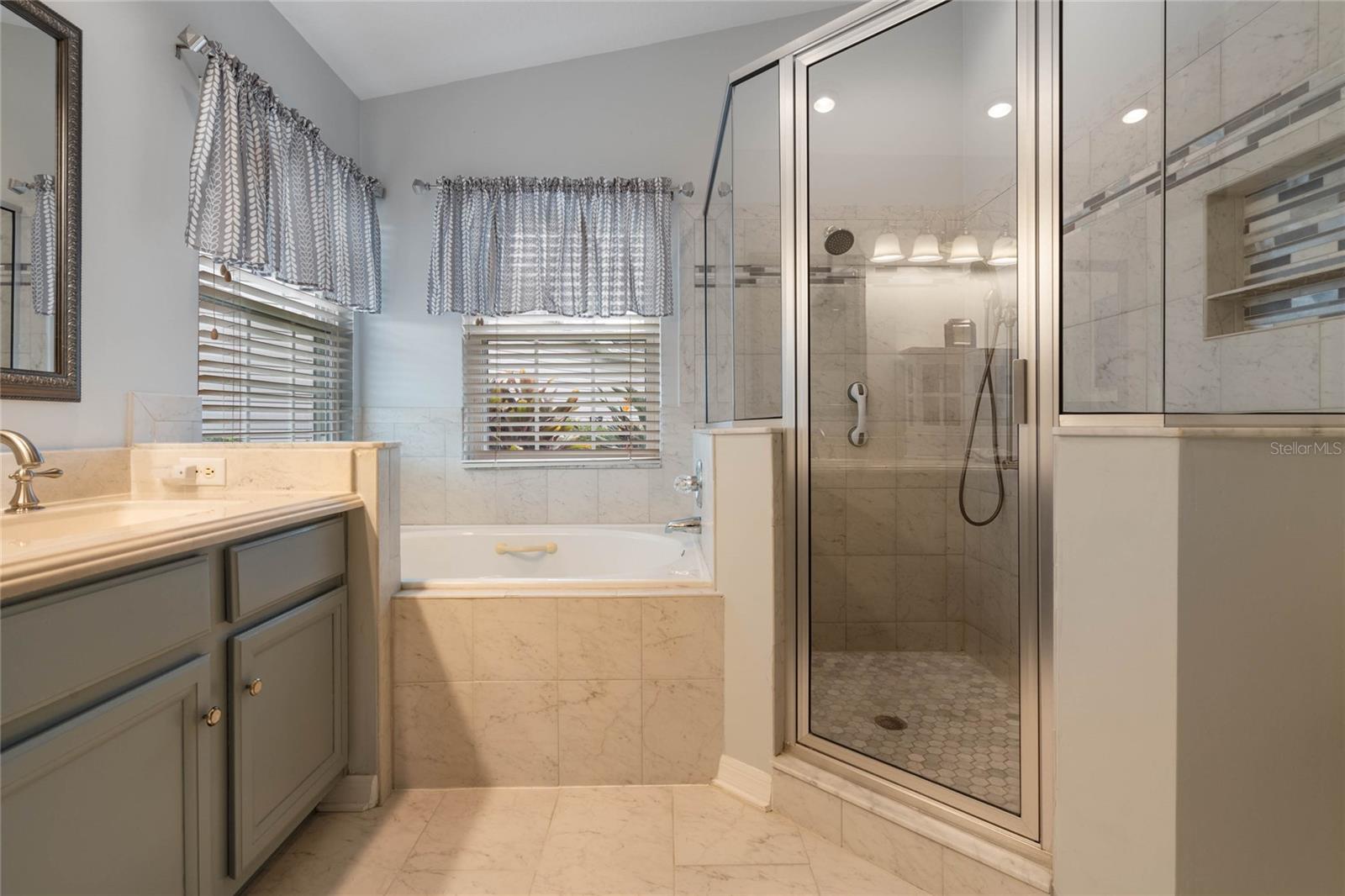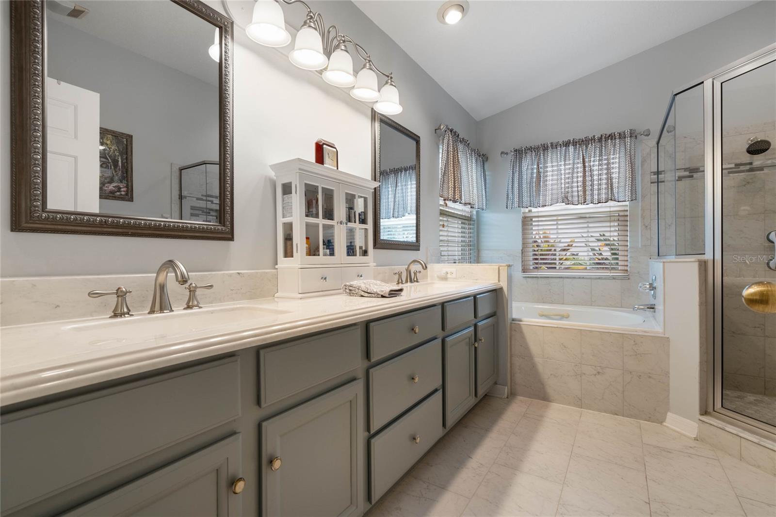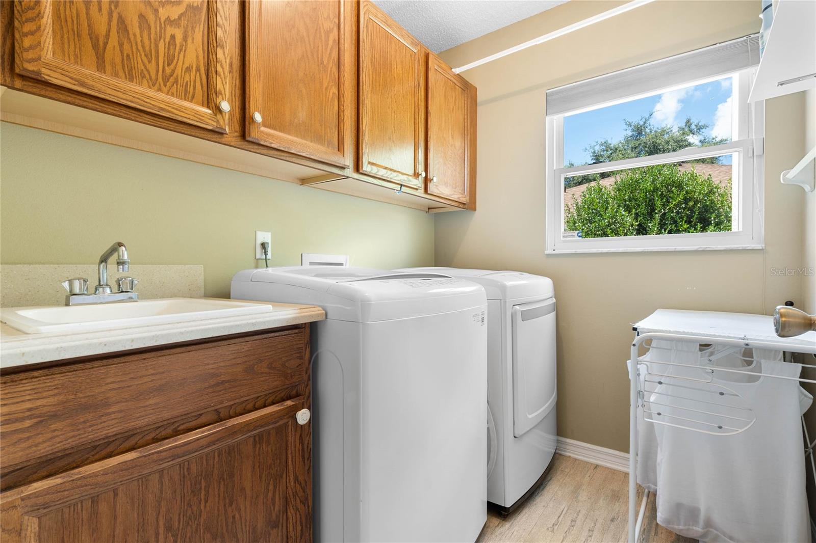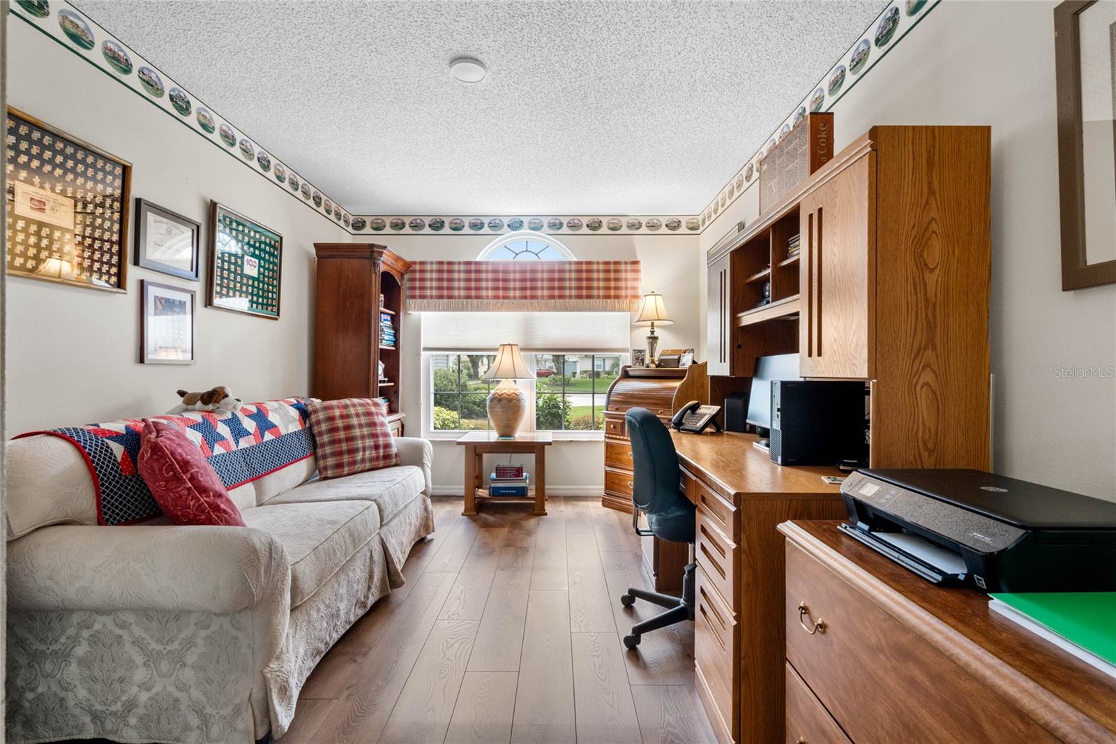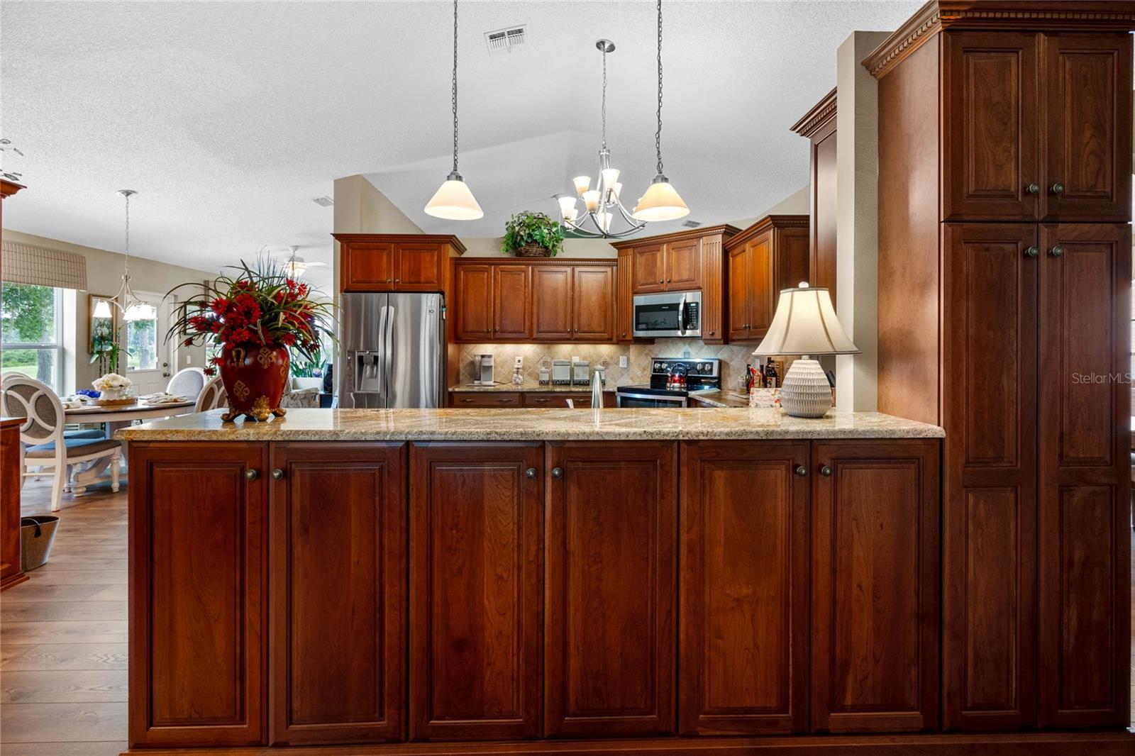 Stunning GOLF VIEW HOME, located on the FIRST HOLE of the popular, CRANES ROOST golf course. This house has been modified and expanded from the Great Spruce, and PREVIOUSlY A MODEL HOME! ***Be sure to check out the 3D TOUR above*** The home offers breathtaking golf course views and unparalleled privacy. The long approach paved driveway along with being tucked away in a cul-de-sac, creates minimal through-traffic and ample parking options. You will appreciate the upgraded and established landscaping with stone bordered beds. NO CARPET, featuring easy-care German-engineered SOLID WOOD FLOORING throughout, ensuring a seamless flow from room to room. This home boasts a range of updates and upgrades, including all new windows (2012), a NEW AC system (2023) with SANITIZER, a full WATER FILTRATION system, and FULL HOME GROUNDING RODS (2023). Additionally, a TRANSFERABLE TERMITE BOND provides added peace of mind. The redesigned CUSTOM KITCHEN is a chef's dream, showcasing GRANITE countertops and custom-built SOLID WOOD CHERRY CABINETS. Offering a NEW MICROWAVE, CONVECTION STOVE and DISPOSAL along with LOTS OF DRAWERS, PULL-OUT CABINETS, and a separate pantry with additional custom storage, this kitchen is perfect for both daily living and entertaining. Enjoy game day or host gatherings with ease as the kitchen opens up to the family room, dinette, and a Florida room with miles of gorgeous views. The primary suite is a spacious retreat, easily accommodating a king-size bed and offering an ensuite bathroom with DUAL SINKS, a soaking tub, and a walk-in shower. Bedroom two is versatile and could serve as a secondary primary suite, complete with its own private ensuite—ideal for guests or a mother-in-law suite. Bedroom three is perfect for a home office or flex space, and an additional half bath is conveniently located for guests. Plus, an inside laundry room adds to the home's functionality. The Plantation at Leesburg is a 55+ community that offers two full size golf courses, 3 clubhouses; all with heated pools, tennis, pickleball, pool tables, darts and a huge list of activities each and every month that will keep you moving and having fun. You can enjoy a good game of softball and hotdogs at the pavilion on game day. Whether it is bocce ball, shuffleboard, or horseshoes, you will never run out of things to do at the Plantation. The life you have waited your whole life for is just minutes away from major hospitals and shopping. Easy access to the parks and airport. This exceptional property combines elegance, functionality, and comfort, making it a true gem in the community. Don't miss your chance to make this beautiful house your new home! Call today for your personal tour!