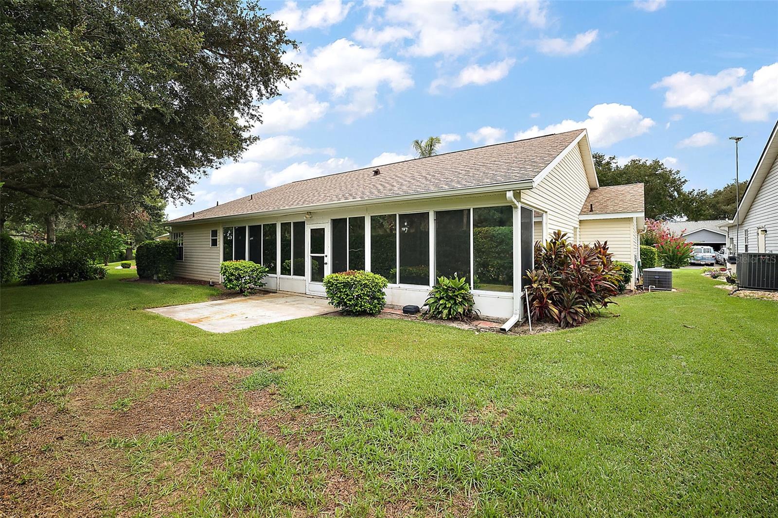 Welcome to this charming home located in one of Central Florida's most desirable 55+ gated golf communities. This beautiful residence features two spacious bedrooms, each with large walk-in closets, offering plenty of storage and comfort. The home also includes a versatile den, perfect for use as a home office or hobby space. You'll love the bright, eat-in kitchen, designed for both functionality and style, ideal for hosting family or enjoying a quiet morning coffee. Step outside to the expansive lanai where you can relax and unwind with no rear neighbors, offering you privacy and a peaceful view. This home has been well-maintained and recently updated, with a new roof installed in 2023, a new water heater in 2023, and a new HVAC system in 2019, ensuring your peace of mind for years to come. Drive Freshly painted. As part of this vibrant community, you'll have access to an array of amenities. With three community centers, three pools, two fitness centers, and an abundance of activities such as pickleball, tennis, and more, there’s never a shortage of ways to stay active and engaged. Whether you’re looking to enjoy the golf course, take part in one of the hundreds of activities offered, or simply relax in the Florida sunshine, this community has it all. Don’t miss the opportunity to make this lovely home your own and experience the best of Central Florida living in this welcoming, active 55+ community.