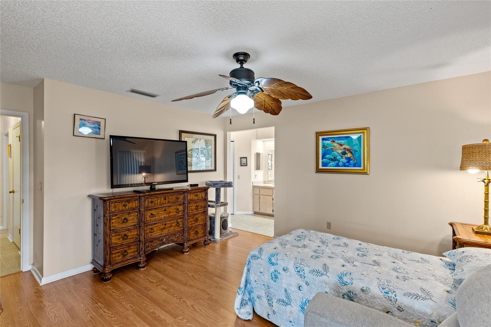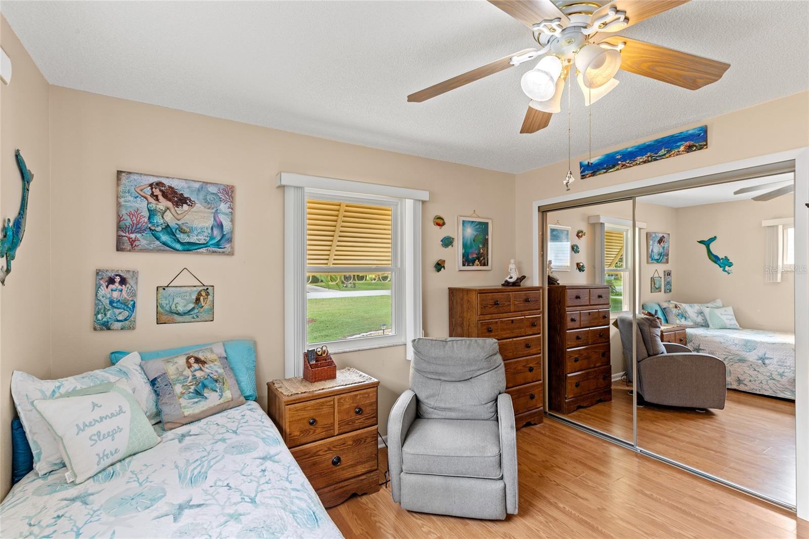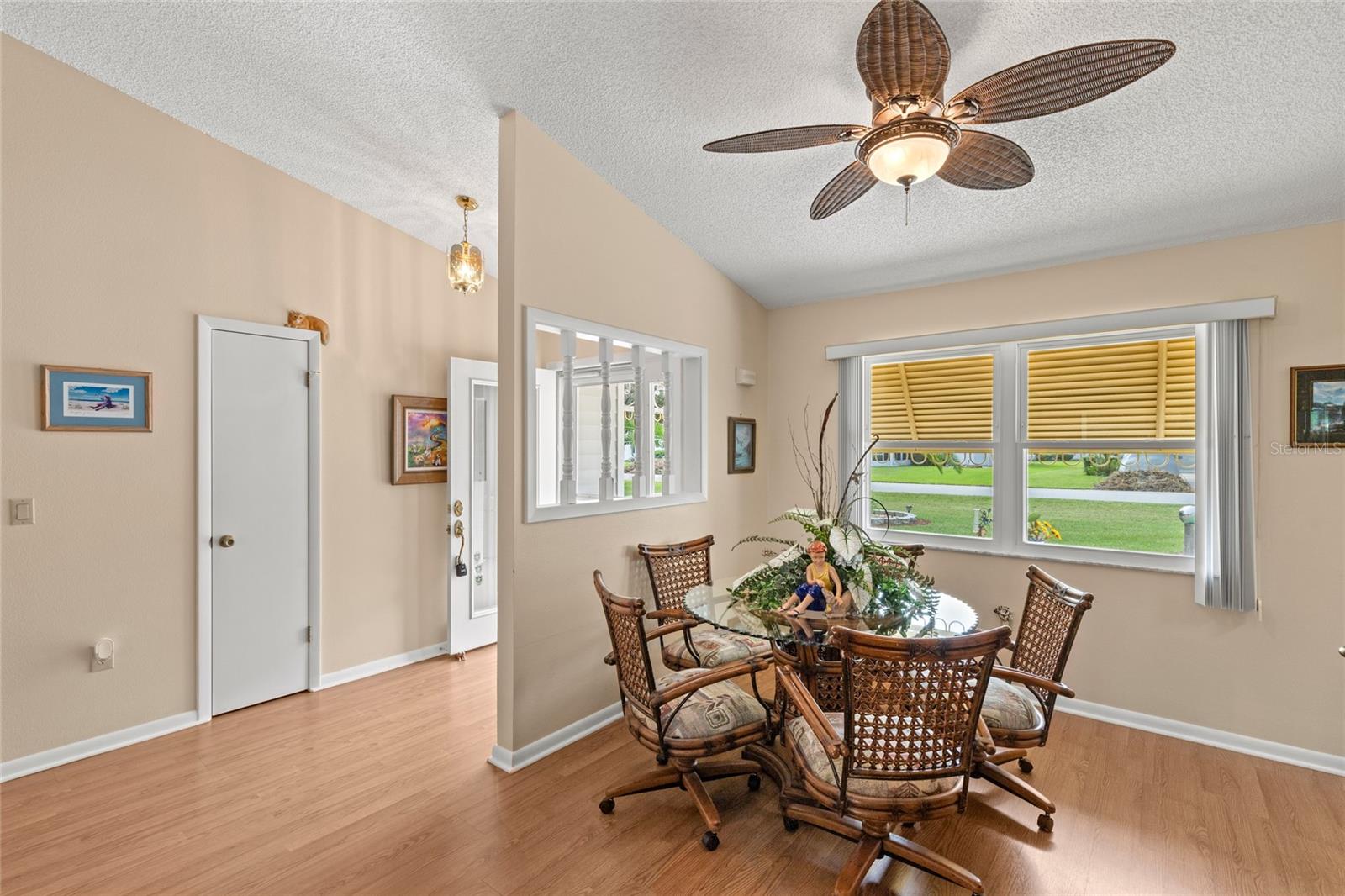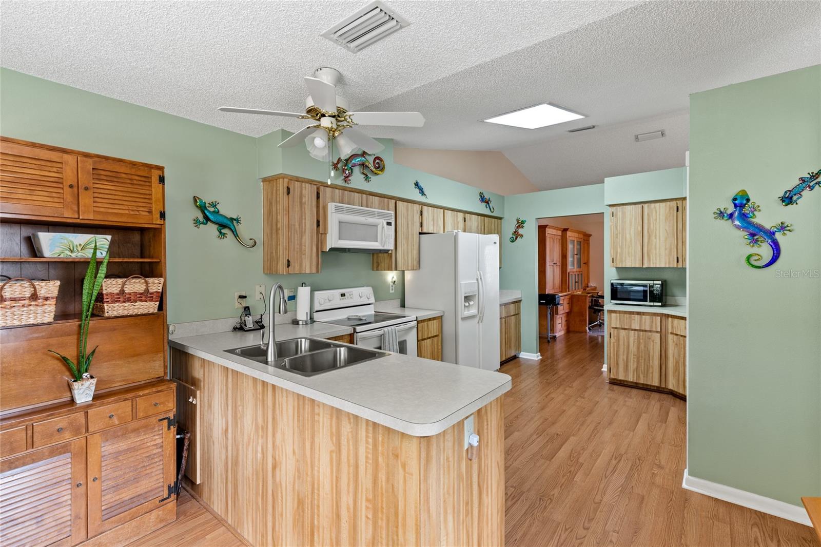 Pond Setting in the Scottish Highlands 55+ Community Imagine a beautifully landscaped home with stunning pond views from your 12 x 20 deck. The Florida room, also 12 x 20, features glass windows, providing another space to enjoy the serene scenery. The primary bedroom boasts sliding glass doors, offering a private view of the pond. Inside, the spacious living room also overlooks the pond and includes a large set of built-in cabinets with a desk. The home has two bedrooms and a bathroom on one side. The primary bedroom’s bathroom features a large, handicap-accessible walk-in spa shower, measuring 6 x 15, designed with wheelchair access in mind. The kitchen offers both a formal dining room and a kitchenette, with lower cabinets equipped with pull-out shelves for easy storage. The roof was replaced in 2017, and the windows were updated in 2013. The community includes over 600 homes, two recreation buildings, and an onsite manager. Residents have access to storage for trailers, boats, and RVs. While you maintain your own lawn, the HOA takes care of all common areas. Golf carts are welcome for cruising the streets. The community features a large pond at the entrance and smaller ponds throughout. Conveniently located near Leesburg Mall and two hospitals, Advent Health and Leesburg Hospital, this community is perfect for bass fishing enthusiasts, with numerous surrounding lakes. Prospective buyers must be approved by the Scottish Highlands HOA Board, which includes a background check and a minimum credit score of 730. The application fee is nonrefundable, and approval must be completed within five business days. A home inspection was done and available for buyers to view.