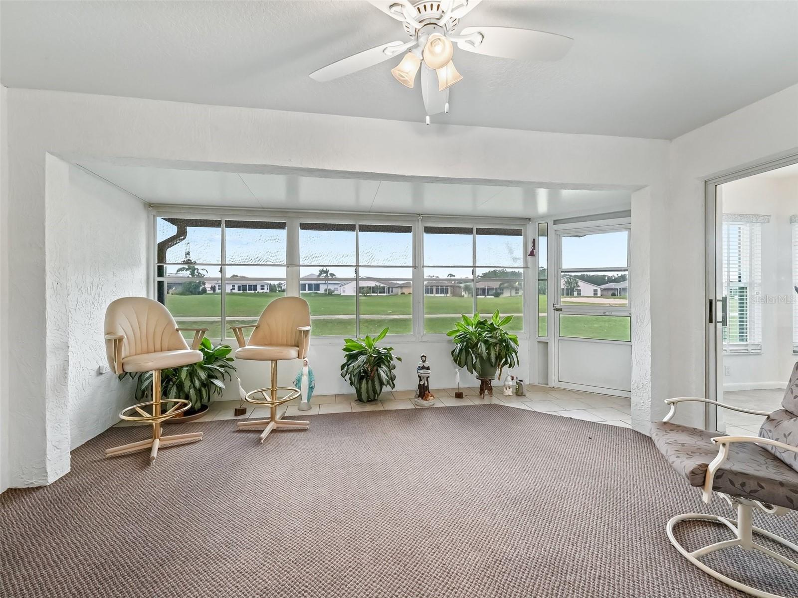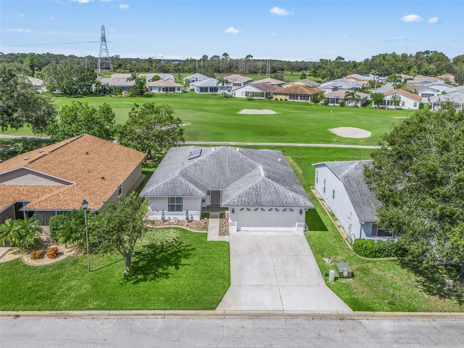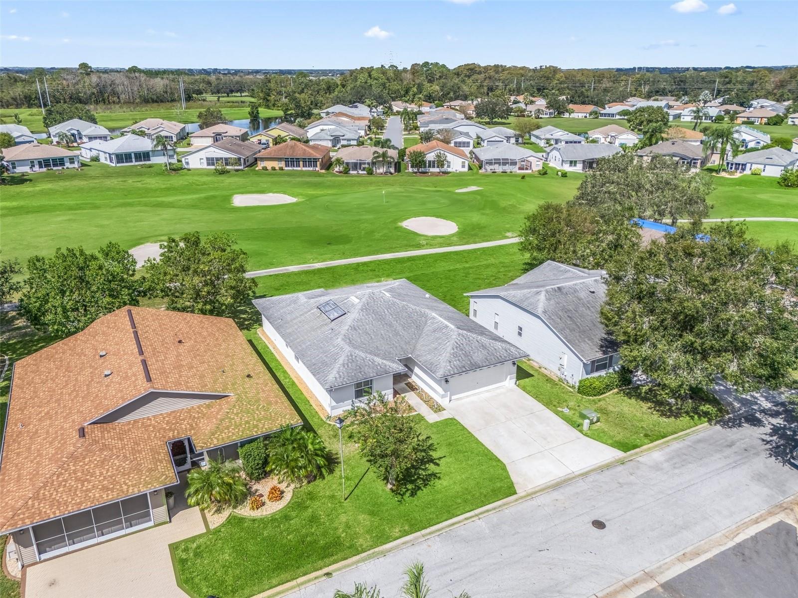 BEAUTIFUL GOLF COURSE HOME!! Located in Pennbrooke Fairways a 55+ gated community! This desirable block/stucco Mclean model home features 3 bdrs, 2 baths, inside laundry rm, and a 2 car garage. The spacious open floorplan makes it a perfect space for entertaining family and friends. Roof replaced 2015. Both bathrooms have been nicely updated. The Mstr suite offers a walk-in closet and a large en-suite with dual vanities with their own sinks, garden tub and a separate shower. Enjoy the gorgeous views of the golf course from several rooms of the home or while relaxing in the large screened lanai. The home is located on a quiet dead-end street. The entertainment Ctr and TV in the living rm can convey. Pennbrooke is an active 55+ gated community with many amenities to enjoy. The HOA fee includes, cable, internet and lawn mowing. The community is located on Hwy 44 just minutes to the Lake Deaton Plaza w/ Publix, Walgreens, etc, Downtown Leesburg, and The Villages Downtown Ctr "Brownwood" where there is plenty of shopping, dining, entertainment and medical.