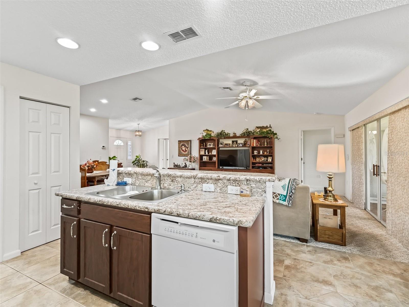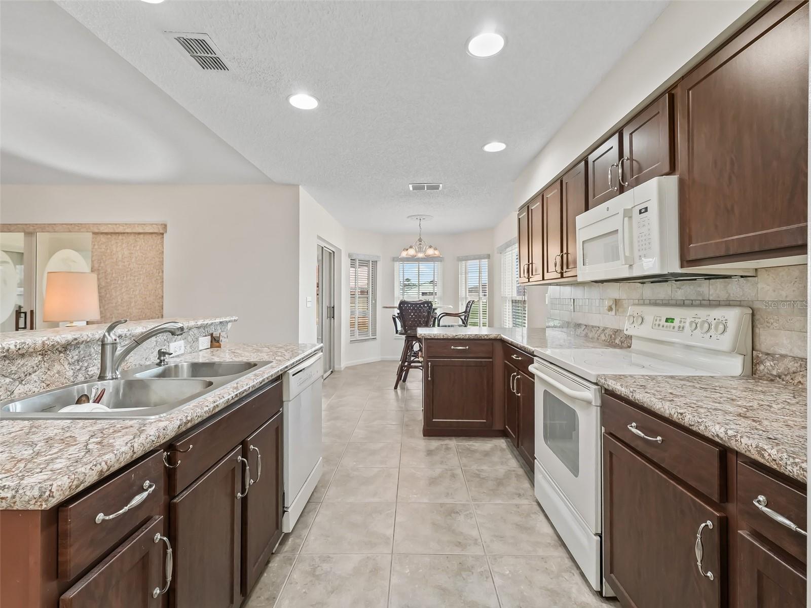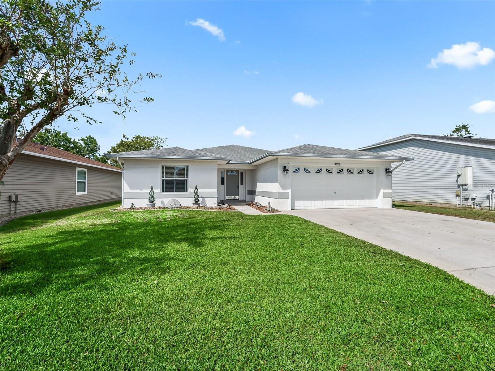 BEAUTIFUL GOLF COURSE HOME!! Located in Pennbrooke Fairways a 55+ gated community! This desirable block/stucco Mclean model home features 3 bdrs, 2 baths, inside laundry rm, and a 2 car garage. The spacious open floorplan makes it a perfect space for entertaining family and friends. Roof replaced 2015. Both bathrooms have been nicely updated. The Mstr suite offers a walk-in closet and a large en-suite with dual vanities with their own sinks, garden tub and a separate shower. Enjoy the gorgeous views of the golf course from several rooms of the home or while relaxing in the large screened lanai. The home is located on a quiet dead-end street. The entertainment Ctr and TV in the living rm can convey. Pennbrooke is an active 55+ gated community with many amenities to enjoy. The HOA fee includes, cable, internet and lawn mowing. The community is located on Hwy 44 just minutes to the Lake Deaton Plaza w/ Publix, Walgreens, etc, Downtown Leesburg, and The Villages Downtown Ctr "Brownwood" where there is plenty of shopping, dining, entertainment and medical.