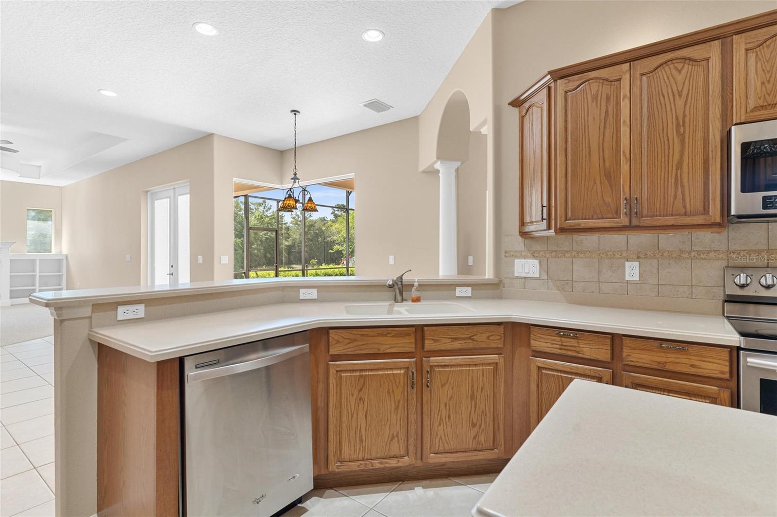 This custom-built gem is designed with accessibility and luxury in mind. Featuring wider doorways and hallways along with ramp access in garage and back porch. Step inside to discover three spacious bedrooms. Two of the bathrooms have walk-in showers, and one is specifically designed with an accessible vanity and shower, complete with hand bars for safety and convenience. Each bedroom has its own walk-in closets. The primary bedroom is a luxurious retreat featuring a window seat with extra storage. The primary bathroom includes two vanities, a shower, a tub, and two separate walk-in closets. The open floor plan with high ceilings creates a grand, airy living space perfect for entertaining and relaxation. Step out to the welcoming screened-in porch that faces the wooded backyard, ideal for unwinding and enjoying nature. With two AC units offering three separate zones for optimal climate control, everyone can enjoy their preferred temperature. While the home runs on electricity, it is also set up for gas appliances, with the water heater currently operating on gas. Kitchen features Corian countertops and oak cabinets perfect for culinary enthusiasts. The interior of the home has been completely painted. One of the two air conditioners was replaced July 2024.