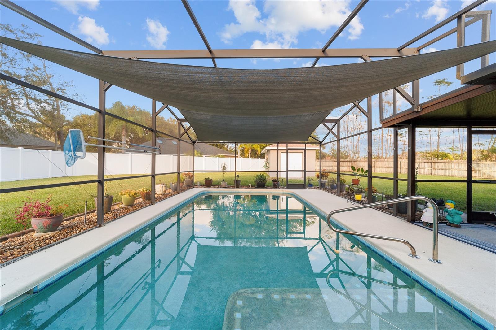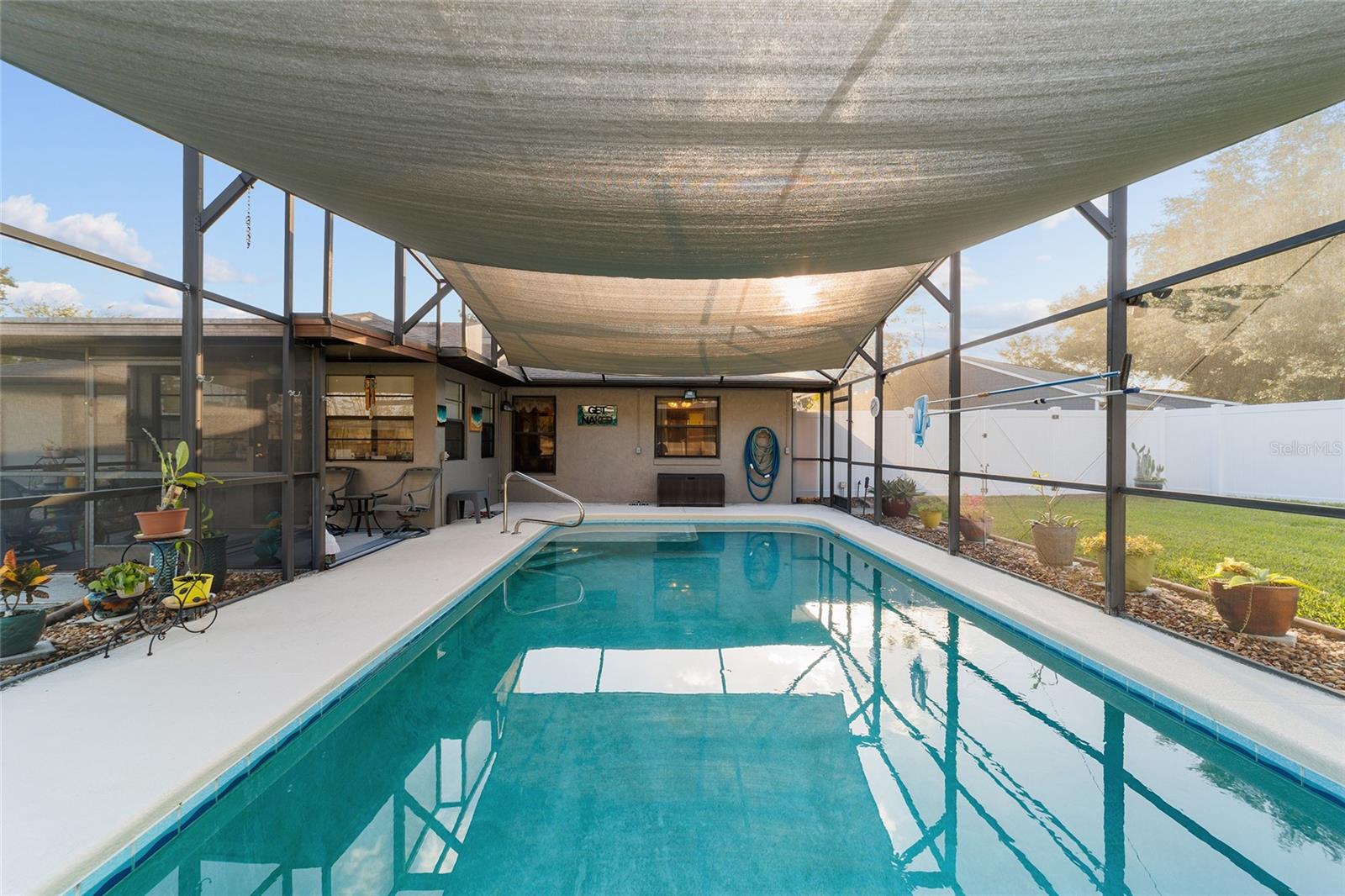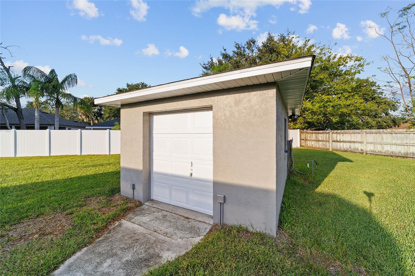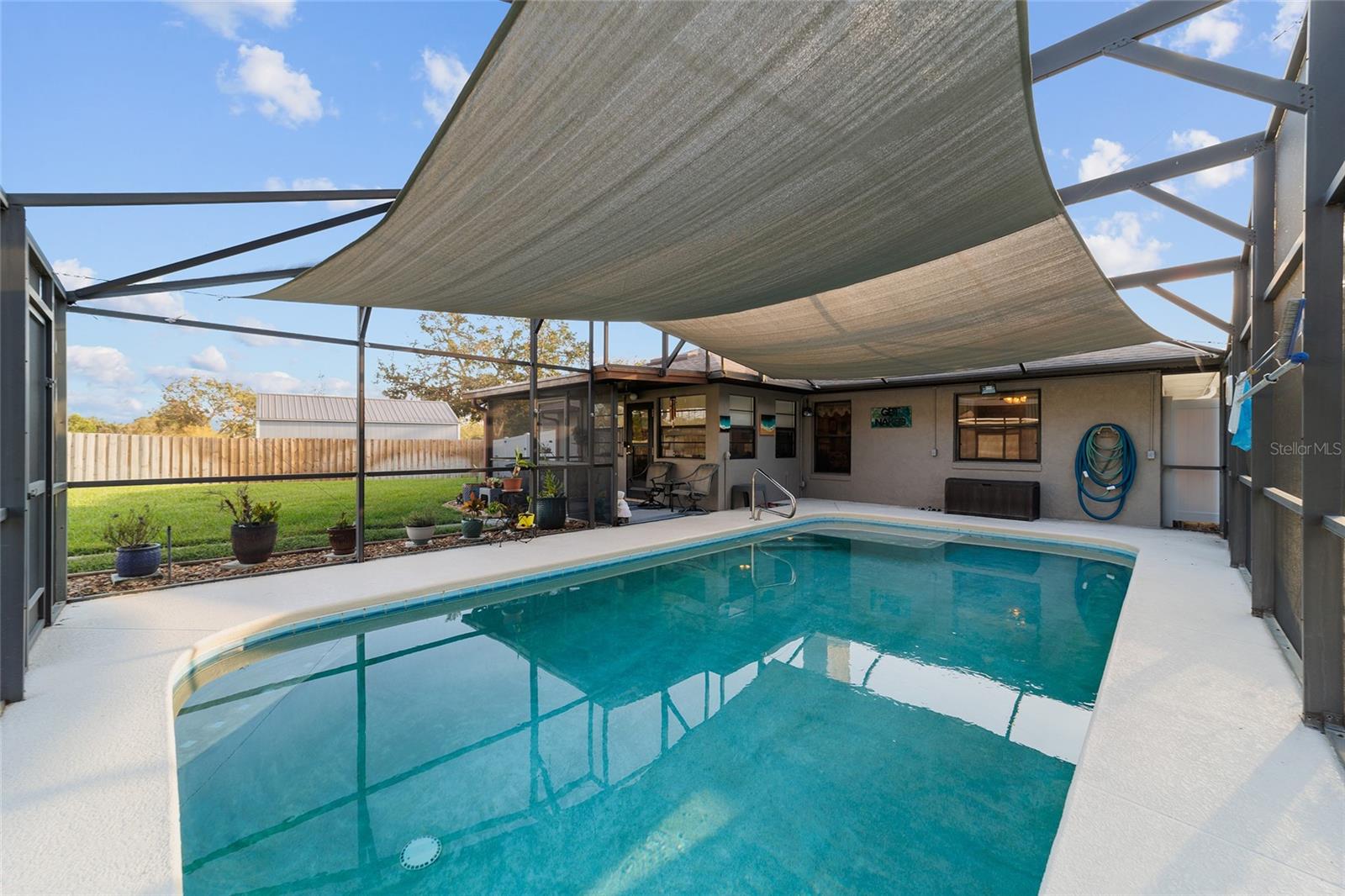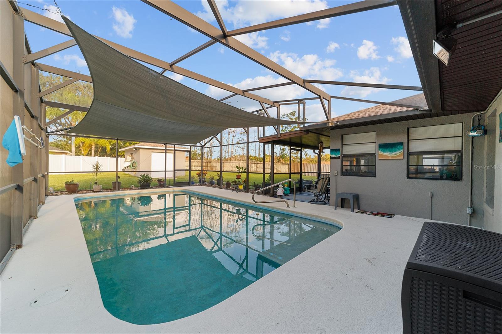 Welcome home! This beautifully maintained property offers everything you’ve been searching for and more. With three spacious bedrooms and three full bathrooms, including two luxurious master suites, this home is designed for comfort and versatility. The attached two-car garage is complemented by an additional 12x16 detached garage/storage space, perfect for hobbies, tools, or extra storage. Sitting on a large lot, the fully fenced backyard is your personal retreat. The brand-new white vinyl fence adds privacy and style, while the 13x28 saltwater in-ground pool invites you to relax or entertain in style. Whether hosting family gatherings or unwinding after a long day, this pool is a showstopper. The backyard also features an irrigation well, making it easy to maintain the lush landscaping. Located in a highly desirable area with no HOA, this home is conveniently close to shopping, dining, and just a short drive to The Villages or Orlando. This home truly has it all—comfort, convenience, and charm. Don’t wait—schedule your private showing today and make this exceptional property yours!