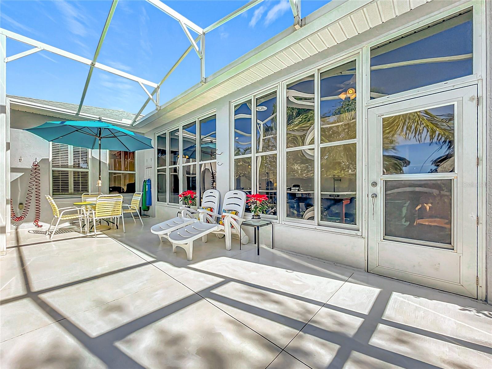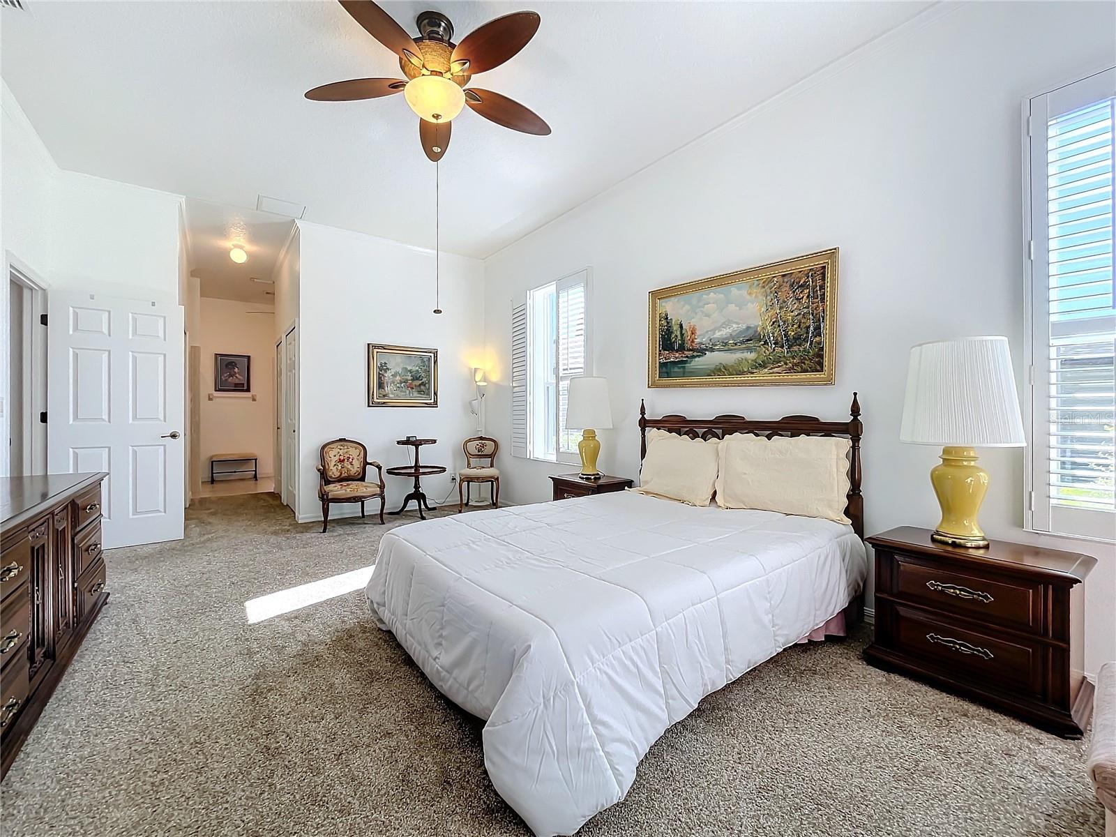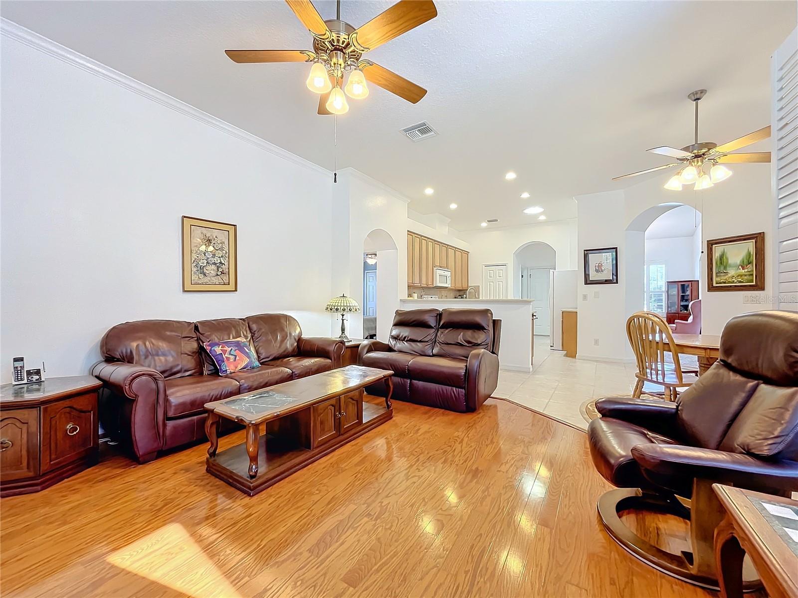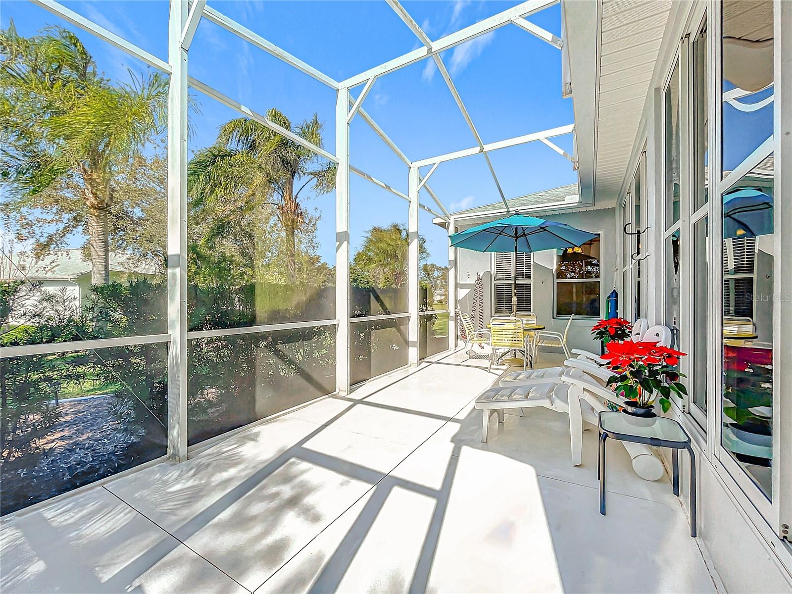 Resort Style Living at its best, this home is in the amenity-rich 55 plus active community of Legacy of Leesburg in Florida, which is centrally located between Clermont and The Villages. This home has an amazing floor plan, many upgrades, and has been meticulously maintained. This home sits on an oversized lot which is approximately 1/4 acre of land. Upon entry to the home, you are welcomed into the formal living/dining space with Vaulted ceilings and two (2) Solar lights which brings in the Florida sunshine. The living/dining room opens, through French doors, to the enclosed 3 seasoned lanai which extends to an outside screened in patio. The master suite is just off the formal living areas and features his and her walk-in closets, a linen closet, a very spacious walk-in shower, dual sinks, many cabinets and a separate toilet closet. When entertaining, the kitchen is at the heart of the house and boasts 42" cabinets with pullout drawers, a solar light, Corian counters, a beautiful tile backsplash, and a breakfast bar that overlooks the family room. The family room has custom Built-in bookcases and an engineered hardwood floor. This particular home has an abundance of features and upgrades - Laminate floors in the 2nd and 3rd bedroom, 10 ft ceilings in family room, kitchen and kitchen nook, Crown Molding in primary bedroom, kitchen and family room, Plantation shutters throughout except for 2nd and 3rd bedrooms, Built in cabinets in Laundry room, Solar tubes/ceiling lights (4) in living/dining room, kitchen & lanai, Cut glass chandeliers in entrance foyer and dining area; Ceiling fans (7) throughout. All new drought tolerant and low maintenance landscaping done (2023), Cement curbing around the house painted and sealed (2023), Irrigation system with metered sprinklers updated (2023), Entire interior of home was painted including the closets, lanai, and garage (2022), Guest Bathroom remodeled and shower doors added (2022), New indoor/outdoor carpet in lanai (2022), Additional shelving added in all closets (2022), Epoxy coating in garage, driveway and walkway leading in to front entrance (2019) , Exterior painting of home (2019), Whole house water filtration system added (2017), REFRIGERATOR WITH ICE MAKER (2018), HVAC ( HEAT CYCLE IS POWERED BY NATURAL GAS) (2018), NEW ROOF (2019), GAS WATER HEATER (2022). The Community features a gated entrance and if you are someone who needs to stay busy, the Community has you covered with many activities. The Clubhouse has a Fitness Center, Aerobics & Dance Studio, Hobby & Game Room, Card Room, Ceramics Studio, Arts & Crafts Studio, Sewing Studio, Ballroom, Computers, Library, Billiards, Demonstration Kitchen, and Locker rooms. Outside there is a beautiful Resort style swimming pool, many Walking & Biking Trails (13), Tennis Courts, Pickleball Courts, Bocce Ball Courts, Horseshoe Pits, Softball/Baseball Field, Picnic area, and a Gazebo. Legacy of Leesburg is known as the Nature community and has preserved many Scenic Lakes, Ponds, Parks & Natural Space. HOA DUES include Basic Cable, Internet, cutting of the lawn, & a secure RV/Boat parking lot.