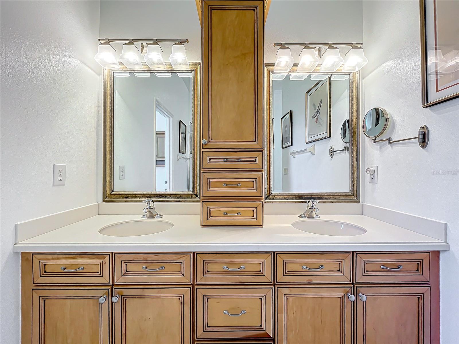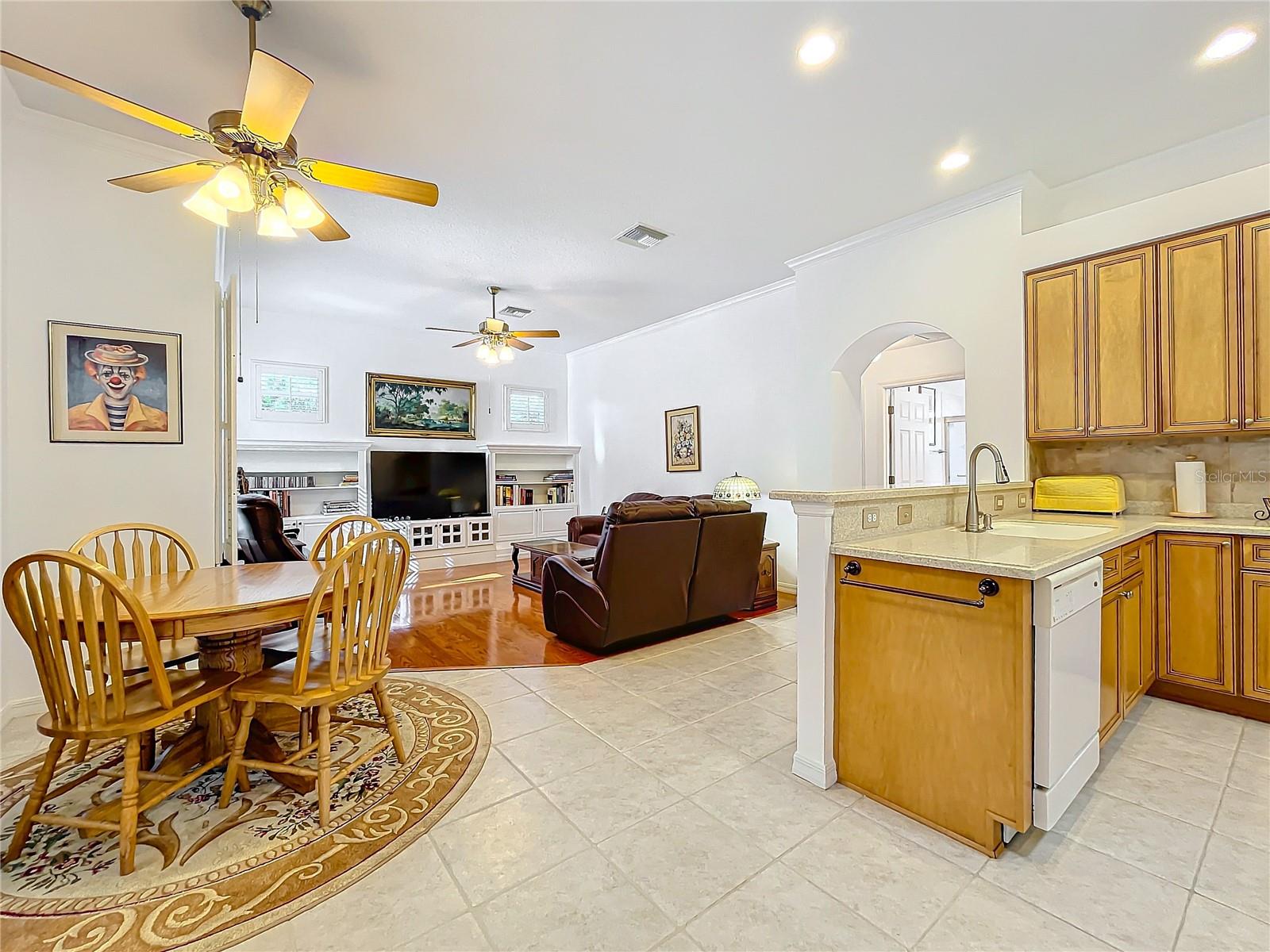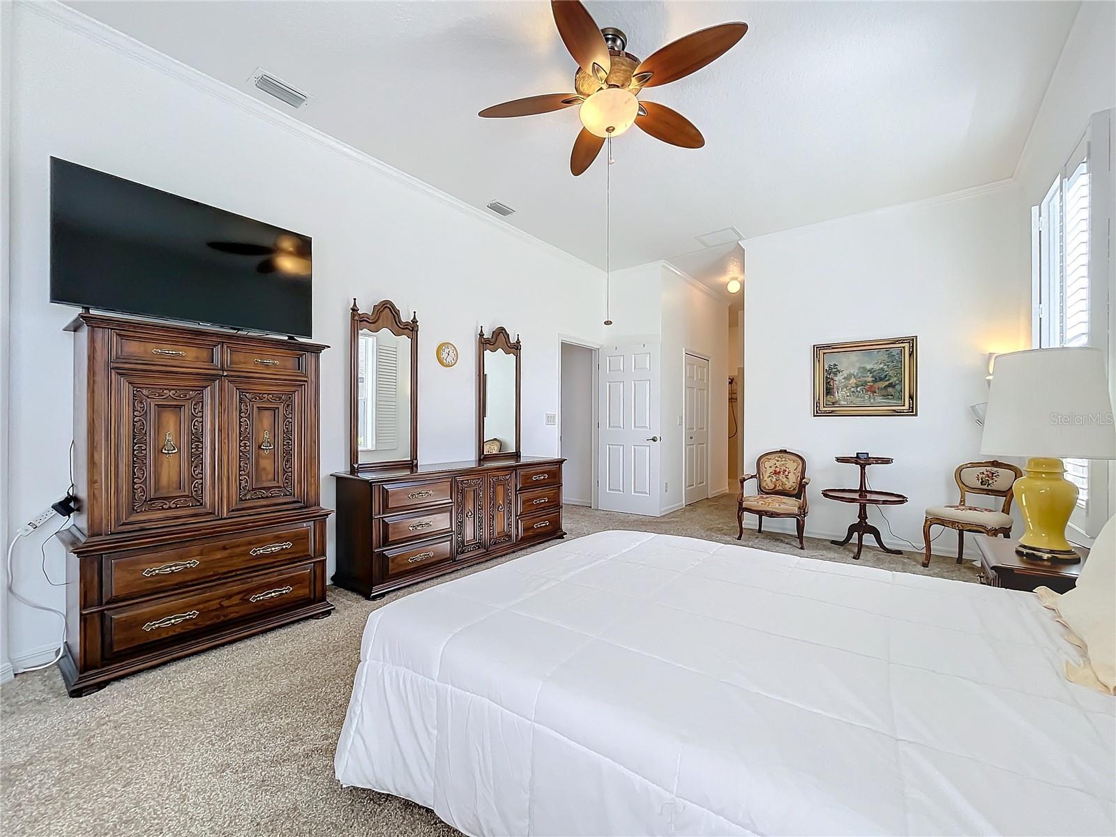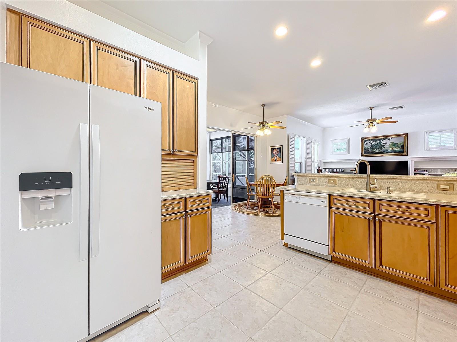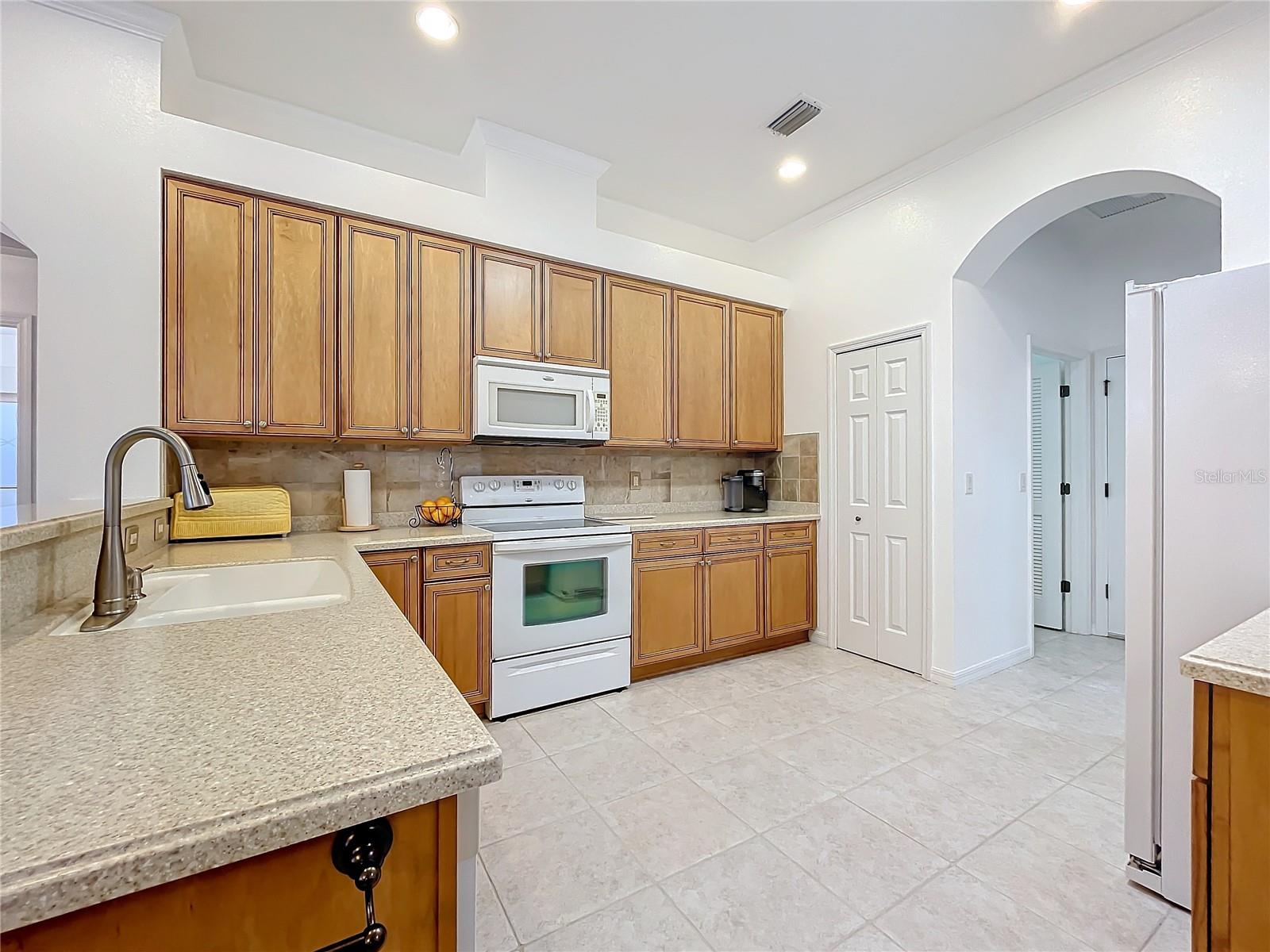 Resort Style Living at its best, this home is in the amenity-rich 55 plus active community of Legacy of Leesburg in Florida, which is centrally located between Clermont and The Villages. This home has an amazing floor plan, many upgrades, and has been meticulously maintained. This home sits on an oversized lot which is approximately 1/4 acre of land. Upon entry to the home, you are welcomed into the formal living/dining space with Vaulted ceilings and two (2) Solar lights which brings in the Florida sunshine. The living/dining room opens, through French doors, to the enclosed 3 seasoned lanai which extends to an outside screened in patio. The master suite is just off the formal living areas and features his and her walk-in closets, a linen closet, a very spacious walk-in shower, dual sinks, many cabinets and a separate toilet closet. When entertaining, the kitchen is at the heart of the house and boasts 42" cabinets with pullout drawers, a solar light, Corian counters, a beautiful tile backsplash, and a breakfast bar that overlooks the family room. The family room has custom Built-in bookcases and an engineered hardwood floor. This particular home has an abundance of features and upgrades - Laminate floors in the 2nd and 3rd bedroom, 10 ft ceilings in family room, kitchen and kitchen nook, Crown Molding in primary bedroom, kitchen and family room, Plantation shutters throughout except for 2nd and 3rd bedrooms, Built in cabinets in Laundry room, Solar tubes/ceiling lights (4) in living/dining room, kitchen & lanai, Cut glass chandeliers in entrance foyer and dining area; Ceiling fans (7) throughout. All new drought tolerant and low maintenance landscaping done (2023), Cement curbing around the house painted and sealed (2023), Irrigation system with metered sprinklers updated (2023), Entire interior of home was painted including the closets, lanai, and garage (2022), Guest Bathroom remodeled and shower doors added (2022), New indoor/outdoor carpet in lanai (2022), Additional shelving added in all closets (2022), Epoxy coating in garage, driveway and walkway leading in to front entrance (2019) , Exterior painting of home (2019), Whole house water filtration system added (2017), REFRIGERATOR WITH ICE MAKER (2018), HVAC ( HEAT CYCLE IS POWERED BY NATURAL GAS) (2018), NEW ROOF (2019), GAS WATER HEATER (2022). The Community features a gated entrance and if you are someone who needs to stay busy, the Community has you covered with many activities. The Clubhouse has a Fitness Center, Aerobics & Dance Studio, Hobby & Game Room, Card Room, Ceramics Studio, Arts & Crafts Studio, Sewing Studio, Ballroom, Computers, Library, Billiards, Demonstration Kitchen, and Locker rooms. Outside there is a beautiful Resort style swimming pool, many Walking & Biking Trails (13), Tennis Courts, Pickleball Courts, Bocce Ball Courts, Horseshoe Pits, Softball/Baseball Field, Picnic area, and a Gazebo. Legacy of Leesburg is known as the Nature community and has preserved many Scenic Lakes, Ponds, Parks & Natural Space. HOA DUES include Basic Cable, Internet, cutting of the lawn, & a secure RV/Boat parking lot.