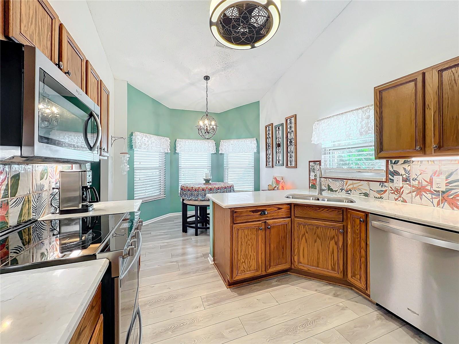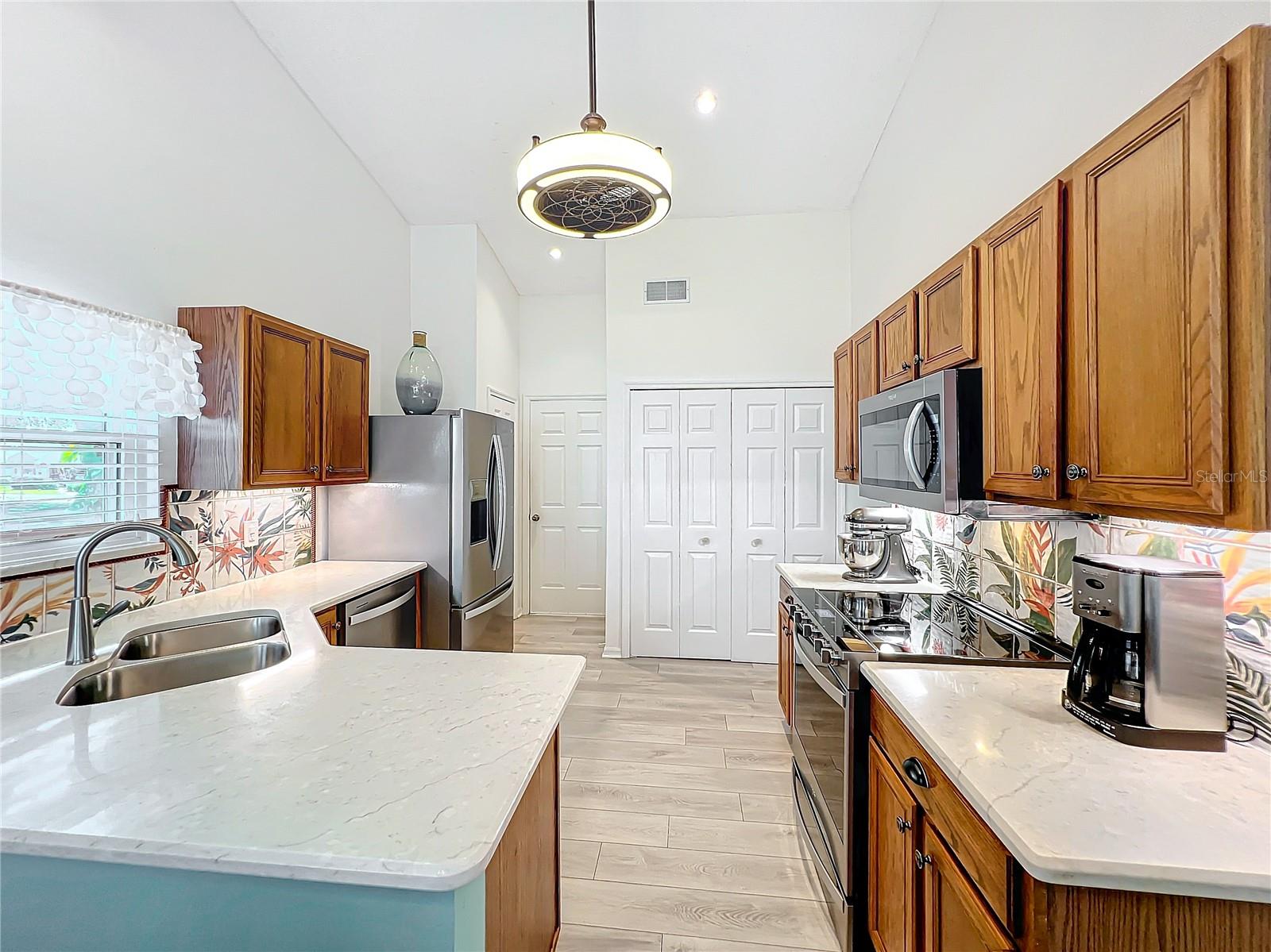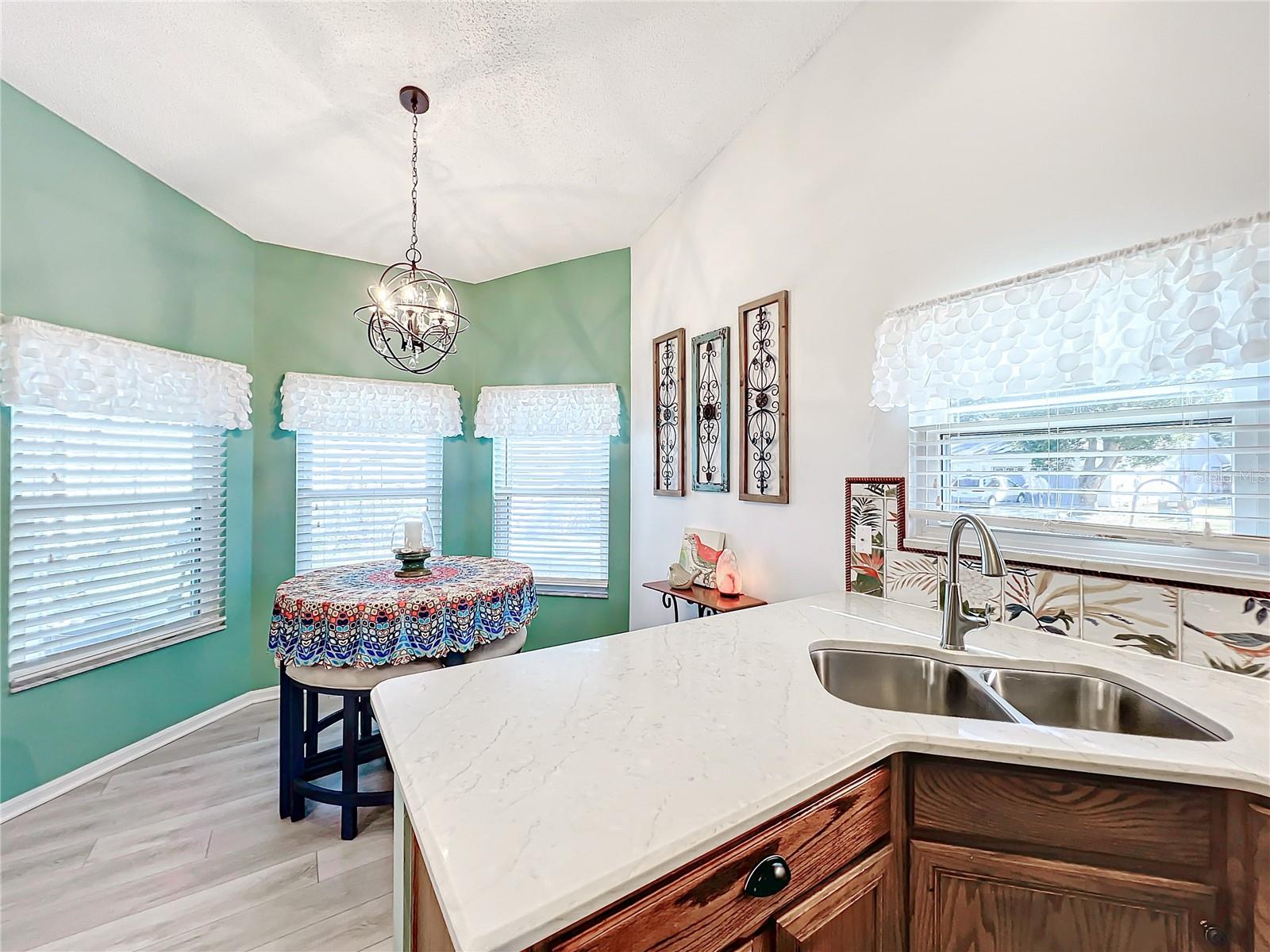 price improvement and lania, Breakfast Nook and Bar convey.This stunning corner-lot home in Tara View Village is a true gem, offering both comfort and style. The low-maintenance, clean yard with new pavers on the driveway sets the tone for the rest of the property. Recent updates include a brand-new roof (installed July 2024), a new HVAC system (2015), and a new water heater (2019), NEW Windows in 2019.Inside, you'll find 2 spacious bedrooms, 2 full baths, a 2-car garage, and a versatile den. The home has been thoughtfully remodeled, featuring luxurious quartz countertops, sleek luxury vinyl flooring, and top-of-the-line stainless steel kitchen appliances. The kitchen also boasts pull-out drawers for added storage convenience. The indoor laundry closet adds to the home's functionality.The primary bath is a true retreat, complete with an open shower, dual vanities, and an extra linen closet for added storage. The open floor plan is perfect for entertaining guests, while the private guest bedroom and upgraded guest shower for comfort and privacy.The expansive 24 x 9 lanai extends your Florida living space, creating the perfect spot for relaxation or gatherings. This home offers both modern upgrades and a welcoming atmosphere—don't miss the opportunity to make it yours!Enjoy leisurely rounds of golf on two 18-hole courses, stay active with lighted tennis courts, or relax by one of the three sparkling pools and Jacuzzis.For those who love staying fit, the world-class fitness centers and Volleyball & Pickleball courts will keep you engaged. With over 100 planned activities each week, you’ll always have something fun to look forward to. The scenic, landscaped boulevards and serene lakes offer a peaceful backdrop, perfect for fishing or simply unwinding. Plus, with three expansive clubhouses and a delicious on-site restaurant, everything you need is right at your doorstep.