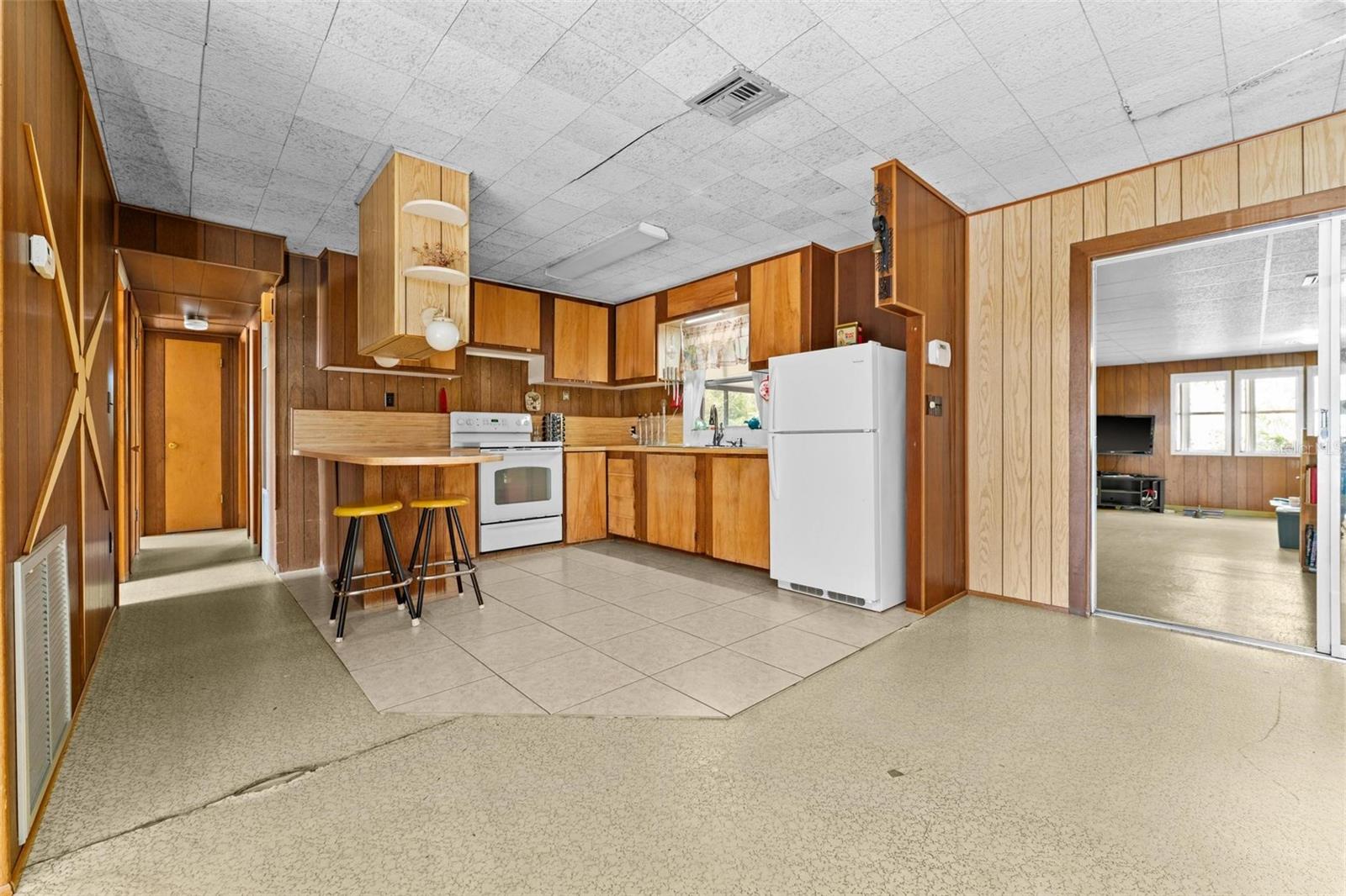 The home you were looking to make your own. This three-bedroom home is bursting with opportunity! It comes equipped with a ramp that makes for ease of access on the newly surfaced back porch. The home also boasts a spacious open floor plan at the front of the house, it provides ample room for creative design and comfortable living. The kitchen features timeless real wood cabinets and comes fully equipped with all appliances included, making it ready for your culinary adventures. A reroof completed in 2009, while the large living area just off the kitchen offers endless possibilities to create the perfect space for relaxing, entertaining, or both. Whether you're a first-time buyer or looking to personalize your dream home, this property is ready to make your vision a reality.