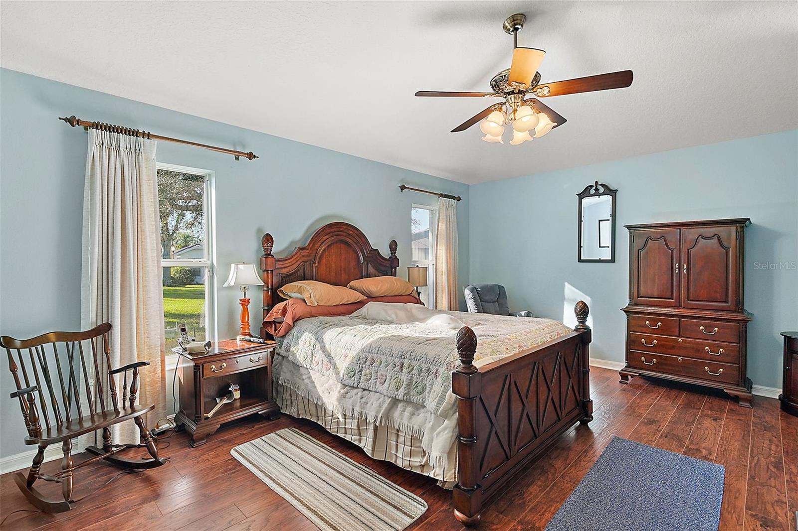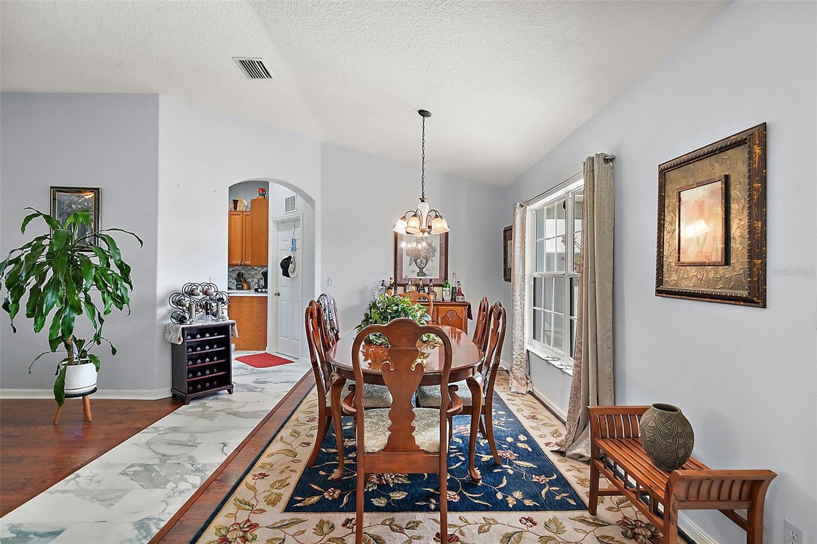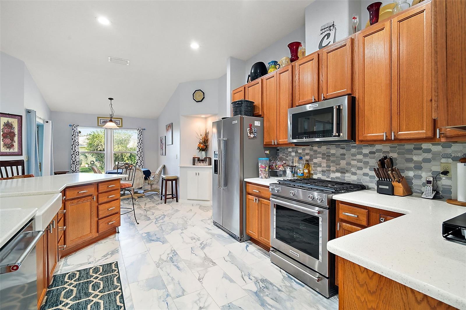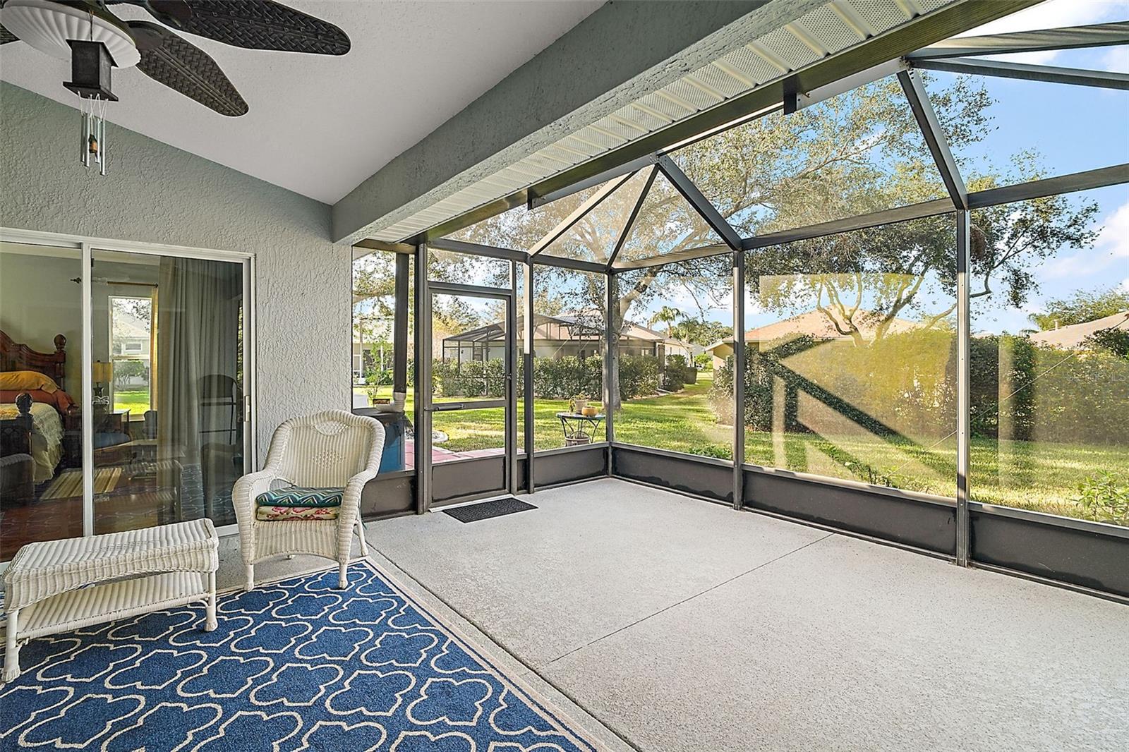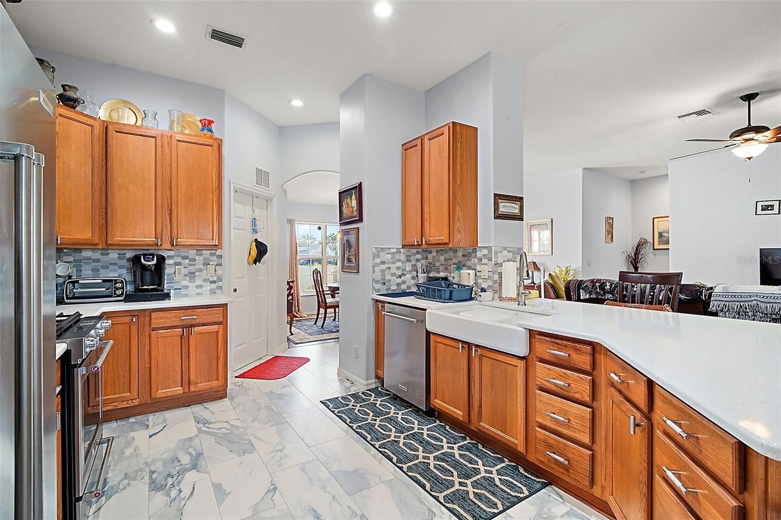 This beautiful home is a must see! Stepping inside the front door you, your eye will be drawn to the high end marble flooring and the spacious living room. To your left, there is a flex room with potential for a den, hobby room, or even a fourth bedroom and on your right is the formal dining room with a view of the front courtyard. The kitchen will wow you! Tons of cabinet space, stunning backsplash, quartz countertops with bar space, farmhouse sink, and breakfast nook with access to the lanai. The master suite is wonderful and spacious with walk-closet and sliding doors that also lead to the screened in lanai. The master bath has a walk-in shower, double vanity, and huge built in linen closet. At the other end of the home, there are two additional bedrooms with great lighting and a shared hall bathroom. The third bedroom is currently being utilized as a home office with customized built in desk and cabinets. Exiting through the laundry room into the garage, there are two full size parking space, golf cart garage, and a large workshop with plenty of space for storage, tools, and equipment. The homes central vac system is also located in the garage. Beautiful landscaping and rock beds surround the perimeter of the home and there are lush and lavish views of the oversized lot that is more than 1/2 an acre! The home is powered by solar with a very affordable, transferable lease never having to worry about sky rocketing electric bills. The gated community of Legacy has phenomenal amenities including peaceful walking trails, clubhouse, library, billiard room, resort style heated pool, social events, RV and boat storage, cable, internet, and even your lawn maintenance that includes edging. Easy access to major highways, shopping, and dining. Assumable VA