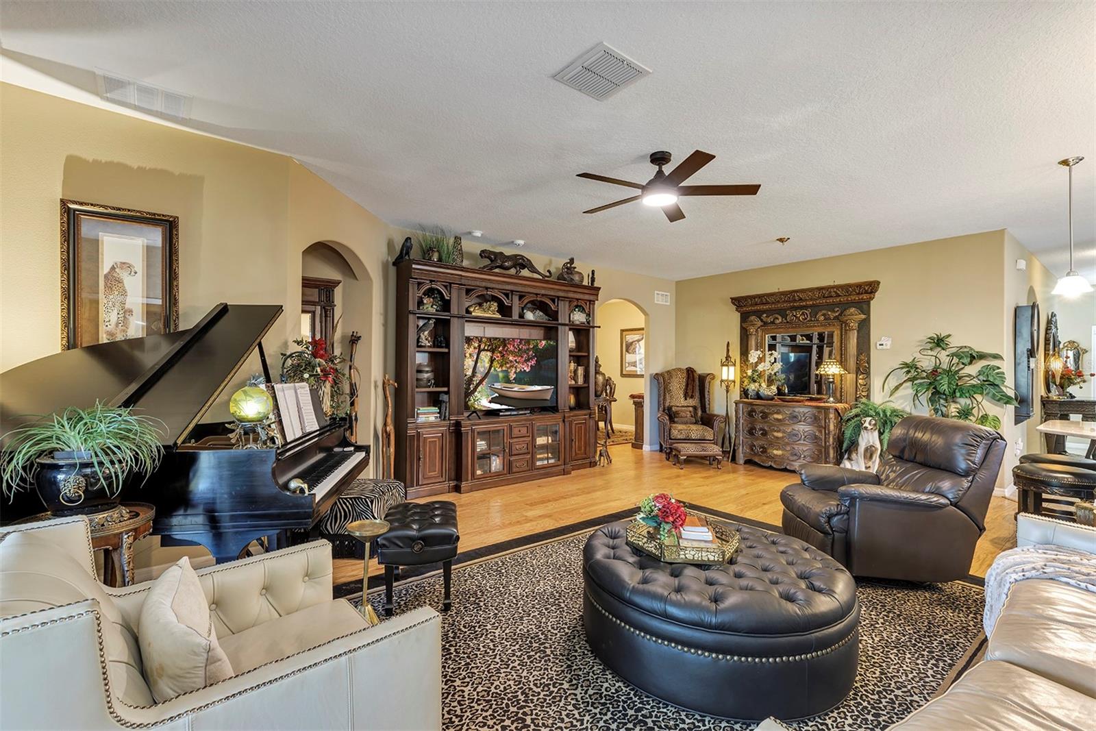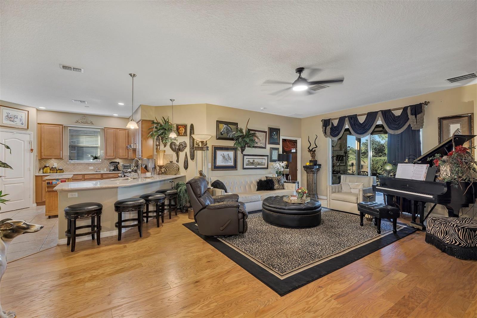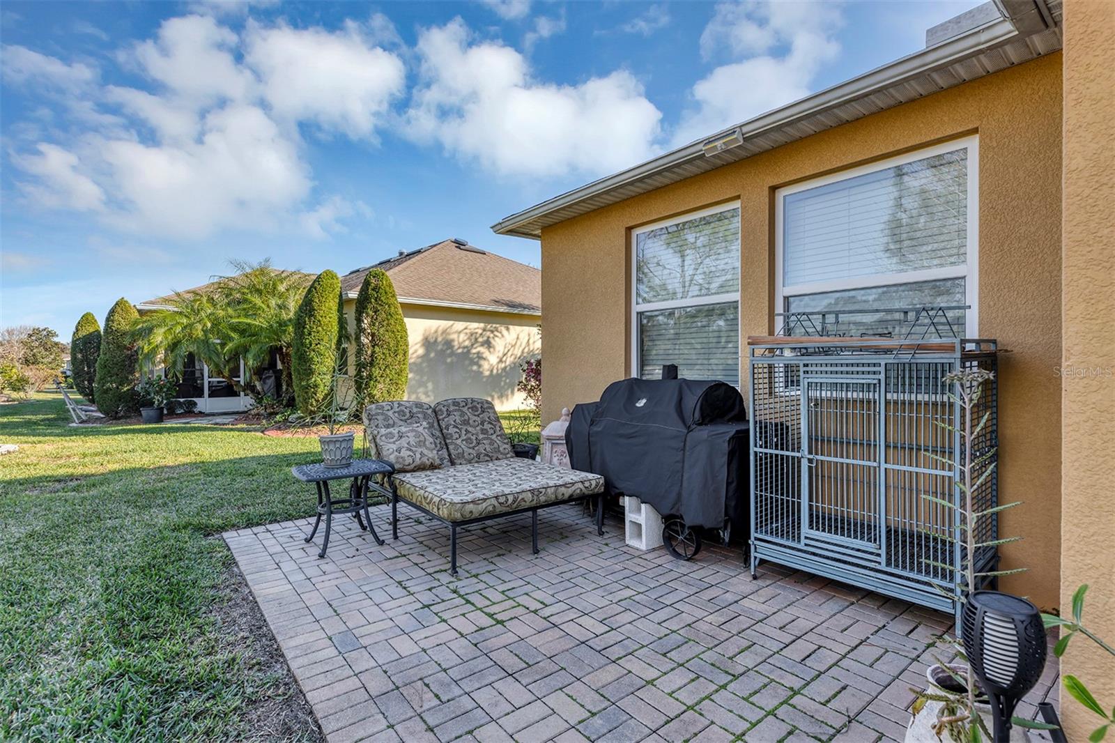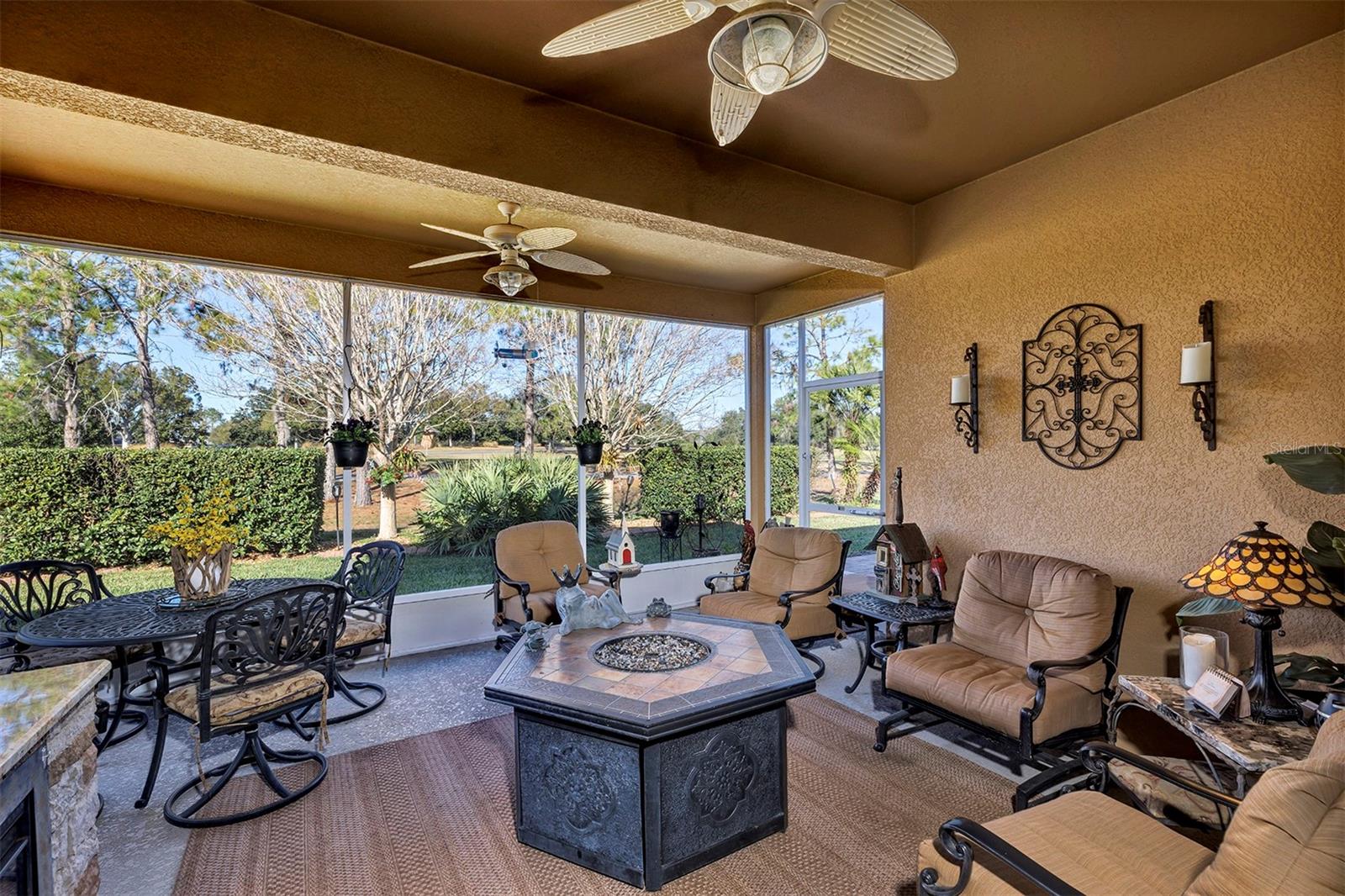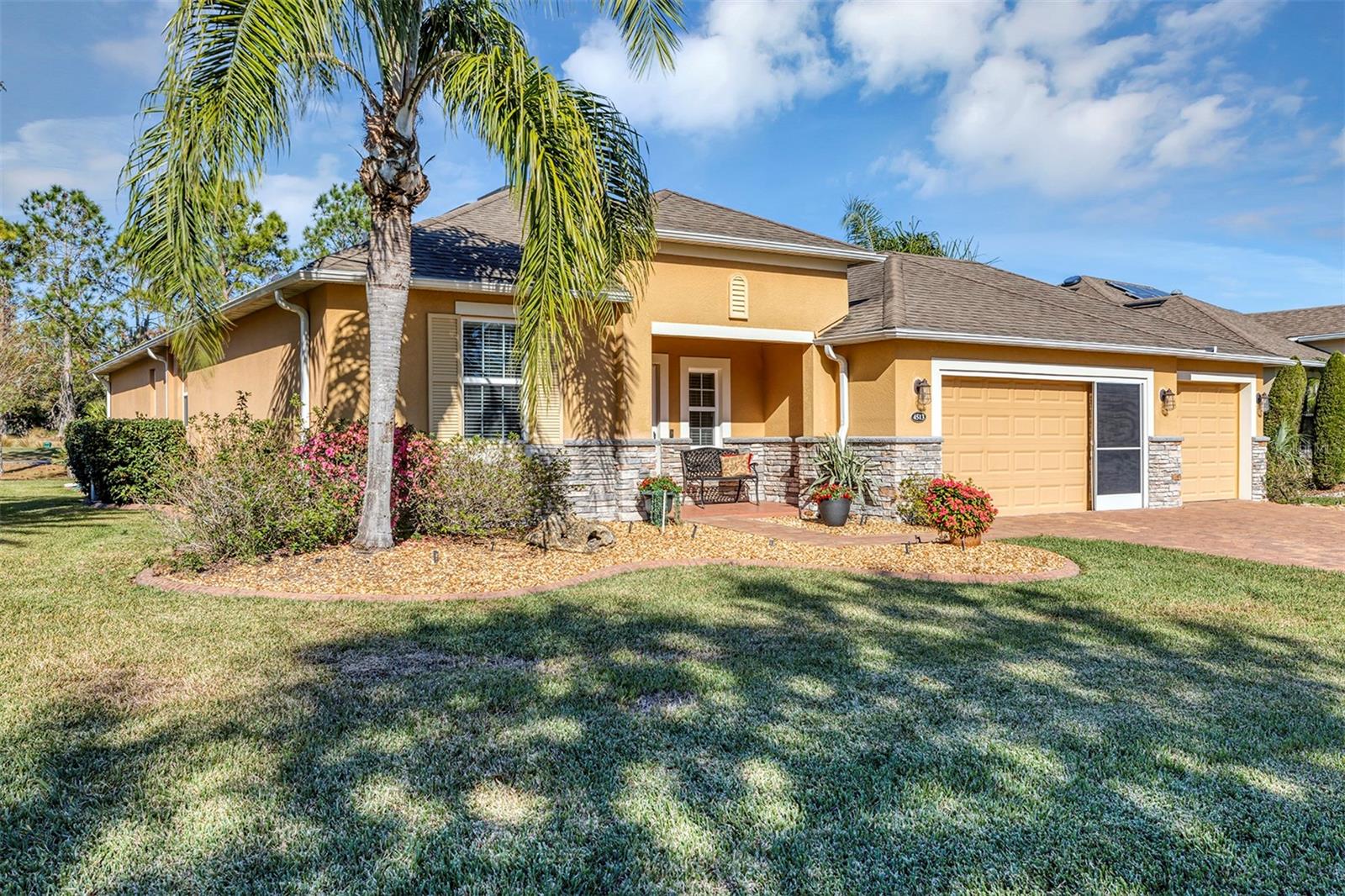 Rare offering, 3 Bedroom 3 Bath 3 Car Garage, Two of the bedrooms are master suites (could be in-law suite) Affordable Home in 55+ Active Adult, Guard Gated Golf-Community In High Demand Arlington Ridge Low-Maintenance Stucco, Discover a lifestyle of comfort and leisure you've waited for your whole life for in this charming home located in the popular, high-demand Community With a low HOA of $126 per month, Home situated only 5 minute golf cart ride to the community amenities, restaurant and pub. Open-concept floor plan and high ceilings enhance the sense of space and inviting atmosphere and overlook sliding doors connecting to a 450 s.f. golf-front always shady lanai This modern design has no carpets, only engineered hardwood & tile flooring and 9 foot ceilings throughout, open floor plan connects Great Room, Dining area and gourmet kitchen, Kitchen has gorgeous quartz countertops, wood cabinets, closet pantry and upgraded stainless steel appliances, extra wall oven that stay with the home The 2 master bedrooms features an en-suite bath, walk-in Roman shower for added safety, private water closet & large walk-in closet, Indoor laundry room, Washer & Dryer are included. Upgrades incl. Paver driveway & Sidewalk, stone façade, concrete curbing with river rock mulch for low maintenance permanent landscaping, 2 areas of pavers for grilling or watching the sunset, gutters and a screen for the garage door If you're looking for paradise, you’ve found it. Benefit from huge discounts on homeowner's insurance due to the home's high construction standards being built to modern wind code, high elevation for flood protection, and a low wind zone, also qualifying for additional insurance discounts. Owners are presently paying $3,144/Year for low deductible insurance. The low HOA of $126/month includes Mowing, edging & blowing, High speed Wi-Fi and router for signal coverage throughout the home, 200+ cable TV channels, and 250-megabyte high-speed internet. Two DVRs are also included for recording your favorite shows which is all included in the low HOA making this community even more affordable than nearby communities This sought-after community offers a range of amenities, including an 18-hole golf course where you can get a tee time year round, YOU DO NOT HAVE TO PURCHASE A SOCIAL OR GOLF MEMBERSHIP TO USE AMENITIES, driving range, putting greens, lighted tennis and pickleball courts, heated swimming pools, hot tub, fitness facilities, billiards, a restaurant, tavern, and a free movie theater. The community is golf cart-friendly, with sidewalks for strolls and low-speed limit streets perfect for bicycling. Enjoy the convenience to grocery stores, restaurants, banks, pharmacies and a free boat ramp and fishing pier on a 15,000-acre lake are nearby within a 5-minute drive . Community is 20 minutes from malls, restaurants, and a 12-screen movie theater, 45 minutes from Orlando, Major theme parks, and the airport, 90 minutes to Daytona Beach & Atlantic Ocean and Gulf of Mexico Clearwater SJS 2025©