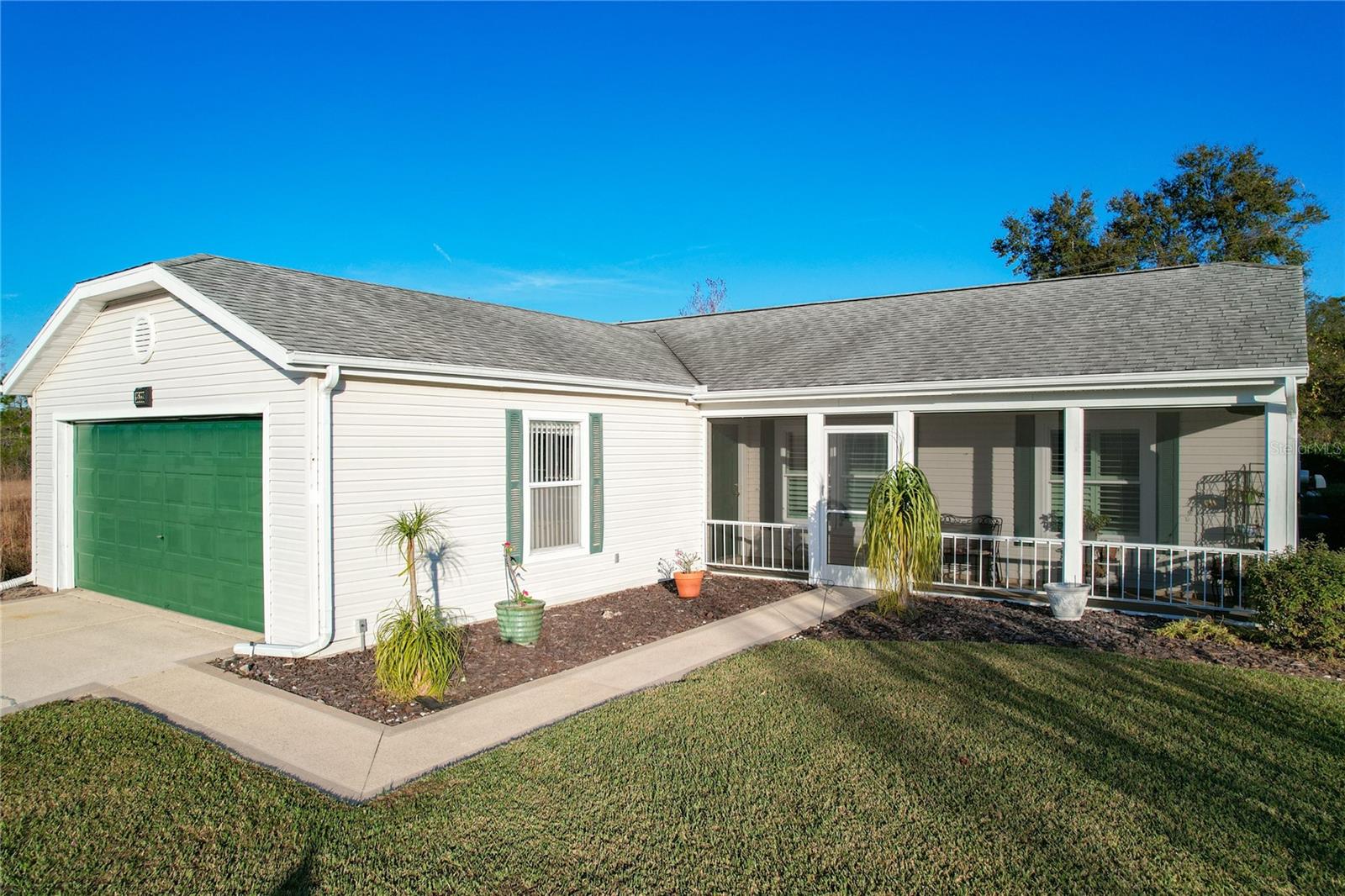 This charming Abaco model home in Plantation at Leesburg is one of the most desirable properties in the community. Situated on a peaceful cul-de-sac with a private backyard, it offers both tranquility and convenience. The long driveway accommodates several vehicles, plus there's a spacious two-car garage. Enjoy outdoor living on the screened front porch or the screened patio in the backyard—ideal for family BBQs or simply relaxing in the serene, no-rear-neighbor setting.Inside, the home features a practical split floor plan and beautiful, easy-to-maintain laminated wood flooring throughout. The layout is perfect for those looking for a low-maintenance, comfortable home, particularly ideal for retirees. Double pane Windows and Elegant Plantation Shutters.Recent upgrades include a brand-new HVAC system (installed in July 2023), and the roof, though from 2007, is in good condition. All kitchen appliances are included with the sale. Additionally, a home warranty is in place, paid through 2026 and fully transferable to the new owners, providing extra peace of mind. This property truly offers a blend of comfort, convenience, and value—perfect for a carefree lifestyle. Enjoy leisurely rounds of golf on two 18-hole courses, stay active with lighted tennis courts, or relax by one of the three sparkling pools and Jacuzzis.For those who love staying fit, the world-class fitness centers and Volleyball & Pickleball courts will keep you engaged. With over 100 planned activities each week, you’ll always have something fun to look forward to. The scenic, landscaped boulevards and serene lakes a peaceful backdrop, perfect for fishing or simply unwinding. Plus, with three expansive clubhouses and a delicious on-site restaurant, everything you need is right at your doorstep.
