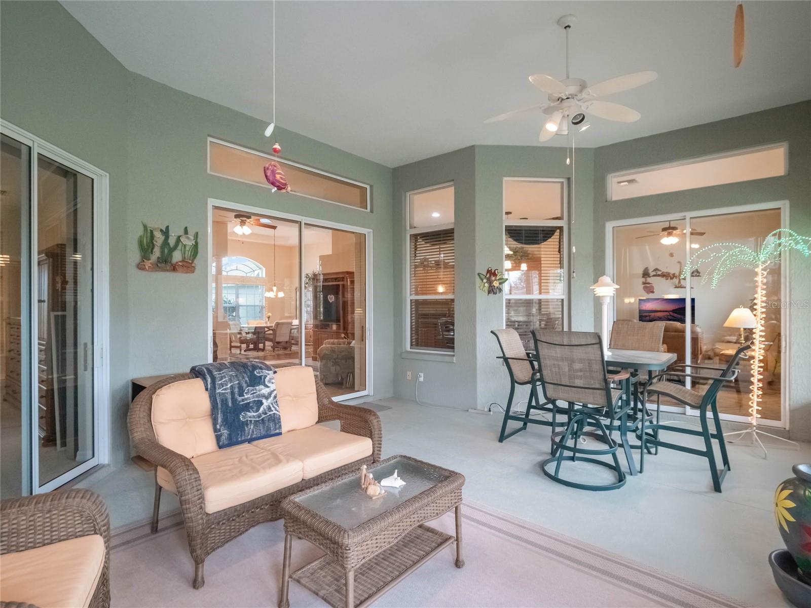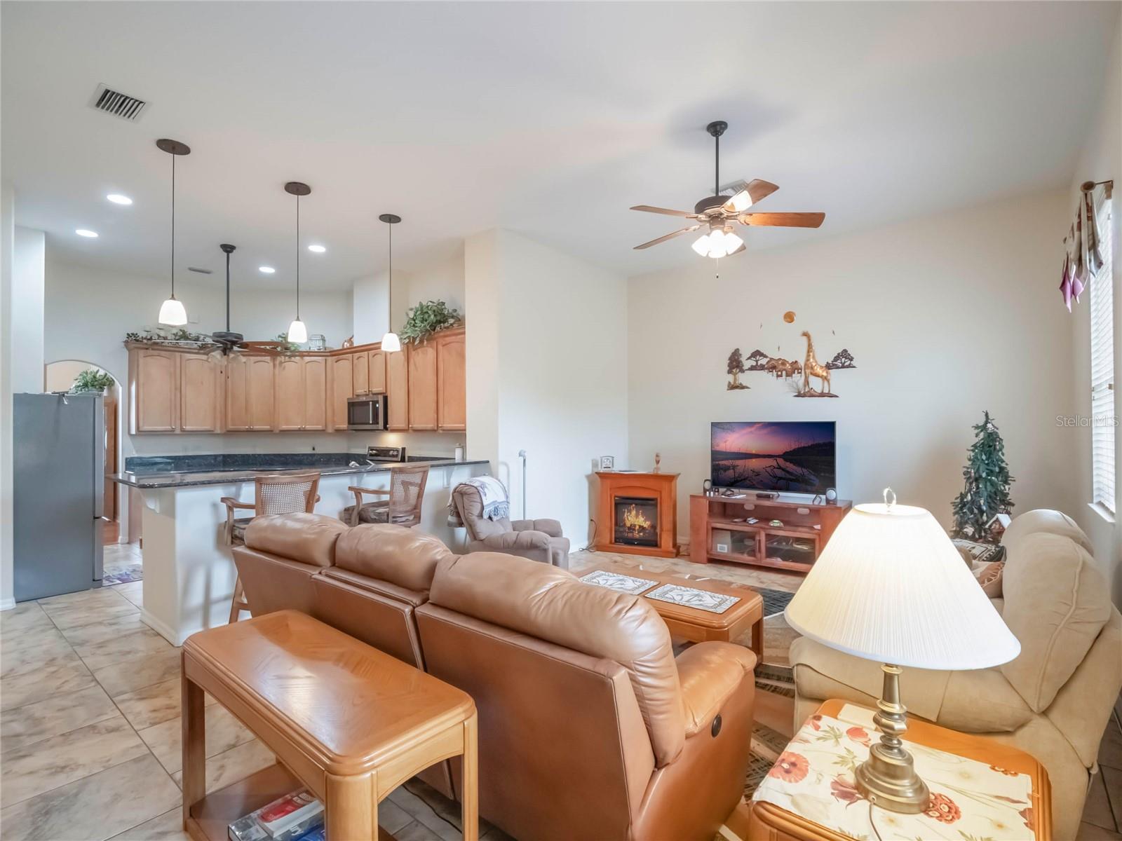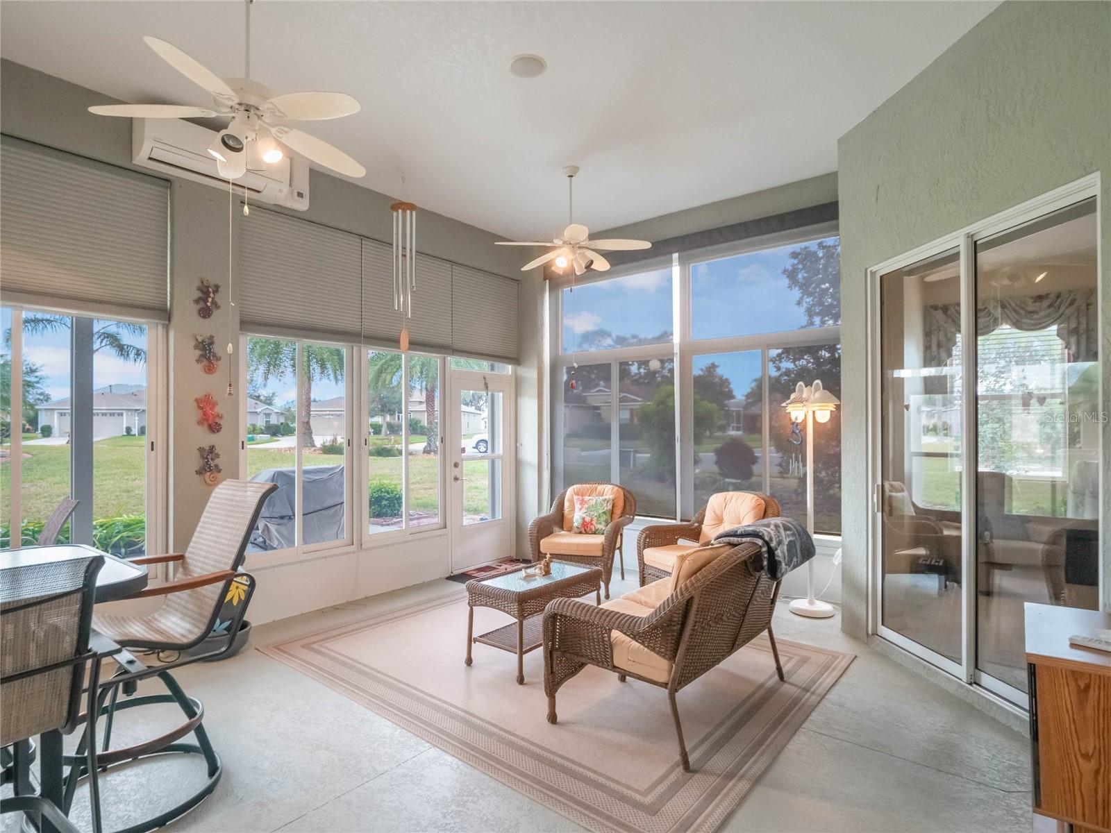 ***HUGE PRICE ADJUSTMENT***LEGACY OF LEESBURG ACTIVE ADULT COMMUNITY***This St Andrews floor plan is a 3 bedroom/2 bathroom home under 2271sf with an additional 432sf all-seasons room with 11.4ft ceilings and a minisplit to cool and heat for an additional living space. The home has a 2 CAR PLUS GOLF CART GARAGE!! ***ROOF REPLACED in 2023***AC REPLACED in 2019***APPLIANCES REPLACED in 2019***This is a very spacious home with 11.4ft ceilings in the main living areas and it sits on a oversized corner lot, with great curb appeal, BUT DON'T WORRY THE HOA COVERS LAWN CUTTING. The large kitchen is a dream come true, featuring updated stainless appliances, custom maple wood cabinetry, and plenty of counter space featuring gorgeous, elegant granite; you’ll love cooking and entertaining. All located in "nature-themed" Legacy, home to miles of walking trails, bike paths and acres devoted to conservation preserve. There's a full array of amenities, highlighted by a stunning beach entry heated pool, hot tub, softball field, great fitness center, arts & craft room, library, billiards and much more. The HOA fees include LAWN CUTTING, cable/internet/landline, RV/Boat storage and the wonderful amenities with lots of clubs, organized activities and events! This community is resort-style living at its best!!