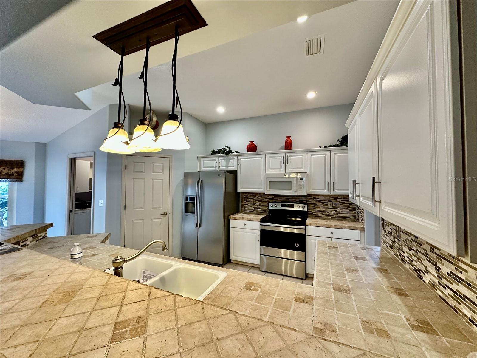 Welcome to the Silver Lake neighborhood of Chelsea Park! This stunning 4/2 split plan home within this highly sought-after neighborhood has been Lovingly cared for by an Internationally re-known Artist who has added special finishing touches to pass on to the new owners. There's lots of Curb Appeal with beautiful towering Italian Cypress trees, landscaping and a newly sodded lawn, front and back! The home has Four possible Bedrooms including a large room off of the entry-way with inviting French Doors perfect for use as a Studio, Office, Den or as a fourth Bedroom with the addition of an armoire. The Primary Bedroom has a walk-in California Closet and another large built-in closet as well as Double Vanities in the En-suite Bath. A large and airy living room affords plenty of space for entertaining. The well appointed kitchen boasts beautifully tiled countertops, a spacious pantry and adjoining Dining Room. The Florida Room has been enclosed with glass and screen windows and offers even more opportunity for great Florida Living. Relax outside on the large Screened Porch, overlooking a tranquil vinyl fenced backyard with newly sodded lawn, fruit trees, pavers and scenic landscaping. New roof in 2024! The Updated Lake Square Mall and lots of restaurants, professional offices and medical facilities are close by as well as the beautiful Silver Lake, a historical area, offering trails, tennis courts at the Leesburg State College and a Dog Park! All this just a 45 minute drive to Orlando and it's famed attractions and a little over an hour to our beautiful sugar-sand beaches! Schedule a showing today to see why Leesburg and Lake County are considered one of the top places to live in the U.S. Ideally located in-land yet with over 45,000 acres in the Lake Harris Chain of Lakes, where you'll find world-class fishing and boating in a fresh water system leading all the way to the Atlantic Ocean!....and much, much more!
