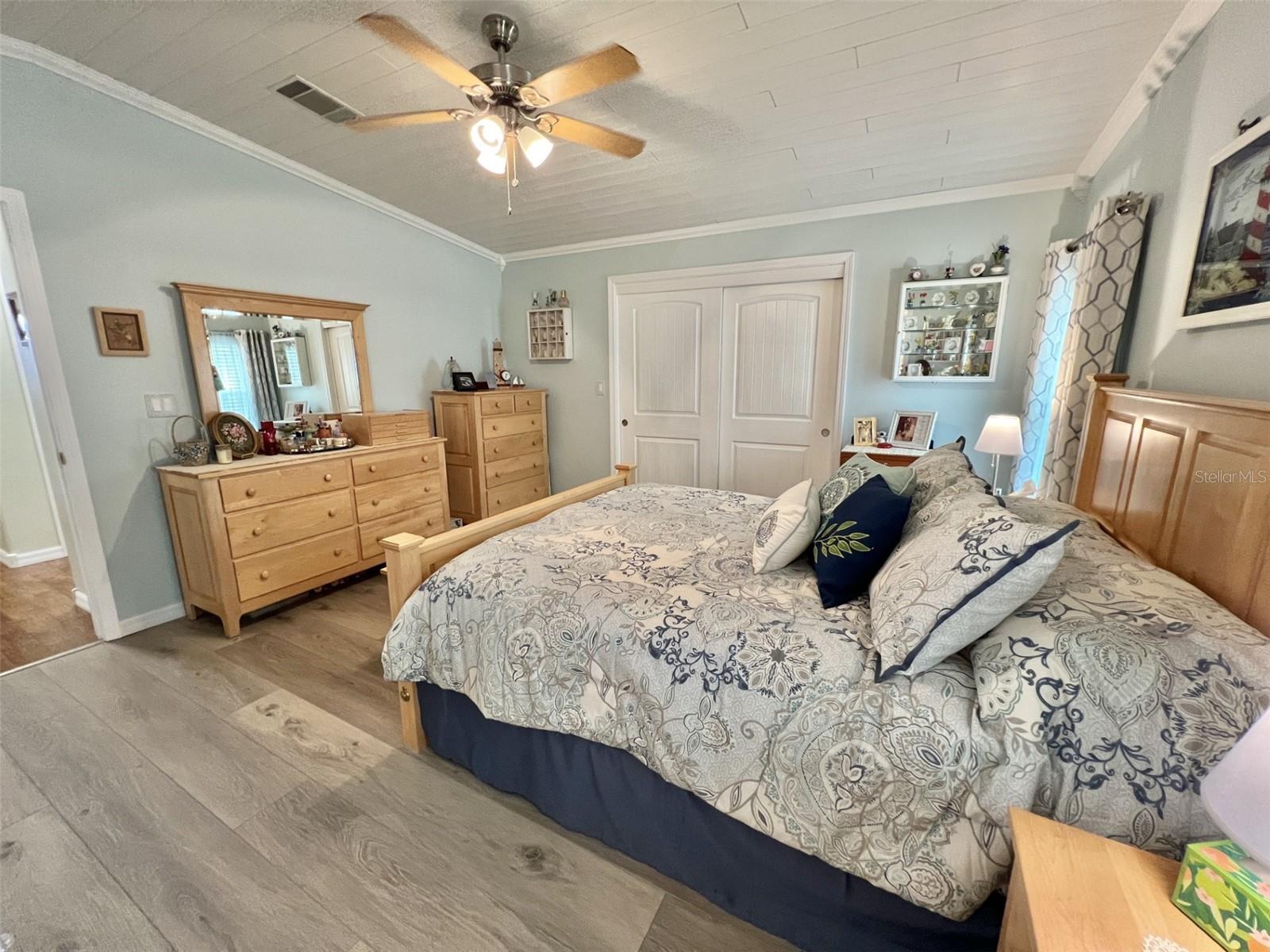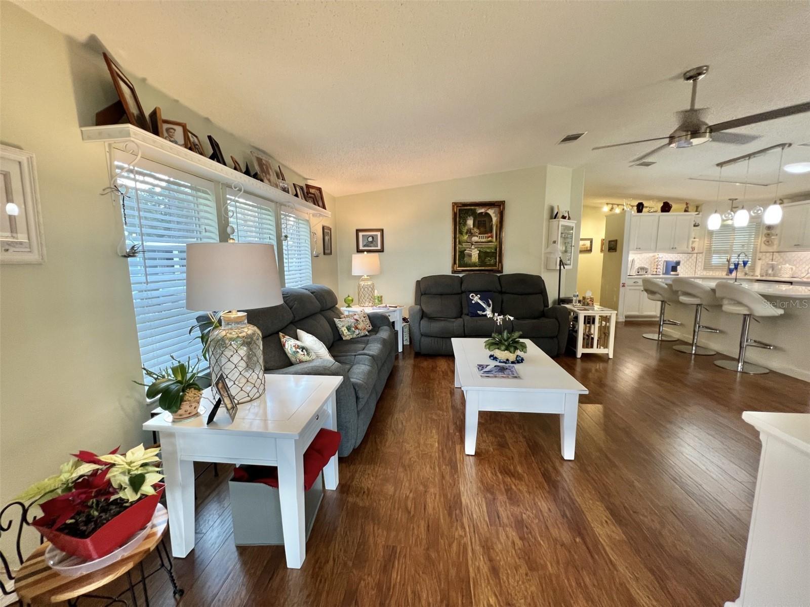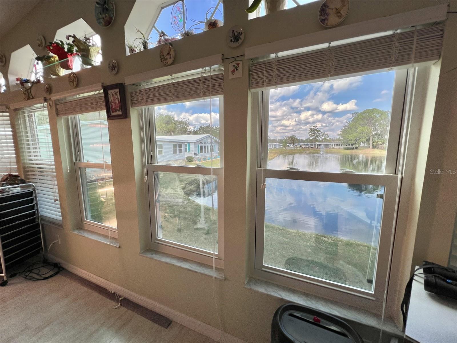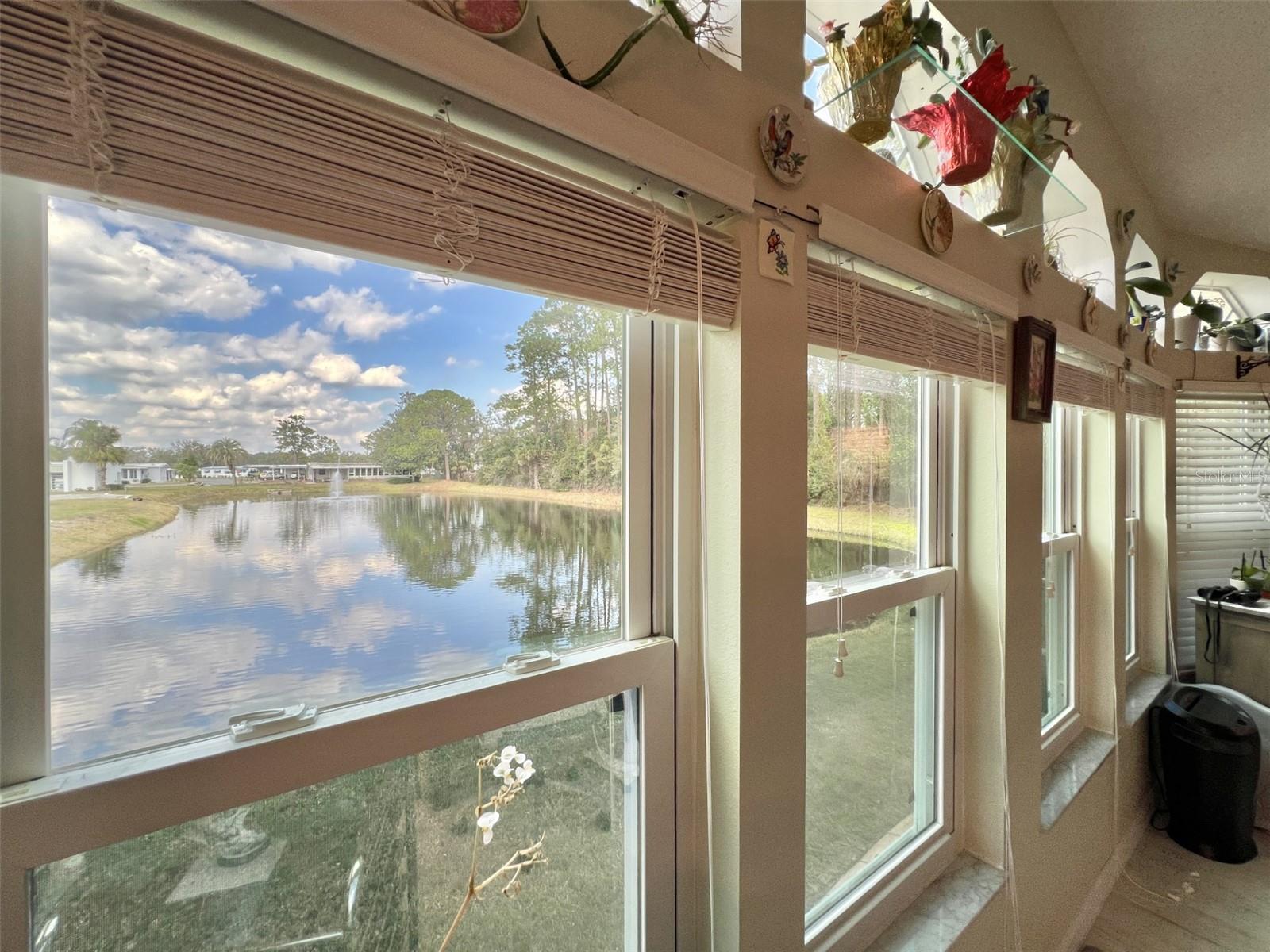 Exceptional home located on a tranquil cul-de-sac on Tamarisk Way, offering stunning and serene views of the lake! From the moment you step into the screened front porch and through the foyer, you’ll be welcomed by a beautifully upgraded kitchen designed to impress. The elegant quartz island and countertops are perfectly complemented by stylish pendant lighting, under-cabinet illumination, and a tasteful tiled backsplash. Solid Maple cabinets with pull-out shelves and soft-close drawers provide both functionality and sophistication. Stainless steel appliances, USB outlets, and LED lights enhance the space, making it as practical as it is beautiful. The home features a 2019 HVAC system and a 2017 water heater for added comfort and efficiency. The open floor plan seamlessly connects the kitchen to a spacious living room and large craft / hobby room, both with breathtaking views of the lake and woods. Stepping down from the craft room, is an enclosed storage room and a large 14 x 32 workshop. Additional highlights include a well-maintained rubber roof, Smart Core laminate and vinyl plank flooring throughout. The master bedroom features ceiling planks, as well as a generous amount of closet space. The updated master bath boasts an elegant walk-in shower, stylish cabinetry, and modern finishes..........Hawthorne at Leesburg is an active, resident owned, 55+ cooperative, waterfront, gated community, with beautifully landscaped grounds, lakes with illuminated fountains and a relaxing and comfortable gazebo. The affordable monthly maintenance fee of $346 includes water, sewer, lawn mowing, private emergency services and storage space for recreational vehicles, boats, trailers and much more! The beautiful clubhouse is complete with a full-time program coordinator, more than 100 different activities and seating for 550. It has a hospitality lounge, card rooms, craft rooms, billiard room, fitness center, library, fine arts room and many more. There is excellent fishing, outdoor geo-thermally heated pool and two enclosed therapeutic pools. Hawthorne boasts a private marina monitored by an electronic security system with over 120 boat slips and access to the Harris Chain of Lakes and beyond.
