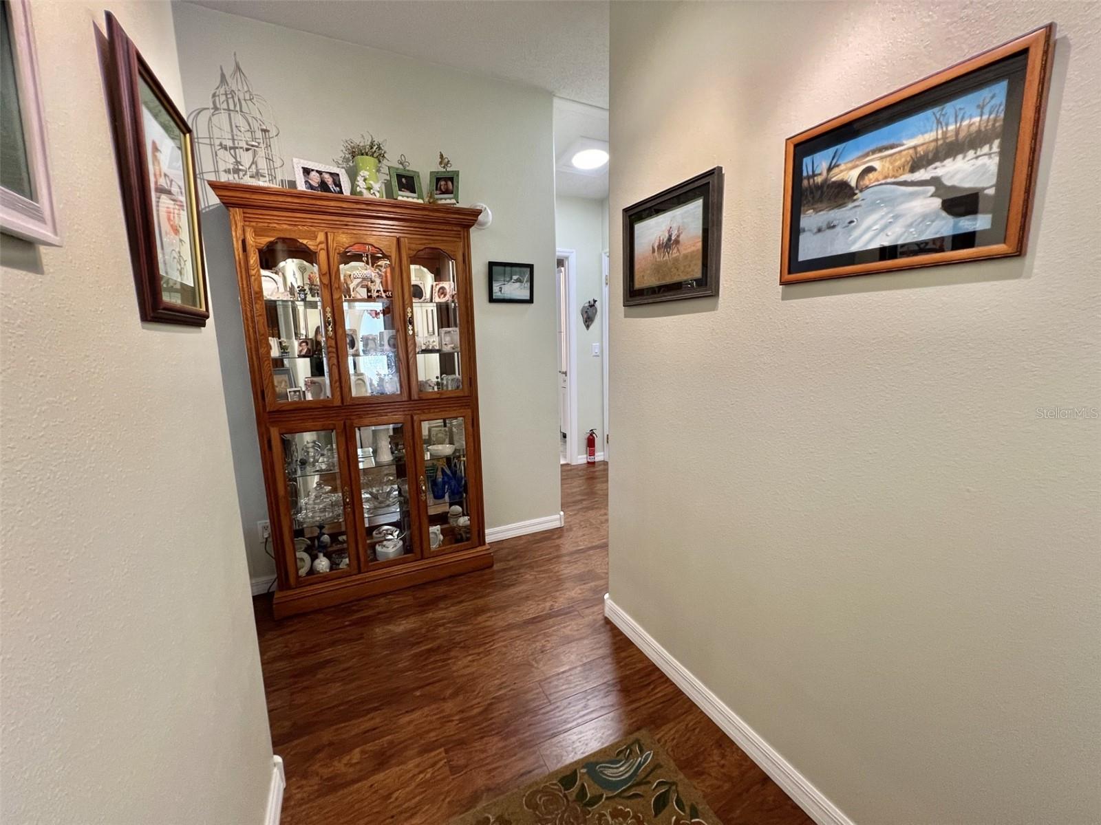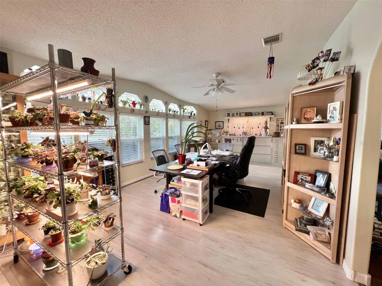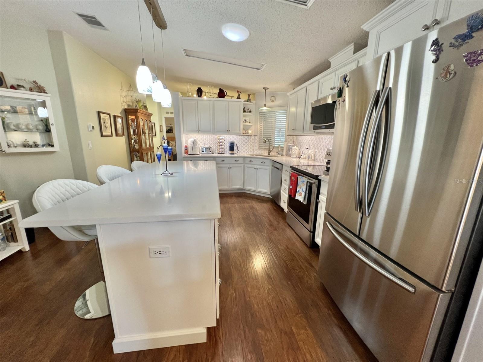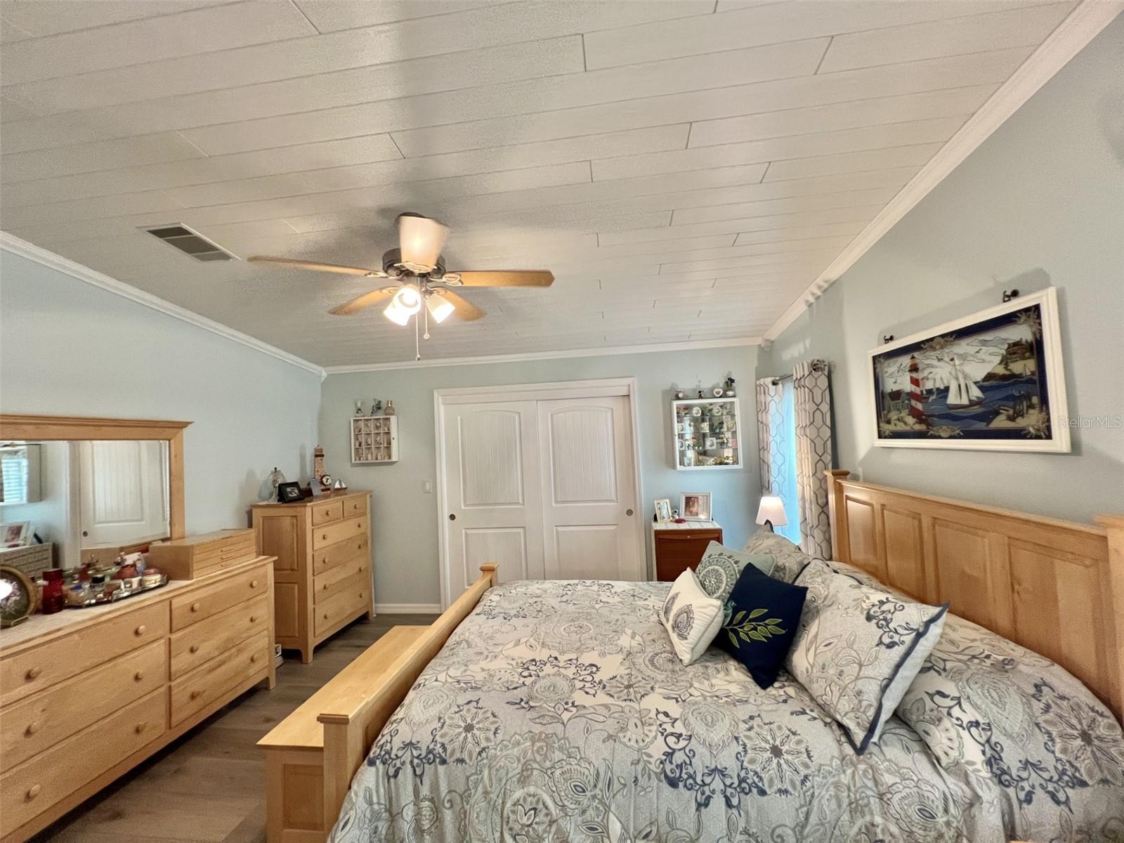 Exceptional home located on a tranquil cul-de-sac on Tamarisk Way, offering stunning and serene views of the lake! From the moment you step into the screened front porch and through the foyer, you’ll be welcomed by a beautifully upgraded kitchen designed to impress. The elegant quartz island and countertops are perfectly complemented by stylish pendant lighting, under-cabinet illumination, and a tasteful tiled backsplash. Solid Maple cabinets with pull-out shelves and soft-close drawers provide both functionality and sophistication. Stainless steel appliances, USB outlets, and LED lights enhance the space, making it as practical as it is beautiful. The home features a 2019 HVAC system and a 2017 water heater for added comfort and efficiency. The open floor plan seamlessly connects the kitchen to a spacious living room and large craft / hobby room, both with breathtaking views of the lake and woods. Stepping down from the craft room, is an enclosed storage room and a large 14 x 32 workshop. Additional highlights include a well-maintained rubber roof, Smart Core laminate and vinyl plank flooring throughout. The master bedroom features ceiling planks, as well as a generous amount of closet space. The updated master bath boasts an elegant walk-in shower, stylish cabinetry, and modern finishes..........Hawthorne at Leesburg is an active, resident owned, 55+ cooperative, waterfront, gated community, with beautifully landscaped grounds, lakes with illuminated fountains and a relaxing and comfortable gazebo. The affordable monthly maintenance fee of $346 includes water, sewer, lawn mowing, private emergency services and storage space for recreational vehicles, boats, trailers and much more! The beautiful clubhouse is complete with a full-time program coordinator, more than 100 different activities and seating for 550. It has a hospitality lounge, card rooms, craft rooms, billiard room, fitness center, library, fine arts room and many more. There is excellent fishing, outdoor geo-thermally heated pool and two enclosed therapeutic pools. Hawthorne boasts a private marina monitored by an electronic security system with over 120 boat slips and access to the Harris Chain of Lakes and beyond.