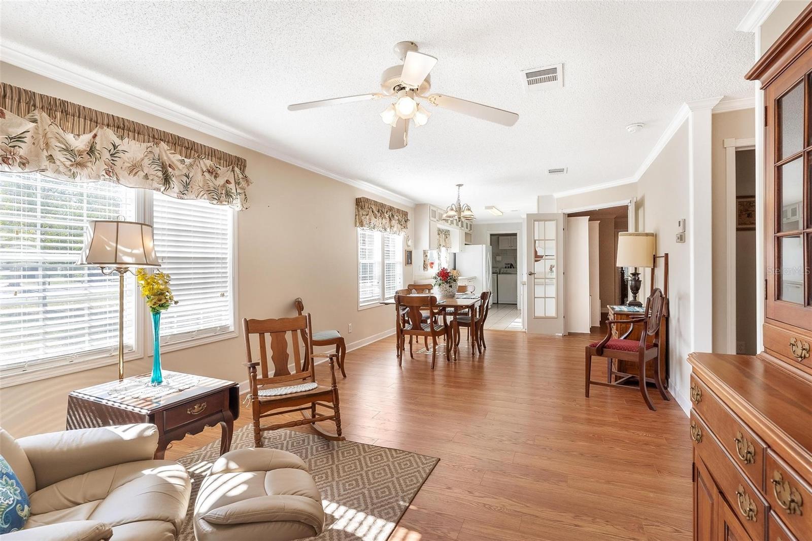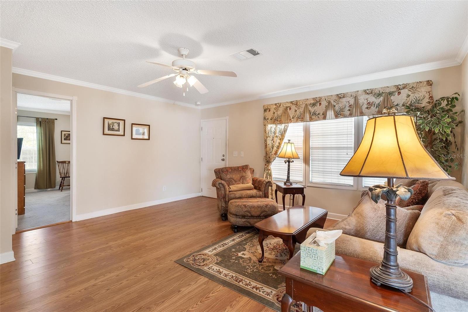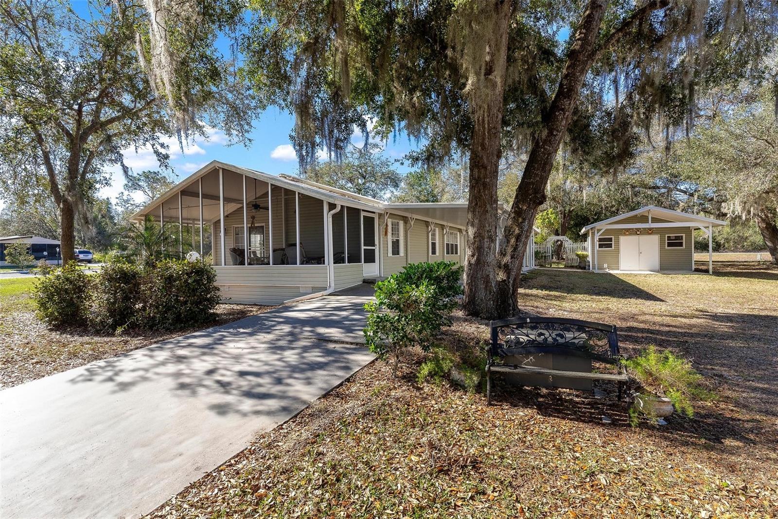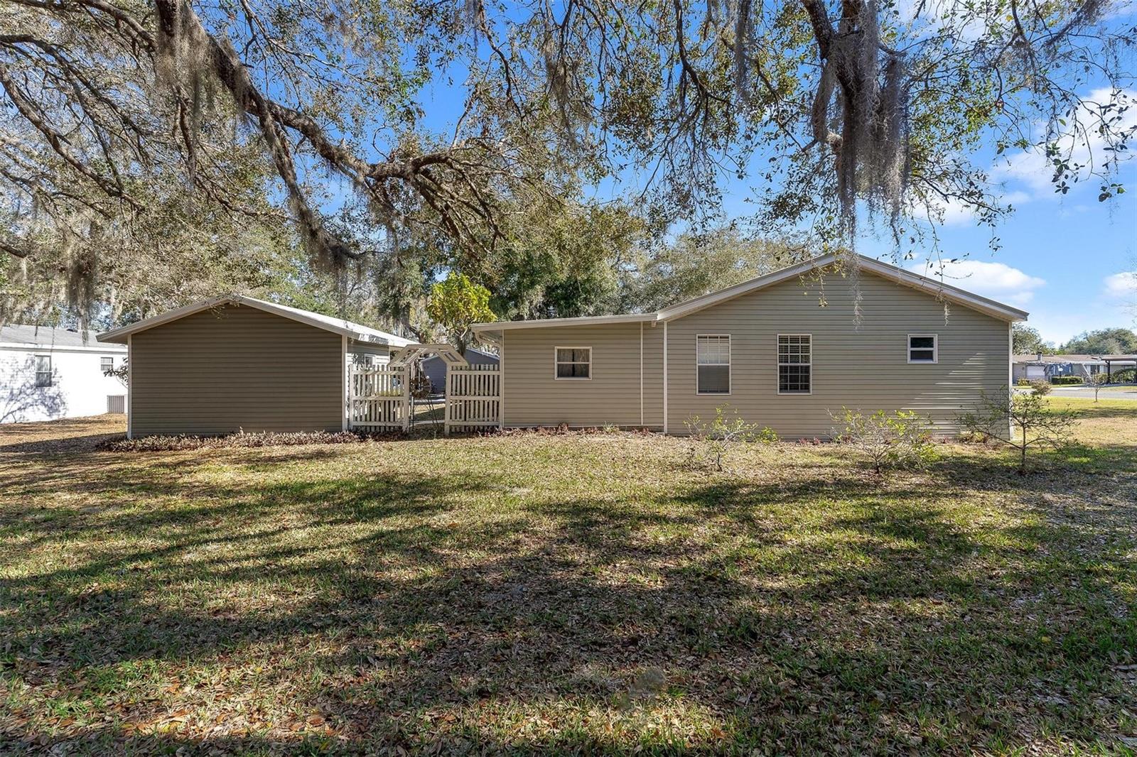 Welcome home to Lake Yale Estates—a charming community nestled along the scenic shores of Lake Yale! Whether you're searching for a year-round retreat or a cozy winter getaway, this turnkey 3-bedroom, 2-bath home is the perfect find. Everything in the home stays! Sitting on a desirable double lot with a newer roof and offering just over 1,400 sq. ft. of living space, all that’s missing is you (and maybe your toothbrush)! As you arrive, you'll be welcomed by a picturesque canopy of oak trees, leading you to the spacious double carport. Step inside, and you’re greeted by a warm and inviting family room, complete with laminate wood flooring and a thoughtfully designed split floor plan. The primary suite, just off the family room, features a walk-in closet and a private bathroom with dual vanities and a walk-in shower—a perfect retreat at the end of the day. A set of French doors leads from the family room into the galley-style kitchen, a dream for entertaining with its pantry, ample counter space, and picturesque window overlooking the outdoors. The kitchen flows seamlessly into the dining and living areas, both filled with natural light thanks to abundant windows and the same beautiful laminate flooring. You'll also find bedrooms 2 and 3, along with a convenient guest bathroom featuring a tub/shower combo. Love the outdoors? Imagine sipping your morning coffee on the screened-in patio with soaring vaulted ceilings, enjoying the peaceful surroundings. Need extra storage? You’re covered with a shed under the carport and an additional detached shed/workshop. AND HERE'S A BONUS—this double lot offers exciting income potential! Consider selling the extra lot down the line or building a second home to use as a rental—ideal for generating additional revenue or hosting extended family. Beyond your doorstep, Lake Yale Estates offers resort-style amenities, including monthly planned activities, a heated swimming pool, community center, shuffleboard courts, a fishing pier, RV/boat storage, a fire pit overlooking a sandy beach, and direct lake access! This golf cart-friendly community even includes lawn maintenance in your monthly HOA fee. And let’s talk location—you’re just 20 minutes or less from Downtown Mount Dora, Tavares, and Eustis, offering endless options for shopping, dining, and entertainment. Don’t miss this opportunity to own a piece of paradise with added investment potential! Call today to schedule your private showing before it’s gone!