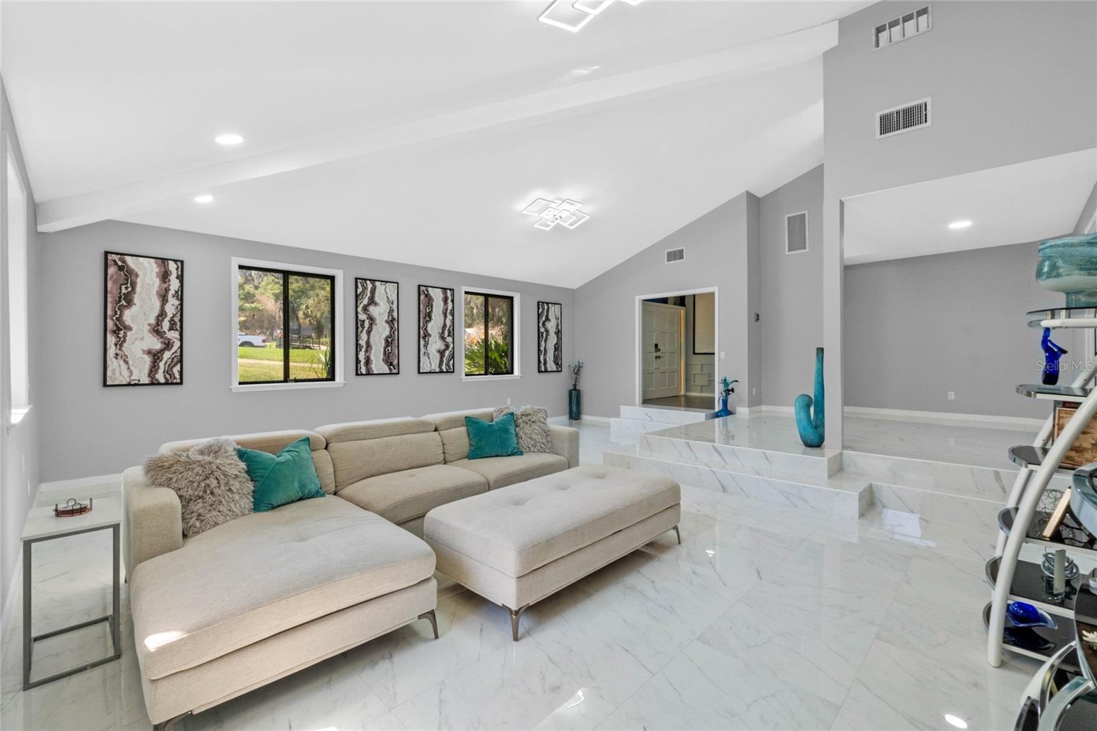 One or more photo(s) has been virtually staged. PRICE IMPROVEMENT!! Welcome to this beautifully updated 4-bedroom, 2.5-bathroom 2 story home, just under 4,000 square feet, located near the end of a peaceful cul-de-sac. This home presents a perfect fusion of coziness, sophistication, and accessibility, with Lake Harris water views from the balcony, fostering a soothing and serene ambiance. As you step inside, you'll notice the thoughtful updates throughout, including gorgeous porcelain tile and LVP flooring—no carpet here! With a newer roof installed in 2019, you can rest easy knowing this home is in excellent condition. The expansive living spaces feature an open living and dining room and a family room complemented by a cozy wood-burning fireplace. Cathedral ceilings add a bright, airy, and open feel to the space. The chef’s kitchen is a true highlight, complete with a spacious island for food prep, newer stainless-steel appliances (including a double oven), butcher block counters and ample cabinet space to meet all your culinary needs. The versatile bonus rooms offer endless possibilities, whether you need space for an office, playroom, or multi-generational living. Step outside to your generous backyard, offering the perfect retreat with room for a pool, plus your very own avocado and orange trees for fresh fruit at your fingertips. The well-maintained landscaping thrives year-round thanks to a separate well for irrigation, lowering your water bill. A workshop/shed with power is also included, perfect for DIY projects or extra storage. There's plenty of parking space for your boat or RV. Location, Location, Location: Located just minutes from a public boat launch on Lake Harris, you’ll have access to the sought-after Chain of Lakes—perfect for water enthusiasts. This home is also conveniently situated with quick access to major highways, putting you equidistant to both coasts and near all the major attractions Central Florida has to offer. Best of all, there are NO HOA fees or restrictions, giving you the freedom to enjoy your property to the fullest. Don’t miss the chance to make this exceptional home yours, with water views and a prime location. Schedule your private tour today!