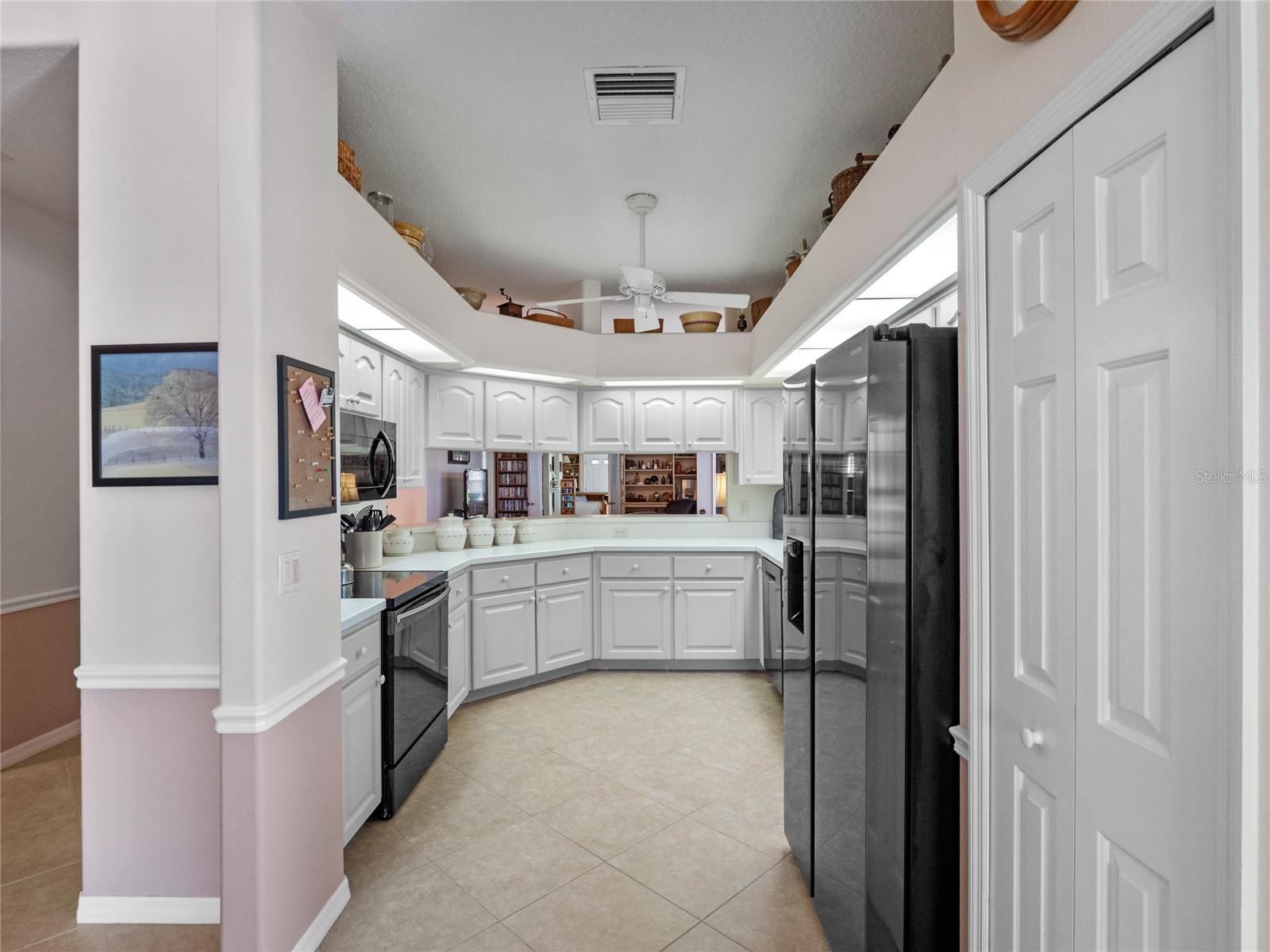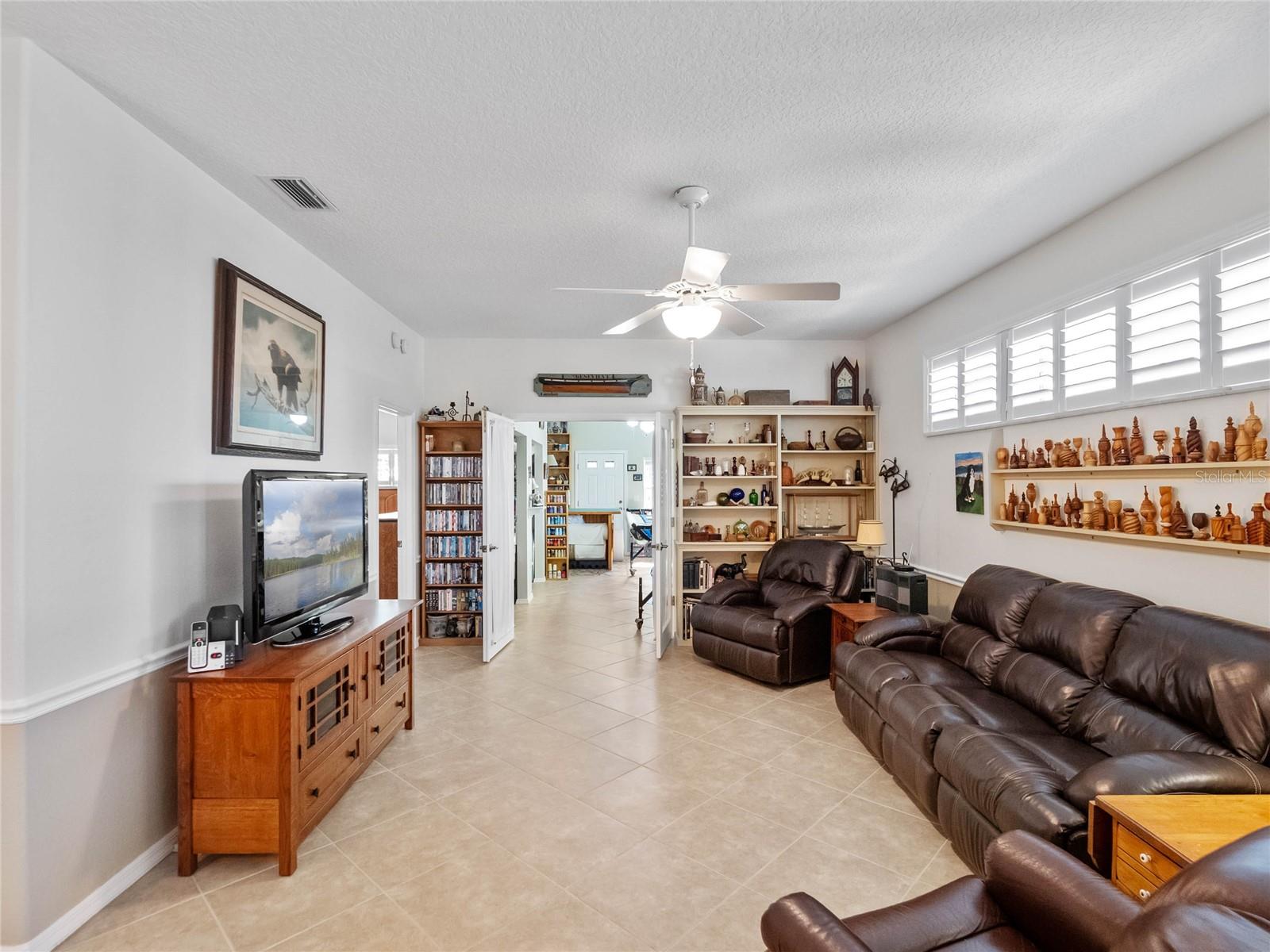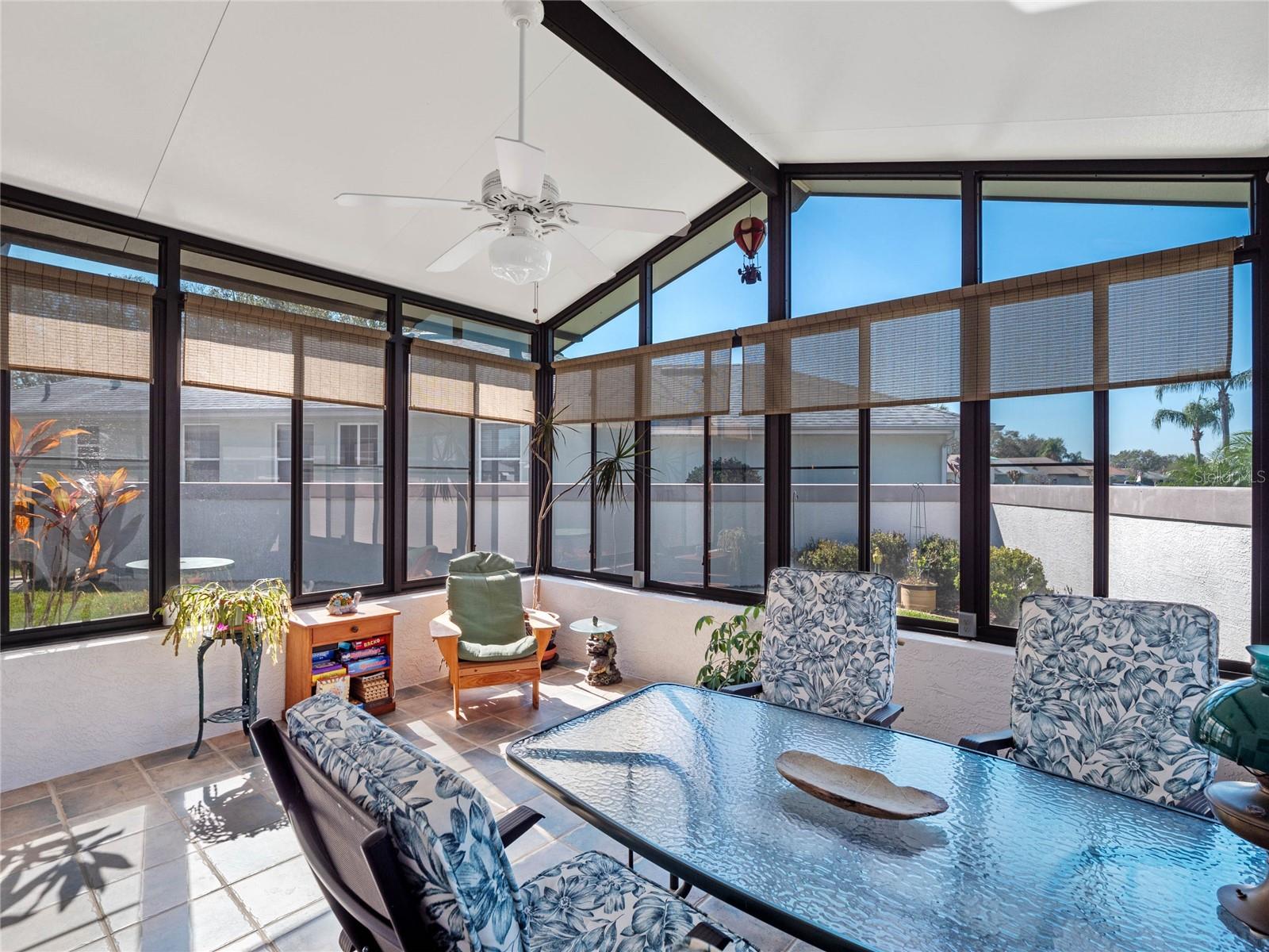 BRAND NEW ROOF & GUTTERS! A unique corner lot property with privately fenced courtyard, gorgeous 4-season Florida Room with mini-split air conditioning, and a bonus room (currently used as a sewing suite) that could be a 4th bedroom, den, a crafters paradise, or game room! You get to make this space exactly what you want! This additional space is behind French Doors and has tons of closet space, access to the backyard, and lots of natural light! Boosted with heat & air to keep you as cool or as warm as your heart desires. Upon arrival, you’ll adore the home’s curb appeal with side-entry garage, lovely landscaping & walk paths, CBS construction including a enclosed courtyard for furry friends’ safety & your privacy. This home was not only modified, but expanded, lending you three full bedrooms and nearly 2200 square feet of living space. You’ll have so many favorite areas of this home, you’ll quickly see it’s the perfect fit for you and your family. The unique features begin with the gorgeous porcelain tile floors and the details the installer gave to the entry. Inside the kitchen, you’ll find updated stainless-steel appliances (2019, 2024), tons of cabinets as well as a pantry and a 2025 Kinetico Water Softener with reverse osmosis. Offering both casual and formal dining areas, you’ll make many memories breaking bread with visiting family and friends. The laundry room is equipped with a gas dryer and an extra refrigerator and freezer! A great place to store cold drinks and ice cream! The office has a conveying Murphy Bed, beautiful guest bathroom with newly tiled floors, and an additional third bedroom. The main living area has built-ins for displaying your favorite treasures, Plantation Shutters, chair rail, and access to the Florida Room. The On-Demand hot water at the primary bathroom sink makes life grand! Inside the large Owner’s Suite, you’ll suddenly feel a sense of peace and tranquility. This primary bedroom has a walk-in closet, ensuite bathroom with dual vanity, step-in shower with epoxy coating and new laminate floors. It’s all about the details and this home doesn’t miss a single one! Meticulously maintained and cared for-this home is as neat as a pin! Royal Highlands offers tons of clubs and activities to its residents. Softball, pickleball, tennis, bocce, and shuffleboard to name a few! The Recreation Center is equipped with a fitness center, two pools, craft rooms, library, and billiards room. The Monarch Golf Club has a full-service restaurant on campus, pro shop, driving range, and putting green. Come try the golf course out and play 18 holes while you enjoy your best life in Central Florida’s 55+ premier community of Royal Highlands. The Great Hall hosts monthly dances, theater productions, group fitness classes, live entertainment and more! Conveniently located in Lake County with nearly 1500 named lakes! Close to MCO, Disney, shopping and medical facilities. Now is your chance to own your slice of heaven!