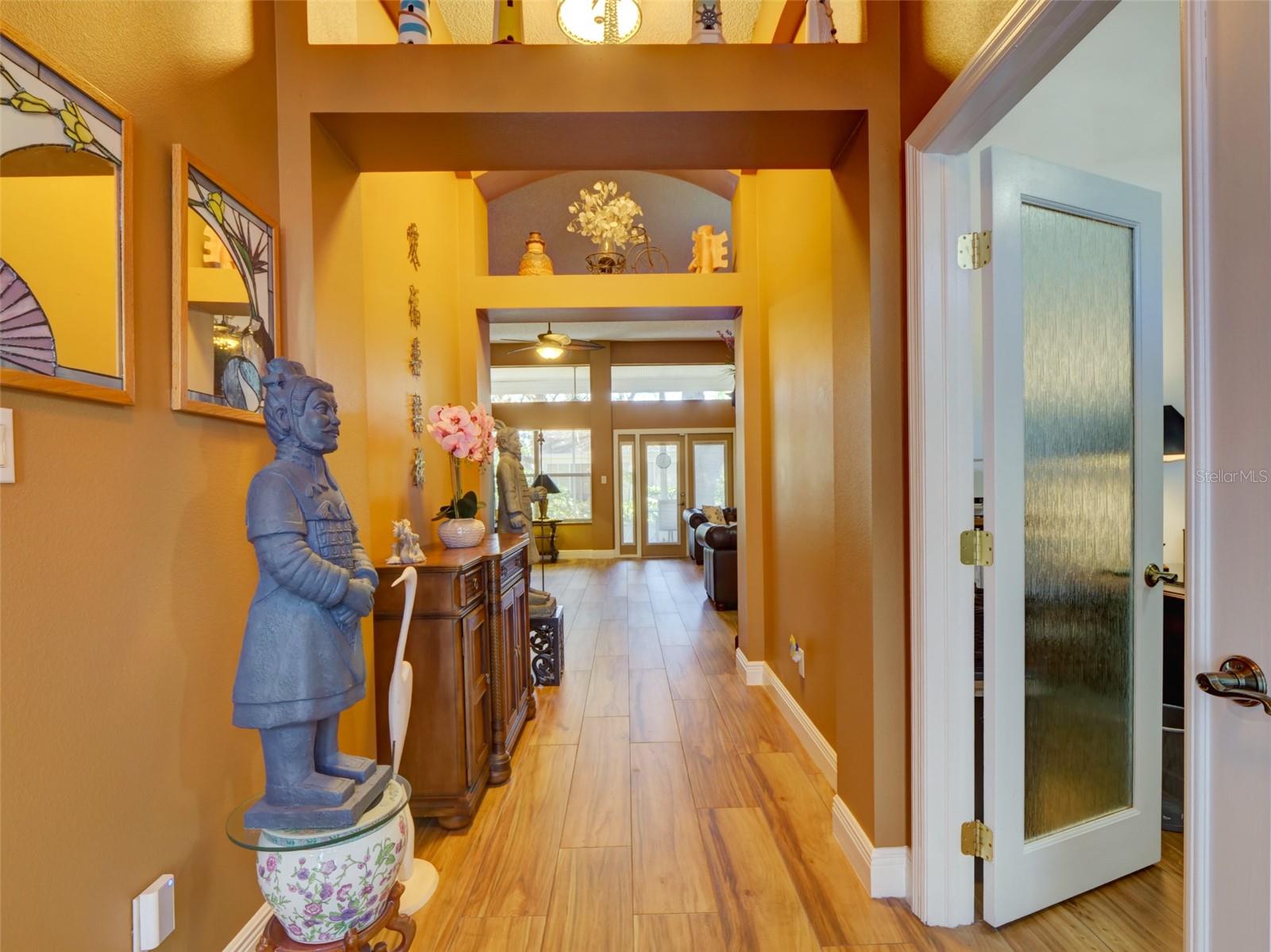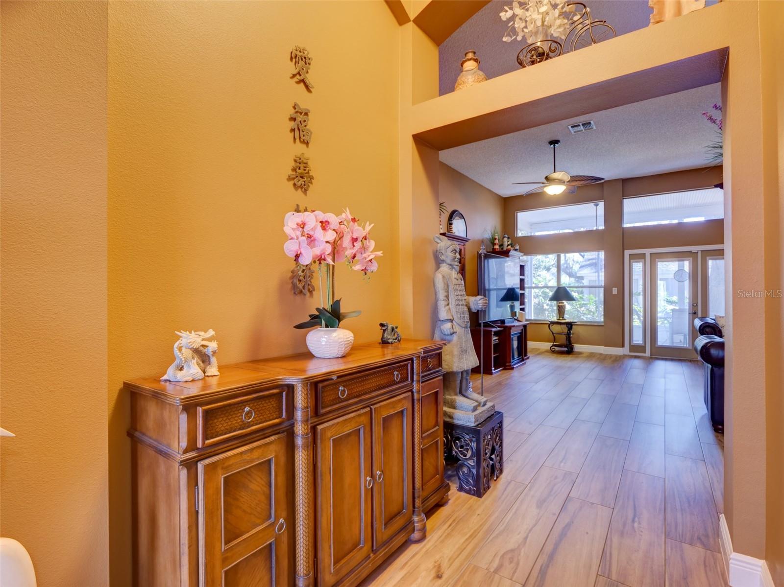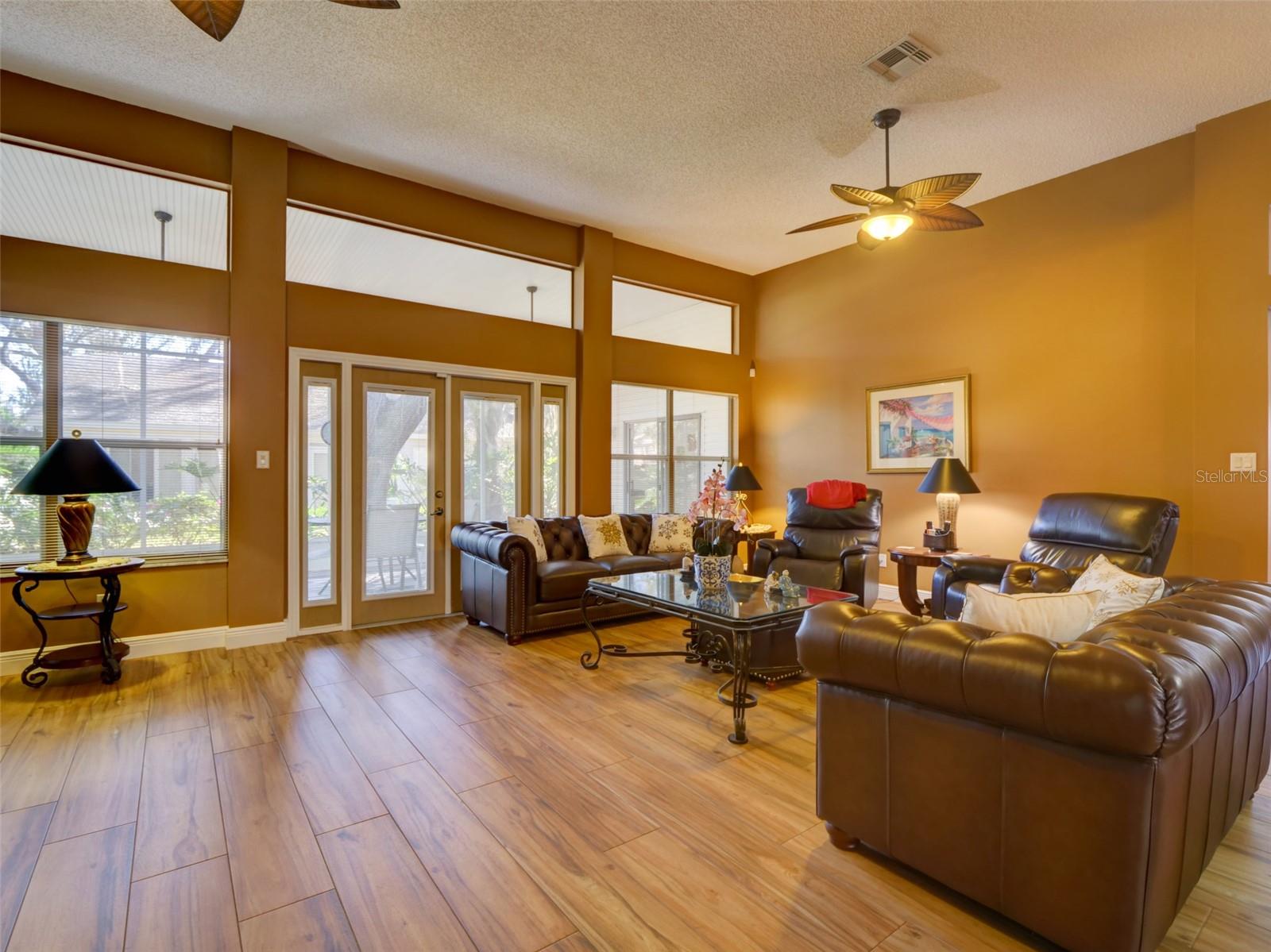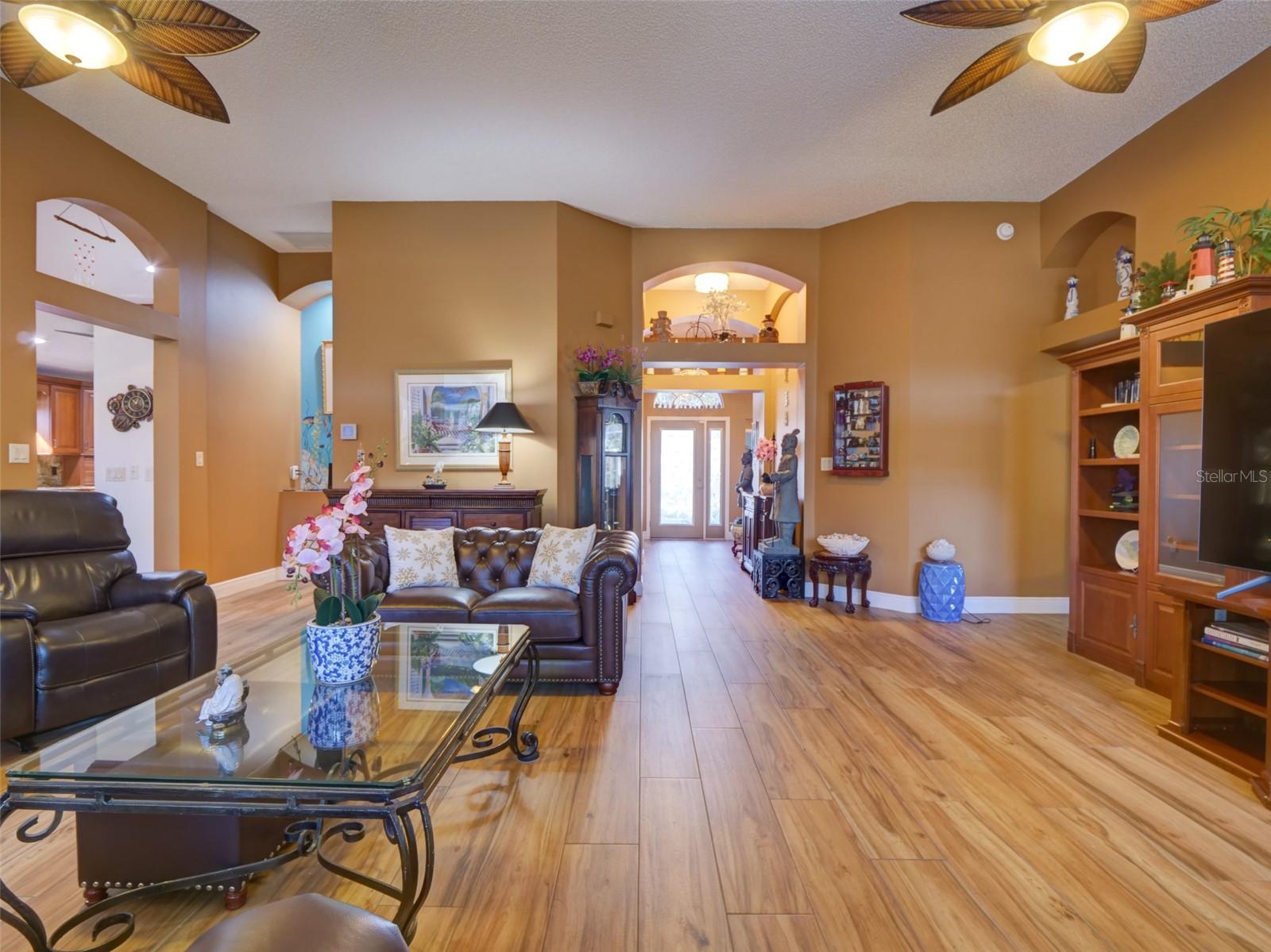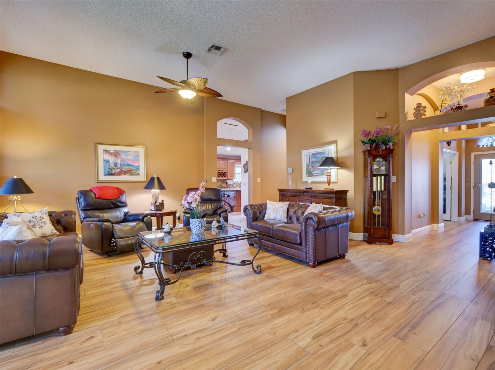 This 2,868 sqft, meticulously-kept custom SPLIT FLOOR PLAN home offers 2 Primary Suites, a 3rd Bedroom with a bonafide built-in closet, 2-1/2 Custom Bathrooms, and a dedicated OFFICE with double privacy glass doors & built-in shelving. Upon entering, you’ll appreciate the high ceilings and Foyer's custom arches, which lead into an expansive Living Room with multiple tall windows, allowing for an abundance of NATURAL LIGHT. The expansive DINING AREA adjoins the CUSTOM KITCHEN which has GRANITE countertops, slide-out shelves in the cabinets, New Dishwasher, New Glass Cook Top, Newer Appliances, built-in Wine Cooler and an over-sized PANTRY. A 12’x14’ Room, with access to the Lanai, creates a comfortable environment for playing cards or reading a good book. The spacious Primary Bedroom #1, with tall ceilings, has an oversized walk-in closet, and a CUSTOM BATH with WALK-IN SHOWER and soaker tub. Primary Bedroom #2 and Bedroom #3 share a custom Jack & Jill Bath with dual vanities and an upgraded step-in shower. The inside Laundry Room has cabinets and a laundry basin. The 12’x26’ SCREENED & COVERED LANAI has Chattahoochee Stone Flooring that has been painted to reduce maintenance. ROOF 2020. WATER HEATER 2017. HVAC 2012 serviced bi-annually. The Plantation at Leesburg is an access-controlled, 55+ community with a low monthly HOA fee, two golf courses, restaurant & tavern, tennis courts, pickleball courts, softball field, 3 swimming pools, 3 club houses, 2 exercise rooms, fishing pier, secure RV & boat storage, and many more amenities. Close to shopping, medical facilities and main roads. You do not have to be 55 yrs old to live here! Equal Opportunity Housing. Easy To Show!