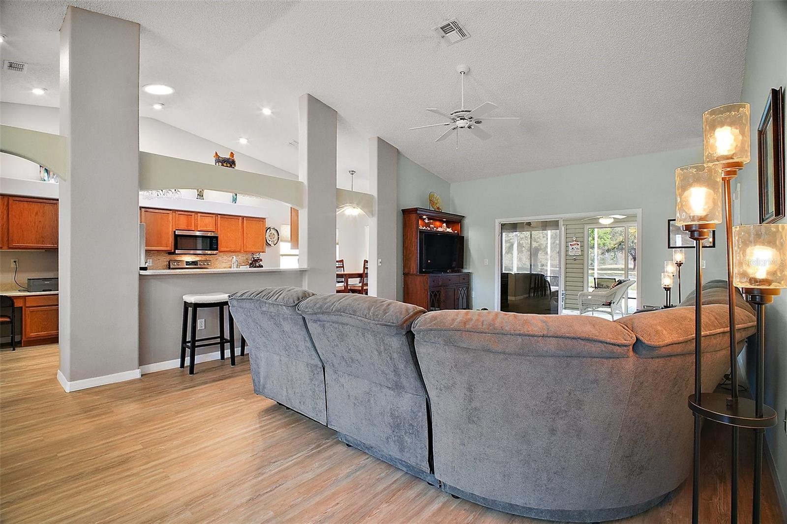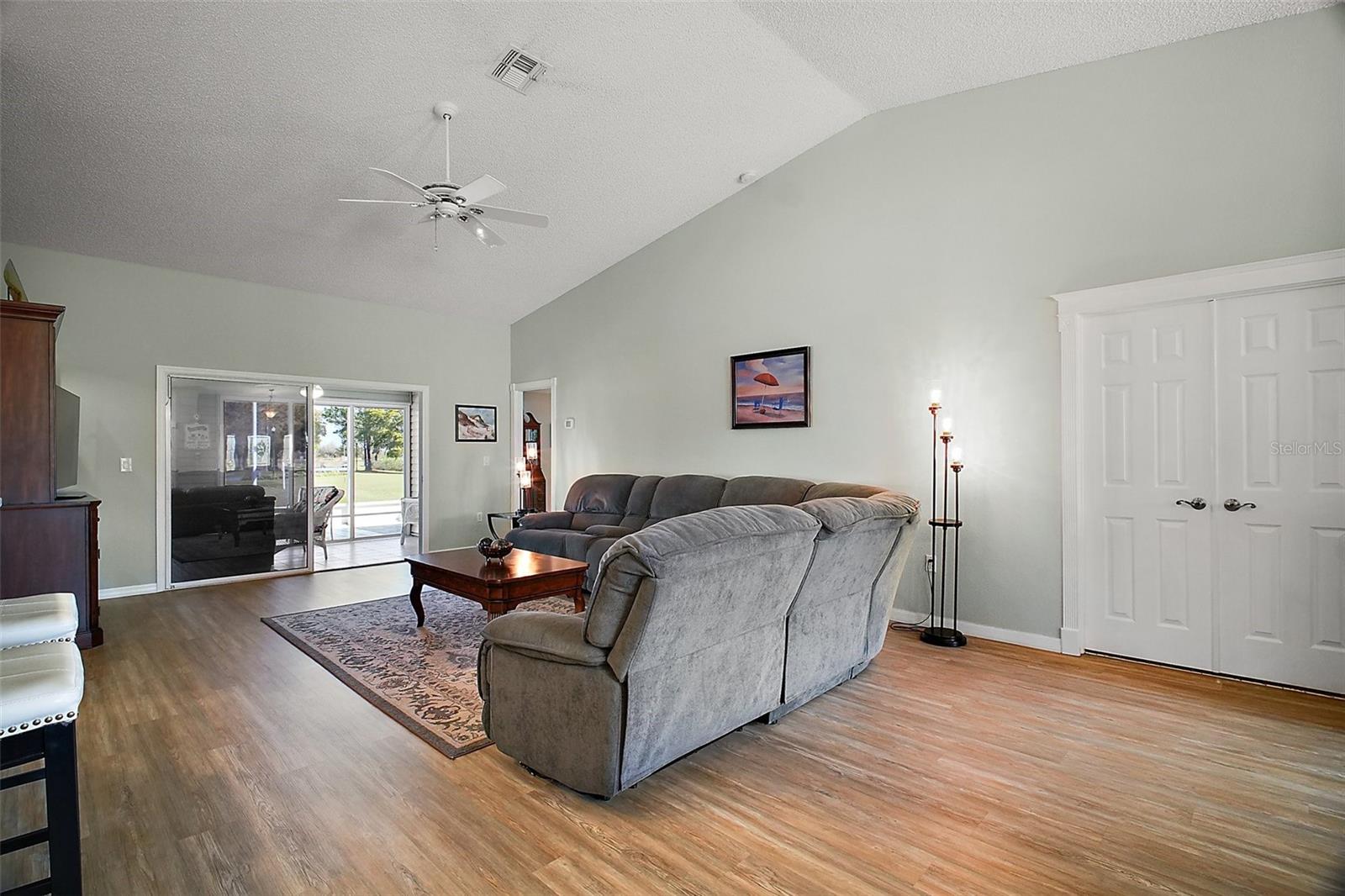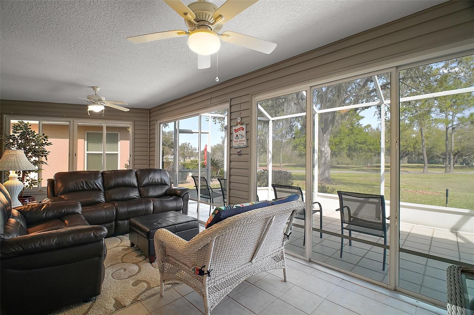 WELCOME TO PENNBROOKE!! Pennbrooke Fairways is just 10 minutes south of The Villages and only 50 minutes away from Orlando, Florida. Pennbrooke is centerally located Tampa, and Daytona, Mt Dora...its just the perfect location. The Pennbrooke Fairways golf course offers golfers two executive nines and one regulation nine to appeal to all skill levels while offering a fun, challenging yet fair, golf experience. Pennbrooke offers RV and Boat Storage with Dump and Wash Stations & 24 hour Gated Security, hair salon, Real Estate Office, two pools, clubhouse, pickle ball courts, tennis, two Recreation Centers, Fitness Center and many clubs and activities. The Pennbrooke HOA provides lawn cutting, cable and internet. Mere minutes from the pool and recreation center! NO CDD FEES!!! Just a few short minutes from the Villages Brownwood Square which has shopping, movie theater, entertainment and restaurants. This truly is a wonderful 55 plus community and a special home. THIS HOME IS A MUST VISIT!!!! For those looking for a golf cart garage....GOT THAT HERE!!! NEWER ROOF 2021, HVAC 2019!!! The curb appeal JUST FLAT OUT STUNNING!!!! Manicured with gorgeous LANDSCAPING features!!! A MUST MENTION AGAIN....JUST STUNNING LANDSCAPING!! Check out the creative decorative stone work, gorgeous!!!!! A RARE FIND!!!!The walkway leads to a front porch that showcases a gorgeous LEADED-GLASS DOOR. As you enter this home you will be impressed with the open floor plan, VAULTED CEILINGS, and beautiful FLOORING in the main living area. Kitchen offers Stainless Steel Appliances, backsplash and plenty of cabinets! Inside Laundry with more than ample storage space!!! Enclosed Lanai, birdcage that offers hours of enjoyment to watch golf at a distance and the stunning water view and all the nature has to offer!!!! This truly is a wonderful 55 plus community and a special home. DO NOT DELAY!!! PICTURES ONLY BEGIN TO TELL THE STORY, THIS IS A MUST VISIT!!!!EXPECT THE UNEXPECTED!