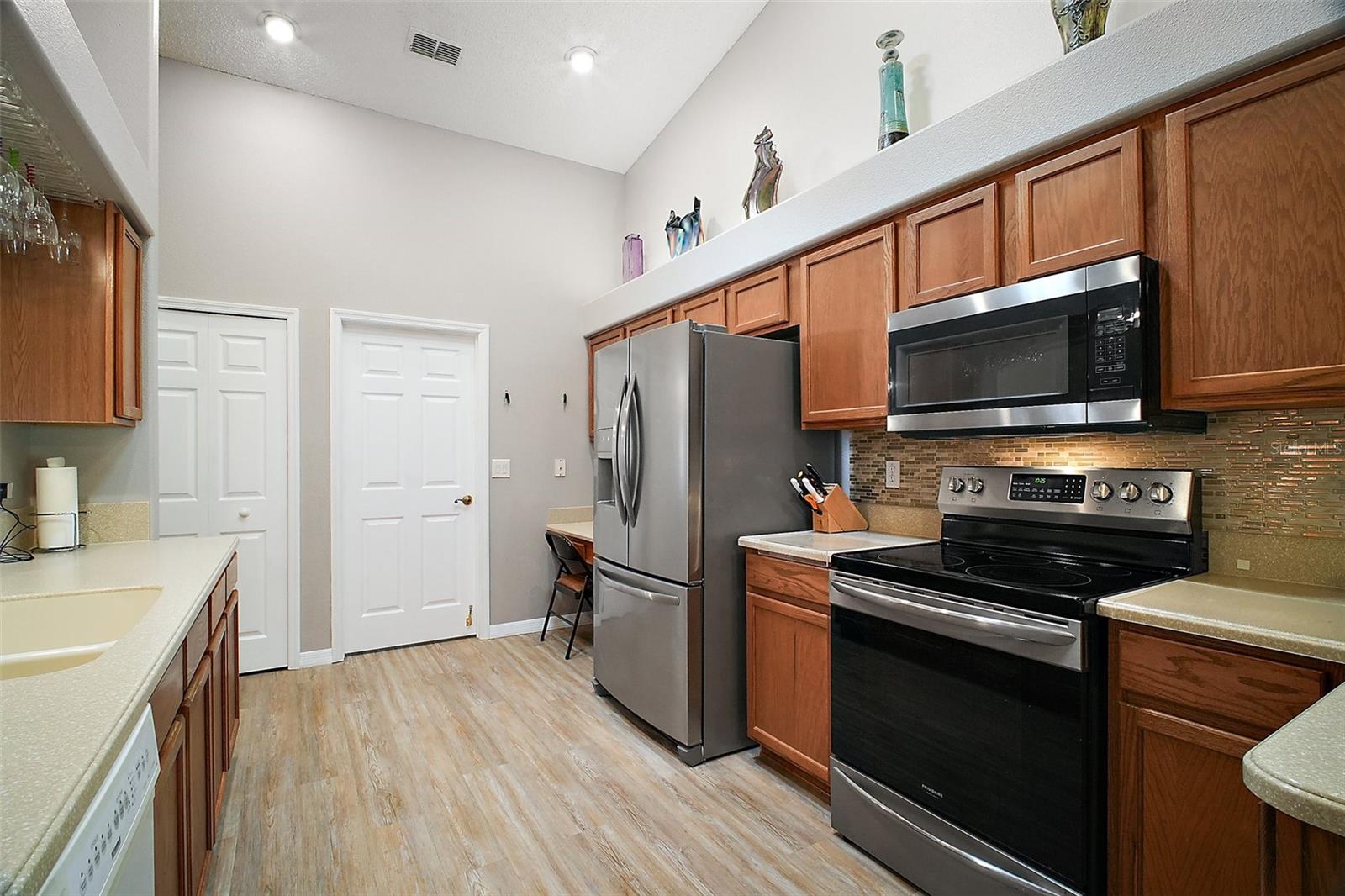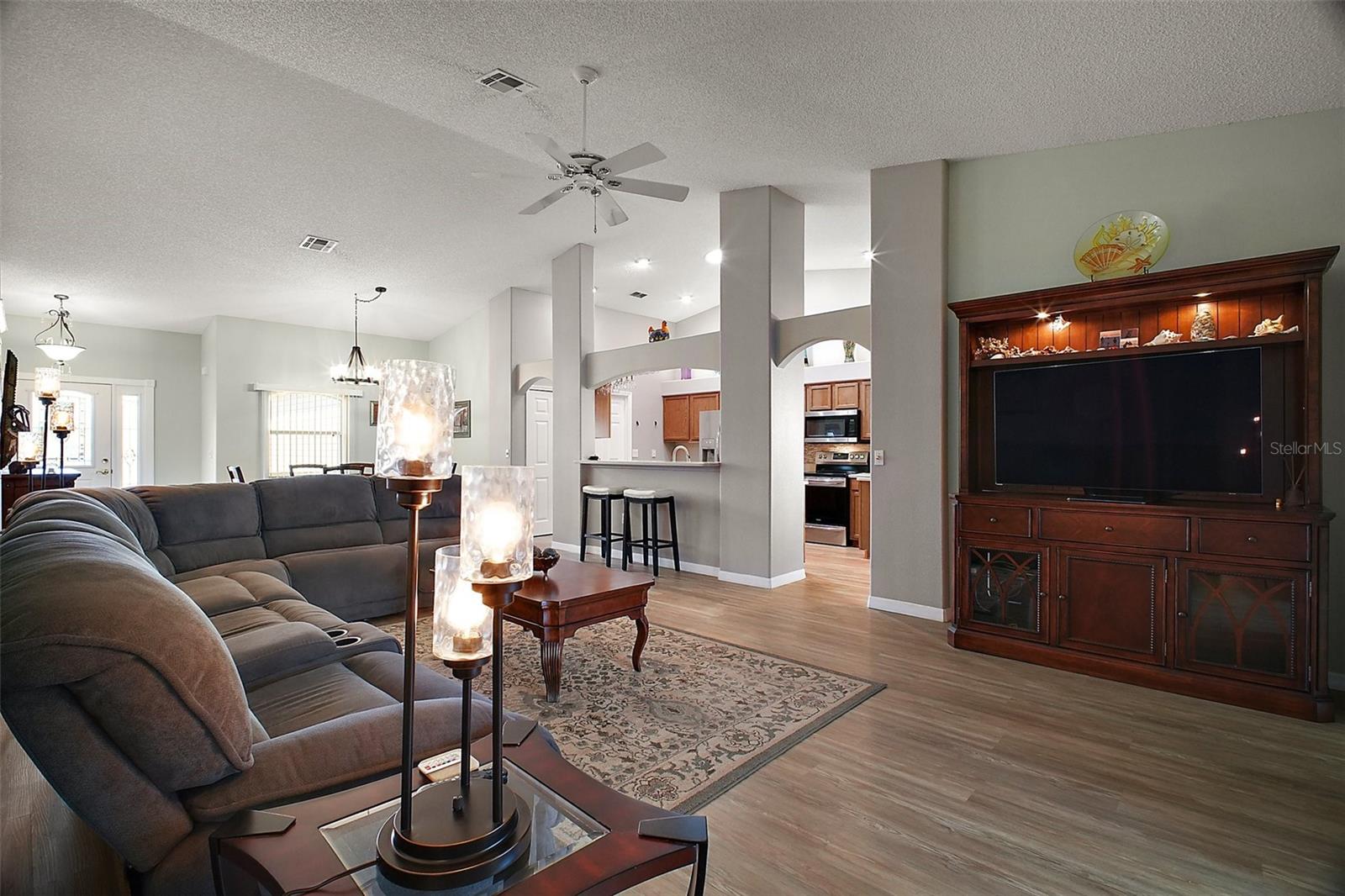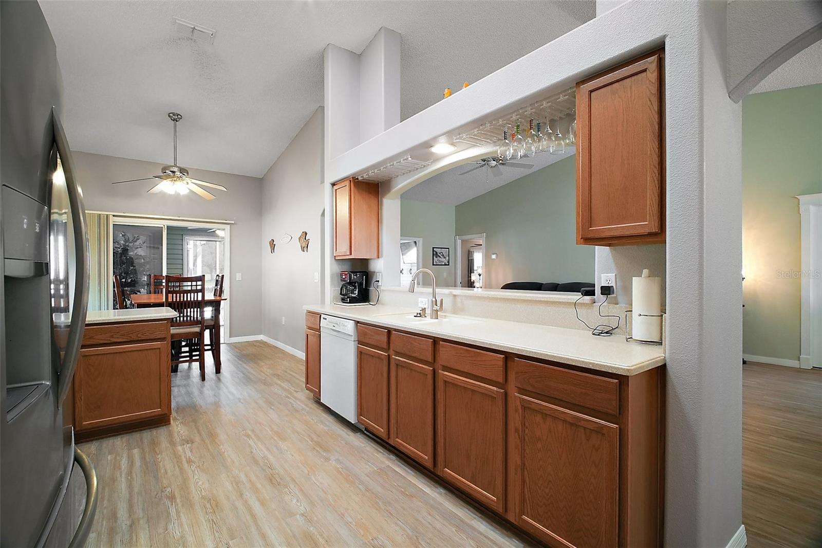 WELCOME TO PENNBROOKE!! Pennbrooke Fairways is just 10 minutes south of The Villages and only 50 minutes away from Orlando, Florida. Pennbrooke is centerally located Tampa, and Daytona, Mt Dora...its just the perfect location. The Pennbrooke Fairways golf course offers golfers two executive nines and one regulation nine to appeal to all skill levels while offering a fun, challenging yet fair, golf experience. Pennbrooke offers RV and Boat Storage with Dump and Wash Stations & 24 hour Gated Security, hair salon, Real Estate Office, two pools, clubhouse, pickle ball courts, tennis, two Recreation Centers, Fitness Center and many clubs and activities. The Pennbrooke HOA provides lawn cutting, cable and internet. Mere minutes from the pool and recreation center! NO CDD FEES!!! Just a few short minutes from the Villages Brownwood Square which has shopping, movie theater, entertainment and restaurants. This truly is a wonderful 55 plus community and a special home. THIS HOME IS A MUST VISIT!!!! For those looking for a golf cart garage....GOT THAT HERE!!! NEWER ROOF 2021, HVAC 2019!!! The curb appeal JUST FLAT OUT STUNNING!!!! Manicured with gorgeous LANDSCAPING features!!! A MUST MENTION AGAIN....JUST STUNNING LANDSCAPING!! Check out the creative decorative stone work, gorgeous!!!!! A RARE FIND!!!!The walkway leads to a front porch that showcases a gorgeous LEADED-GLASS DOOR. As you enter this home you will be impressed with the open floor plan, VAULTED CEILINGS, and beautiful FLOORING in the main living area. Kitchen offers Stainless Steel Appliances, backsplash and plenty of cabinets! Inside Laundry with more than ample storage space!!! Enclosed Lanai, birdcage that offers hours of enjoyment to watch golf at a distance and the stunning water view and all the nature has to offer!!!! This truly is a wonderful 55 plus community and a special home. DO NOT DELAY!!! PICTURES ONLY BEGIN TO TELL THE STORY, THIS IS A MUST VISIT!!!!EXPECT THE UNEXPECTED!