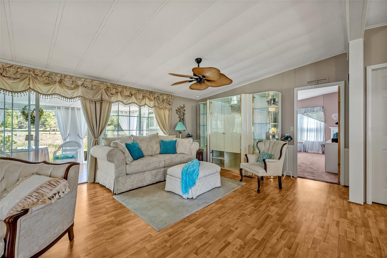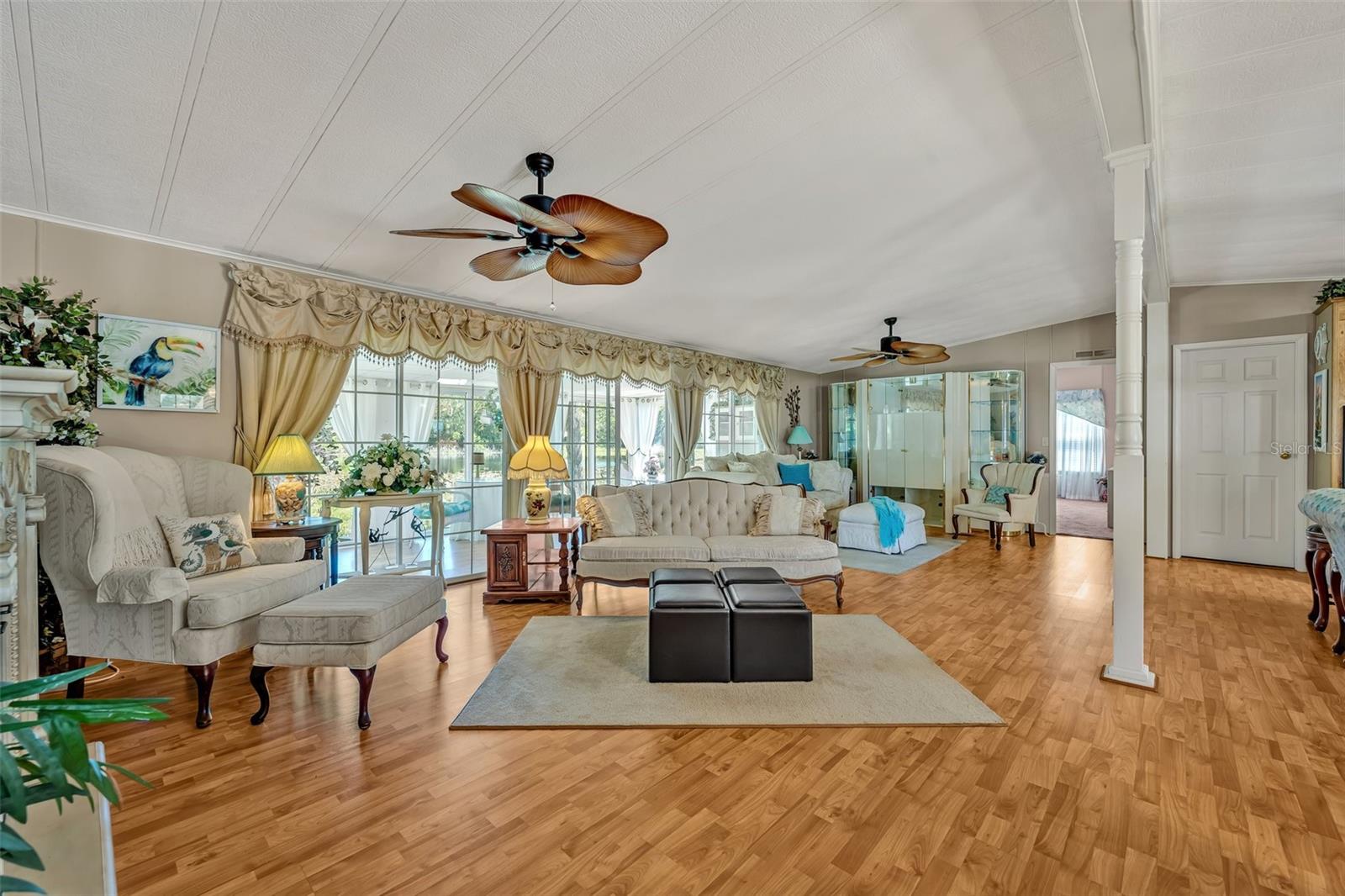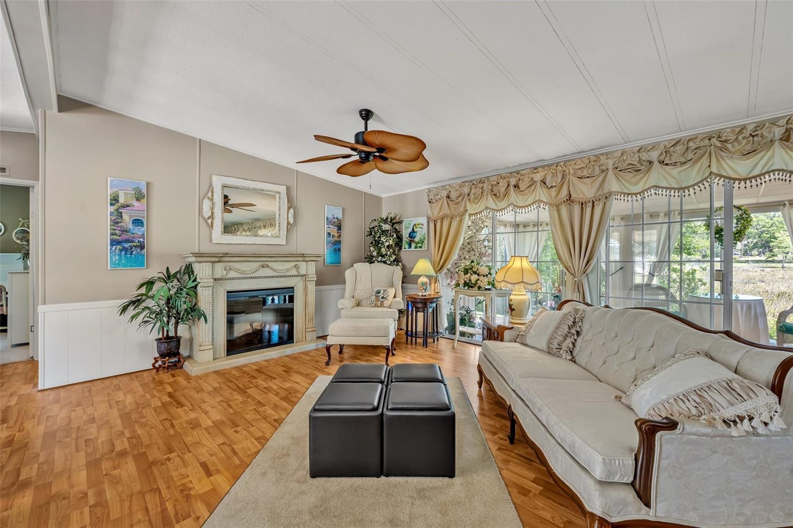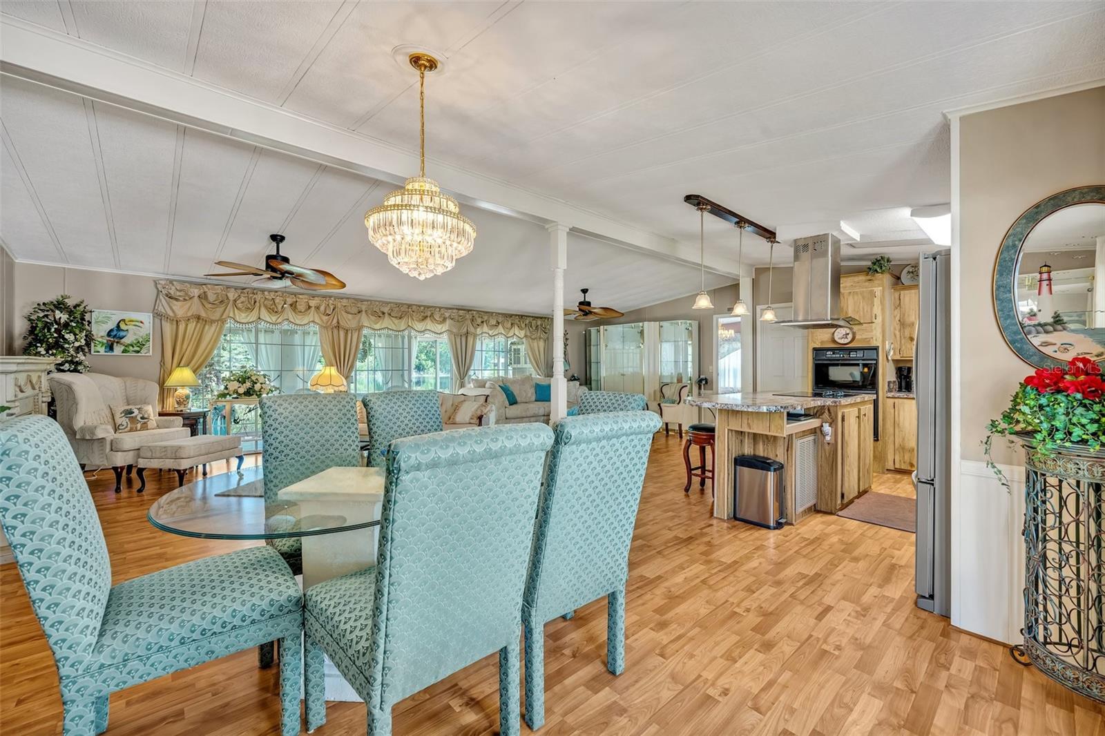 Beautiful 3-Bedroom Lakefront Home in the 55+ Community of Coachwood East! Enjoy serene lakefront living in this spacious and beautifully upgraded 3-bedroom, 2-bathroom manufactured home overlooking Lake Dyches in the highly desirable 55+ community of Coachwood East. This charming home offers an open-concept layout with a combined kitchen, dining, and living area—perfect for entertaining and comfortable day-to-day living. Step inside to discover new windows, blinds, and upgraded doors throughout, along with a brand-new HVAC system for year-round comfort. The kitchen boasts modern upgrades, including a new refrigerator, dishwasher, wall oven, and microwave, plus a glass cooktop with a fan and hood. The primary suite offers a true retreat with double sinks, a large garden tub, and a walk-in shower, while all three bedrooms feature spacious walk-in closets. One of the home’s highlights is the expansive Florida room, offering approximately 180 sq. ft. of extra heated and cooled space with breathtaking lake views—the perfect spot to enjoy your morning coffee or unwind in the evening. An attached shed adds even more functionality, complete with a hot water heater, sink, extra refrigerator, and wall AC unit. The property also features an extra-long driveway with an insulated carport, providing plenty of covered parking. Just steps away, the heated community pool and clubhouse has fantastic opportunities for recreation and socializing. Plus, you’ll love being less than 10 minutes from downtown Leesburg, with its charming shops, dining, and entertainment options. If you’re looking for tranquil lakefront living in a friendly and amenity-rich 55+ community, this home is a rare find. Schedule your private showing today!