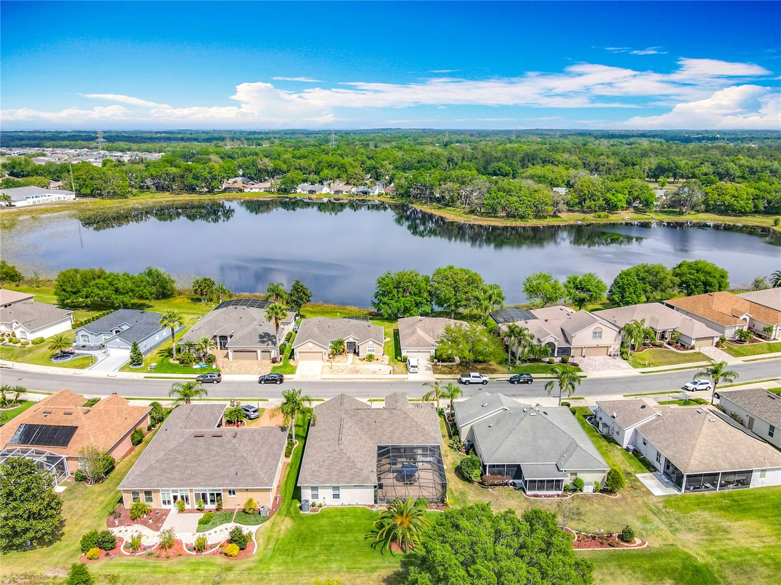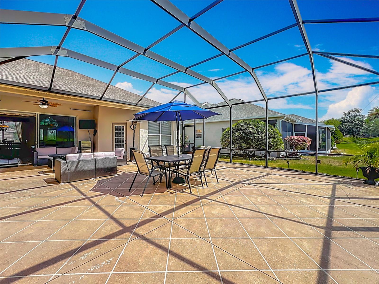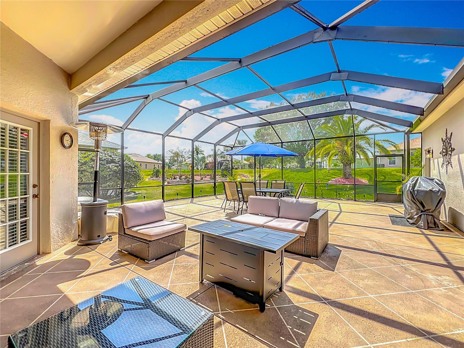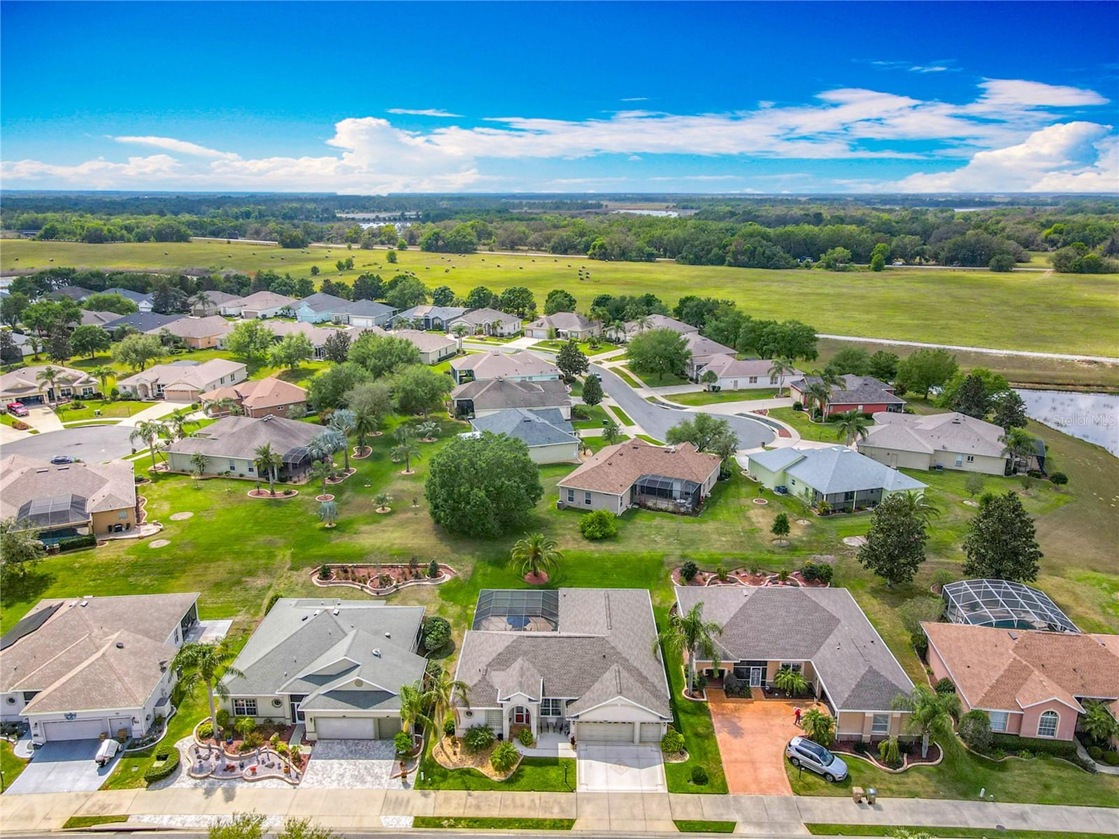 Private & Executive 2 Bedroom Home , Den/Office with Stunning Florida Sunsets.This elegant and spacious 2-bedroom, 2-bath home with a 2.5-car garage is designed for comfort and style, making it the perfect retreat for your golden years. The split floor plan offers privacy and openness, with high ceilings and ceramic tile flooring throughout most of the home.Enjoy breathtaking Florida sunsets from your expansive 28x29 screened patio and spacious lanai—ideal for relaxing or entertaining. The well-manicured landscaping enhances the home’s fantastic curb appeal. Interior Highlights:Gourmet Kitchen – Features an abundance of 42-inch cabinets and expansive Corian countertops, perfect for cooking and entertaining. Primary Suite – Boasts private lanai access, a large walk-in closet, and an upgraded spa-like en-suite bath with a jetted tub, walk-in shower, and dual vanities.Guest Suite – The second bedroom is privately situated on the opposite side of the home, with direct access to the second bath.Office/Den – With elegant French doors, this versatile space can be used as a home office or craft room. Indoor Laundry Room – Equipped with built-in cabinets for extra storage and convenience.Dream Garage & Recent Upgrades: Accommodates two cars plus a golf cart and features a large storage closet.New Roof (2022), New HVAC with UV Light (2022),Newer Water Heater. This beautifully designed home combines elegance, comfort, and functionality—ready for you to move in and enjoy! Enjoy leisurely rounds of golf on two 18-hole courses, stay active with lighted tennis courts, or relax by one of the three sparkling pools and Jacuzzis.For those who love staying fit, the world-class fitness centers and Volleyball & Pickleball courts will keep you engaged. With over 100 planned activities each week, you’ll always have something fun to look forward to. The scenic, landscaped boulevards and serene lakes a peaceful backdrop, perfect for fishing or simply unwinding. Plus, with three expansive clubhouses and a delicious on-site restaurant, everything you need is right at your doorstep.
