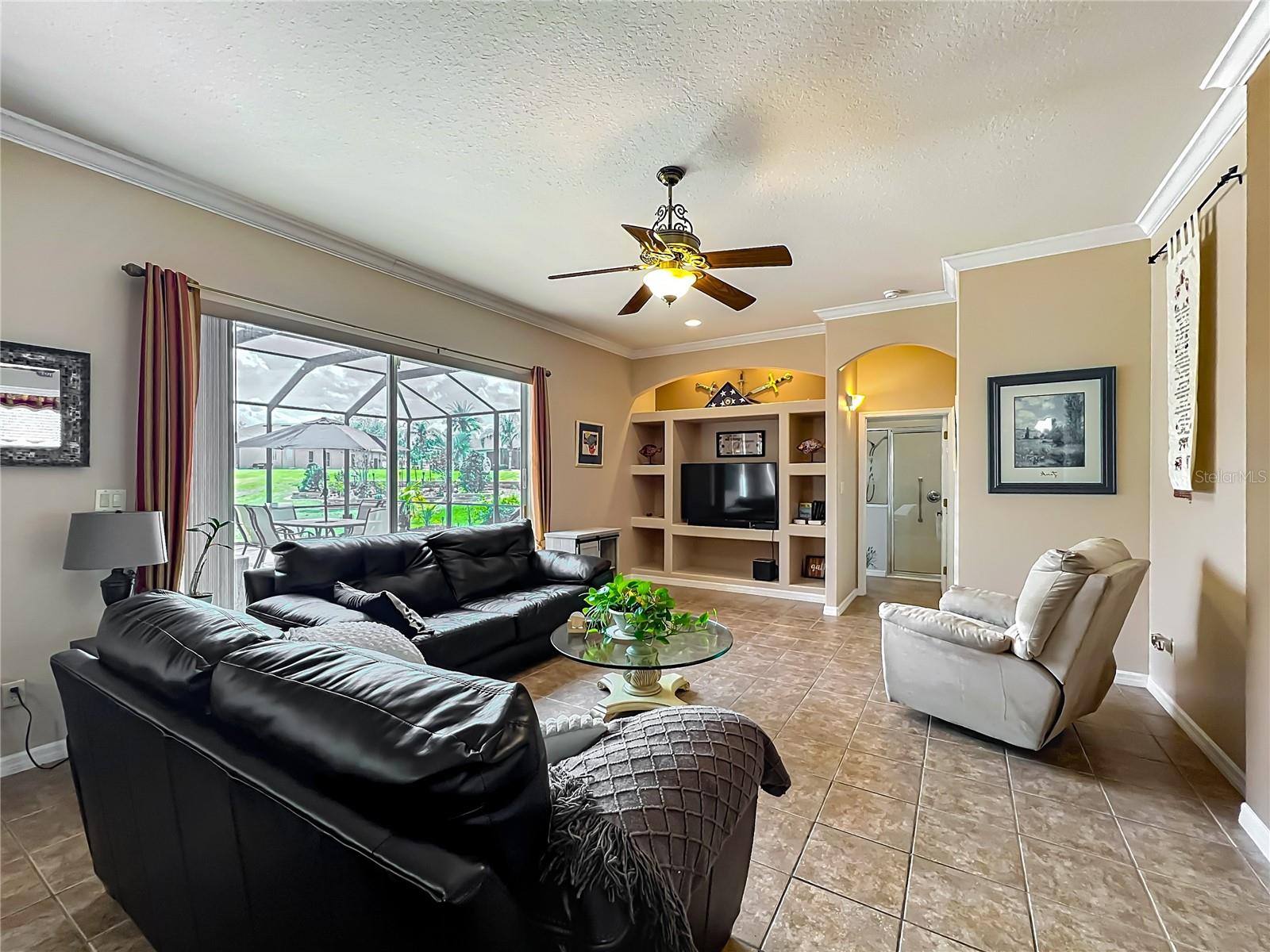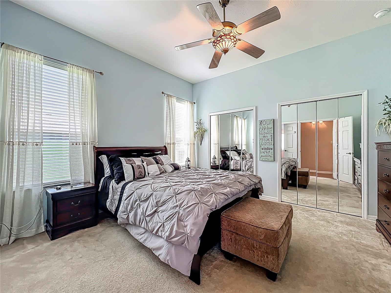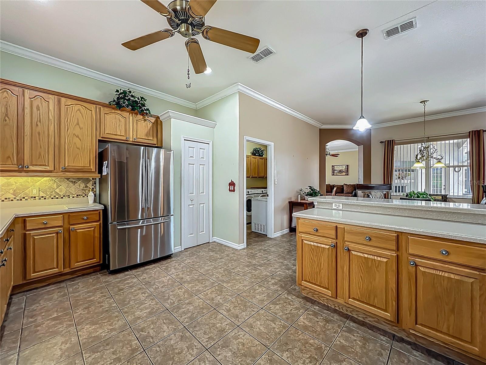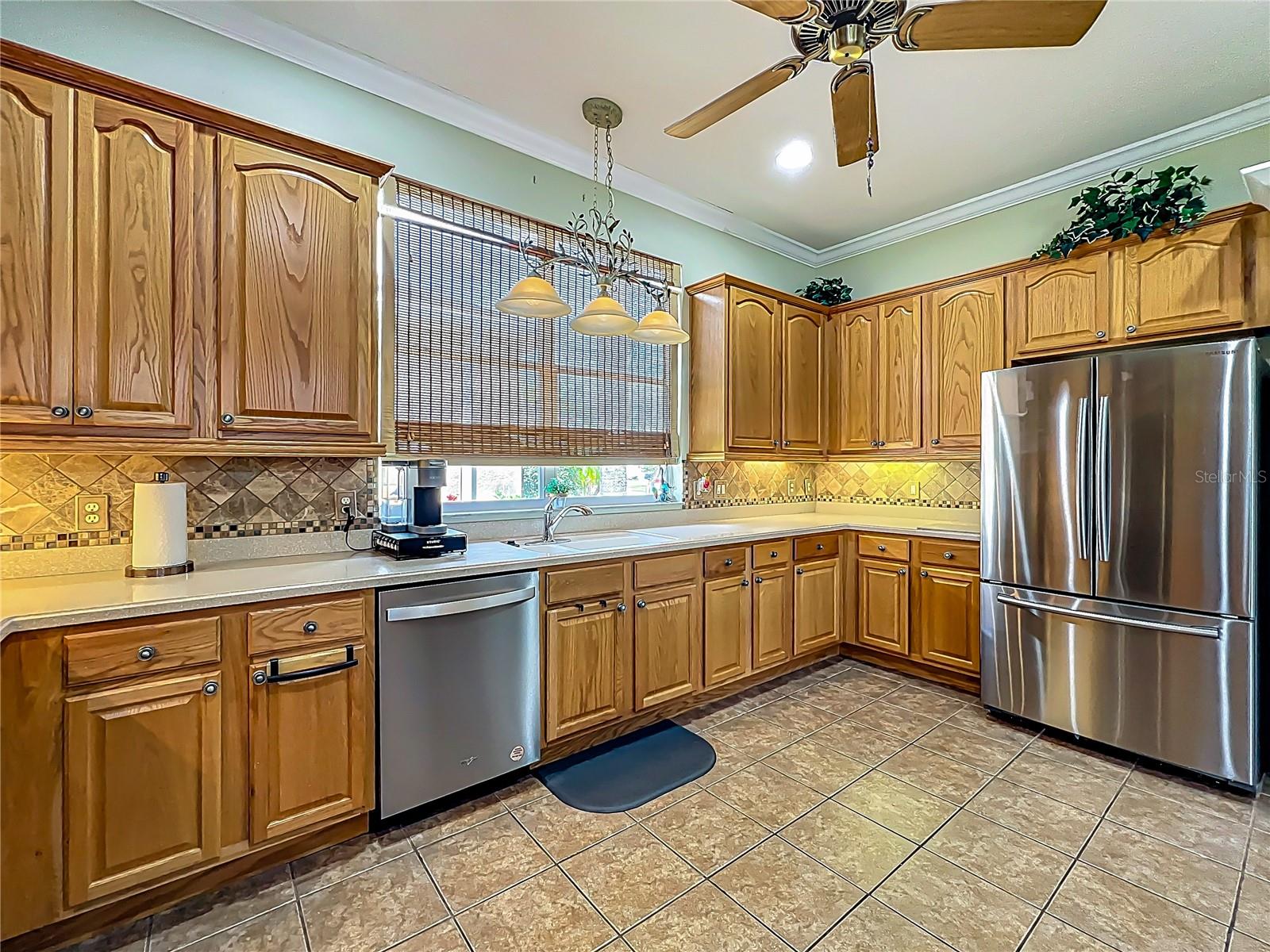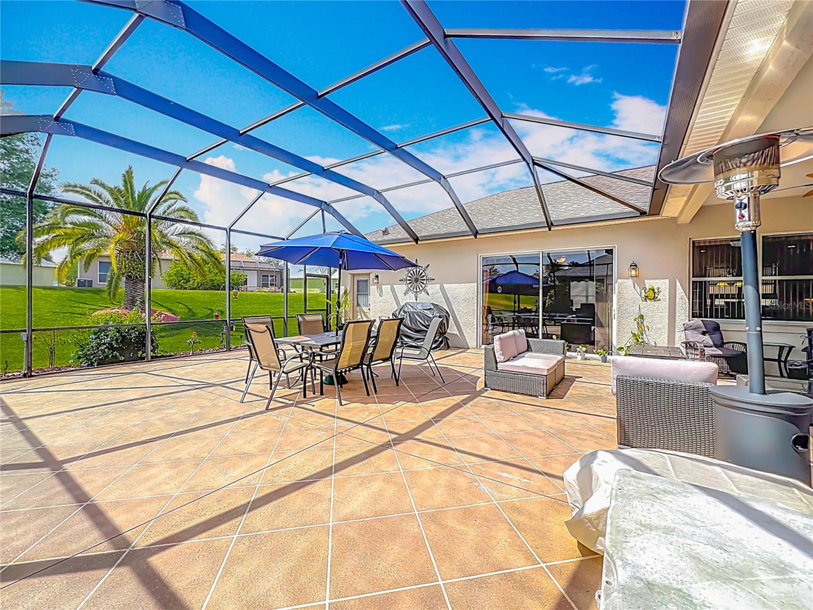 Private & Executive 2 Bedroom Home , Den/Office with Stunning Florida Sunsets.This elegant and spacious 2-bedroom, 2-bath home with a 2.5-car garage is designed for comfort and style, making it the perfect retreat for your golden years. The split floor plan offers privacy and openness, with high ceilings and ceramic tile flooring throughout most of the home.Enjoy breathtaking Florida sunsets from your expansive 28x29 screened patio and spacious lanai—ideal for relaxing or entertaining. The well-manicured landscaping enhances the home’s fantastic curb appeal. Interior Highlights:Gourmet Kitchen – Features an abundance of 42-inch cabinets and expansive Corian countertops, perfect for cooking and entertaining. Primary Suite – Boasts private lanai access, a large walk-in closet, and an upgraded spa-like en-suite bath with a jetted tub, walk-in shower, and dual vanities.Guest Suite – The second bedroom is privately situated on the opposite side of the home, with direct access to the second bath.Office/Den – With elegant French doors, this versatile space can be used as a home office or craft room. Indoor Laundry Room – Equipped with built-in cabinets for extra storage and convenience.Dream Garage & Recent Upgrades: Accommodates two cars plus a golf cart and features a large storage closet.New Roof (2022), New HVAC with UV Light (2022),Newer Water Heater. This beautifully designed home combines elegance, comfort, and functionality—ready for you to move in and enjoy! Enjoy leisurely rounds of golf on two 18-hole courses, stay active with lighted tennis courts, or relax by one of the three sparkling pools and Jacuzzis.For those who love staying fit, the world-class fitness centers and Volleyball & Pickleball courts will keep you engaged. With over 100 planned activities each week, you’ll always have something fun to look forward to. The scenic, landscaped boulevards and serene lakes a peaceful backdrop, perfect for fishing or simply unwinding. Plus, with three expansive clubhouses and a delicious on-site restaurant, everything you need is right at your doorstep.