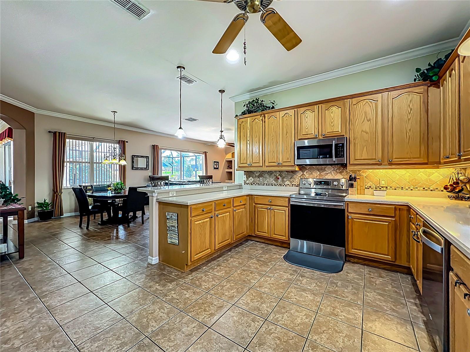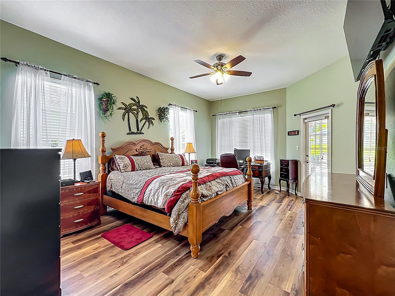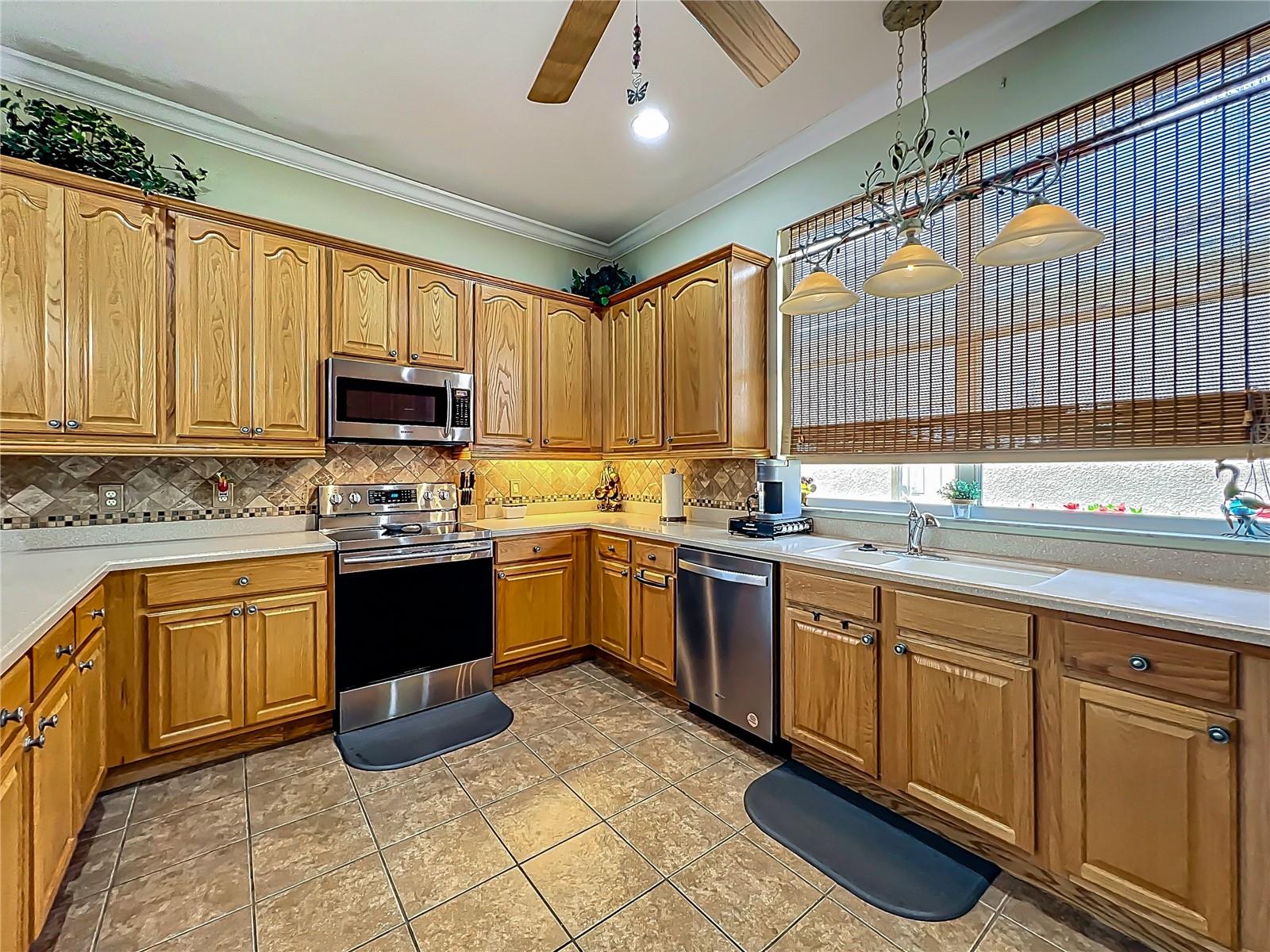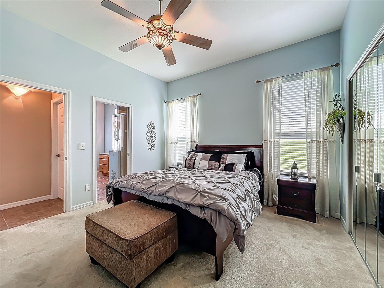 Private & Executive 2 Bedroom Home , Den/Office with Stunning Florida Sunsets.This elegant and spacious 2-bedroom, 2-bath home with a 2.5-car garage is designed for comfort and style, making it the perfect retreat for your golden years. The split floor plan offers privacy and openness, with high ceilings and ceramic tile flooring throughout most of the home.Enjoy breathtaking Florida sunsets from your expansive 28x29 screened patio and spacious lanai—ideal for relaxing or entertaining. The well-manicured landscaping enhances the home’s fantastic curb appeal. Interior Highlights:Gourmet Kitchen – Features an abundance of 42-inch cabinets and expansive Corian countertops, perfect for cooking and entertaining. Primary Suite – Boasts private lanai access, a large walk-in closet, and an upgraded spa-like en-suite bath with a jetted tub, walk-in shower, and dual vanities.Guest Suite – The second bedroom is privately situated on the opposite side of the home, with direct access to the second bath.Office/Den – With elegant French doors, this versatile space can be used as a home office or craft room. Indoor Laundry Room – Equipped with built-in cabinets for extra storage and convenience.Dream Garage & Recent Upgrades: Accommodates two cars plus a golf cart and features a large storage closet.New Roof (2022), New HVAC with UV Light (2022),Newer Water Heater. This beautifully designed home combines elegance, comfort, and functionality—ready for you to move in and enjoy! Enjoy leisurely rounds of golf on two 18-hole courses, stay active with lighted tennis courts, or relax by one of the three sparkling pools and Jacuzzis.For those who love staying fit, the world-class fitness centers and Volleyball & Pickleball courts will keep you engaged. With over 100 planned activities each week, you’ll always have something fun to look forward to. The scenic, landscaped boulevards and serene lakes a peaceful backdrop, perfect for fishing or simply unwinding. Plus, with three expansive clubhouses and a delicious on-site restaurant, everything you need is right at your doorstep.