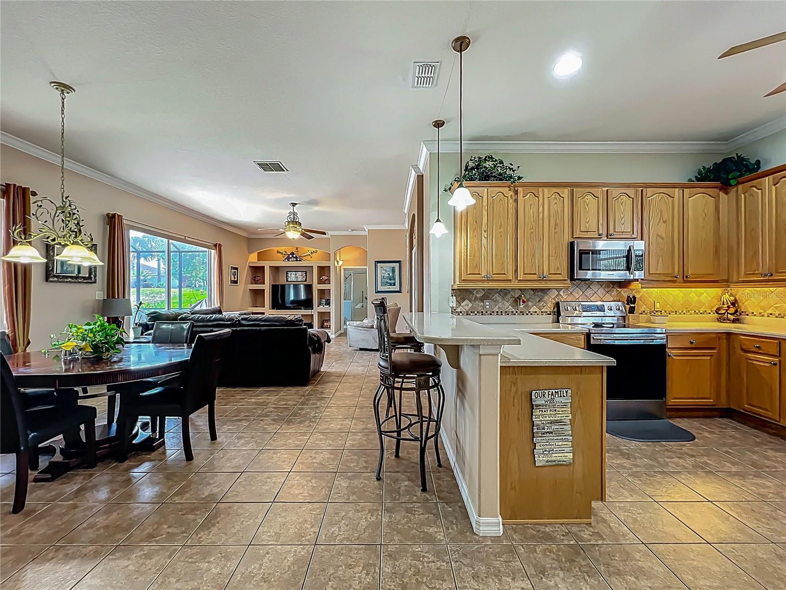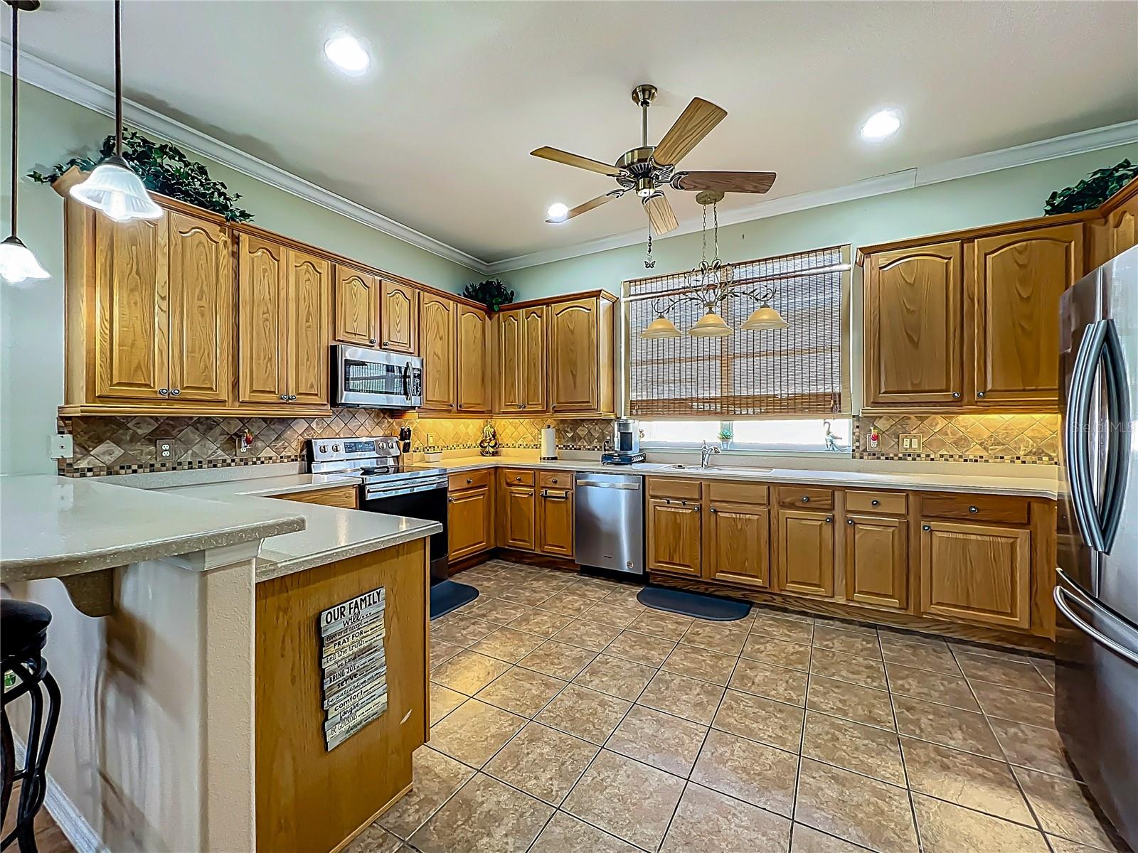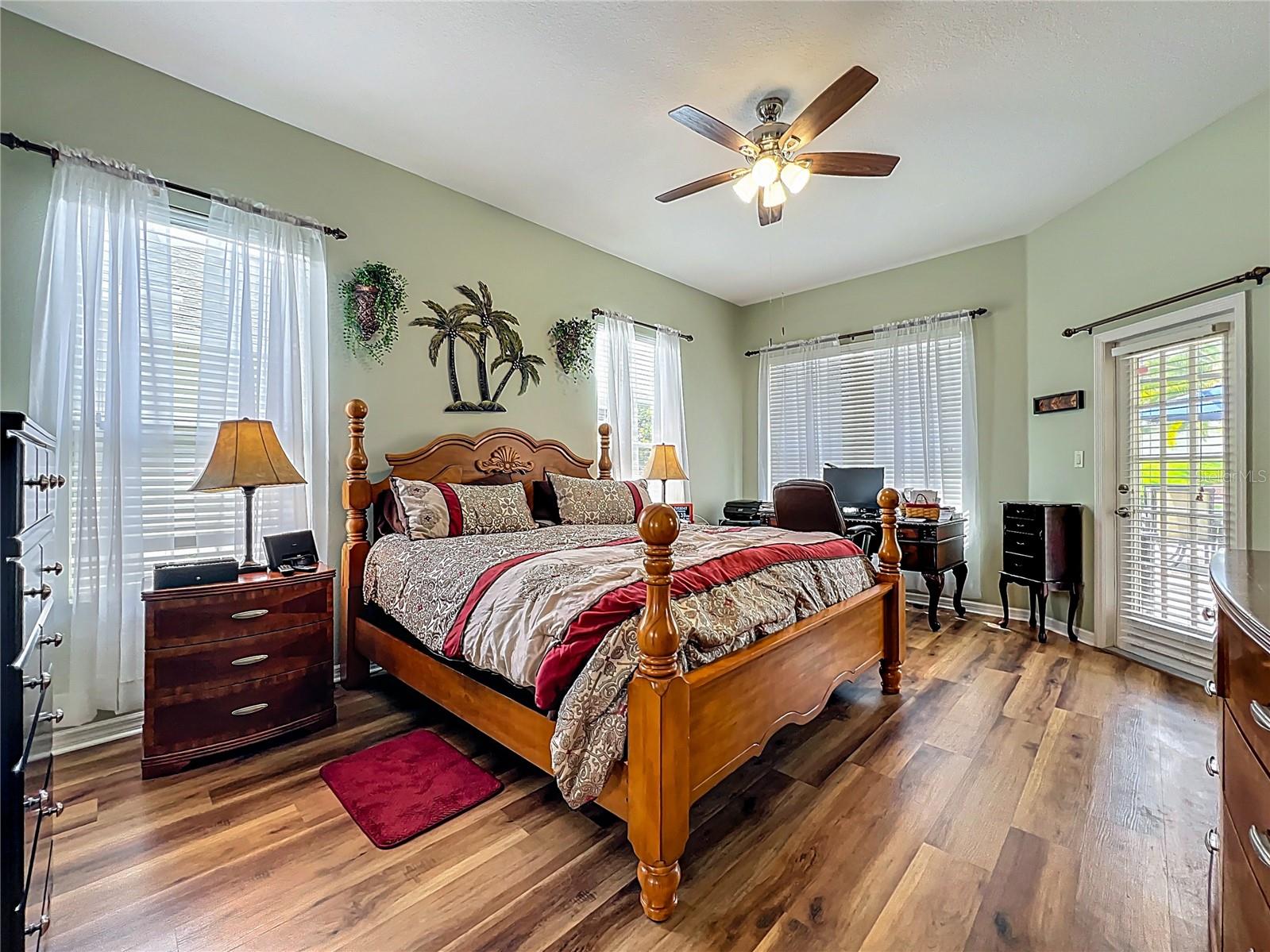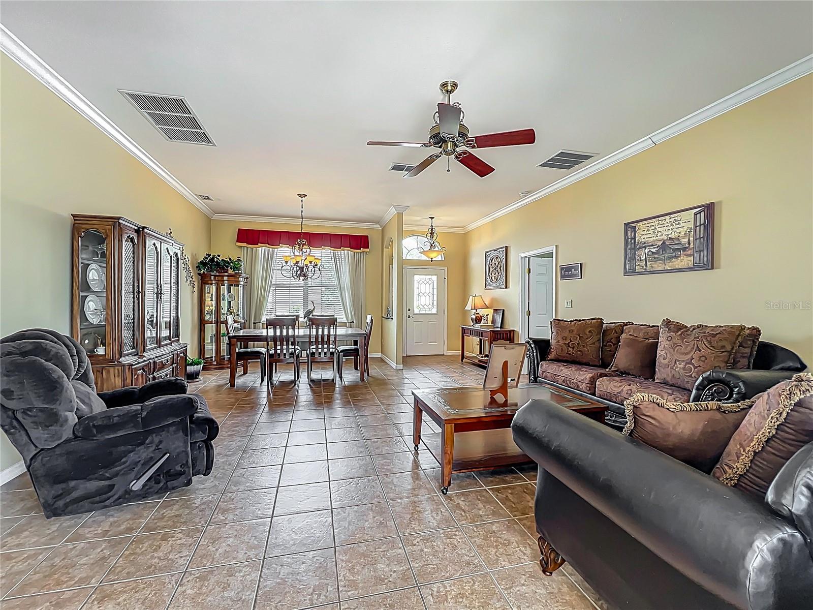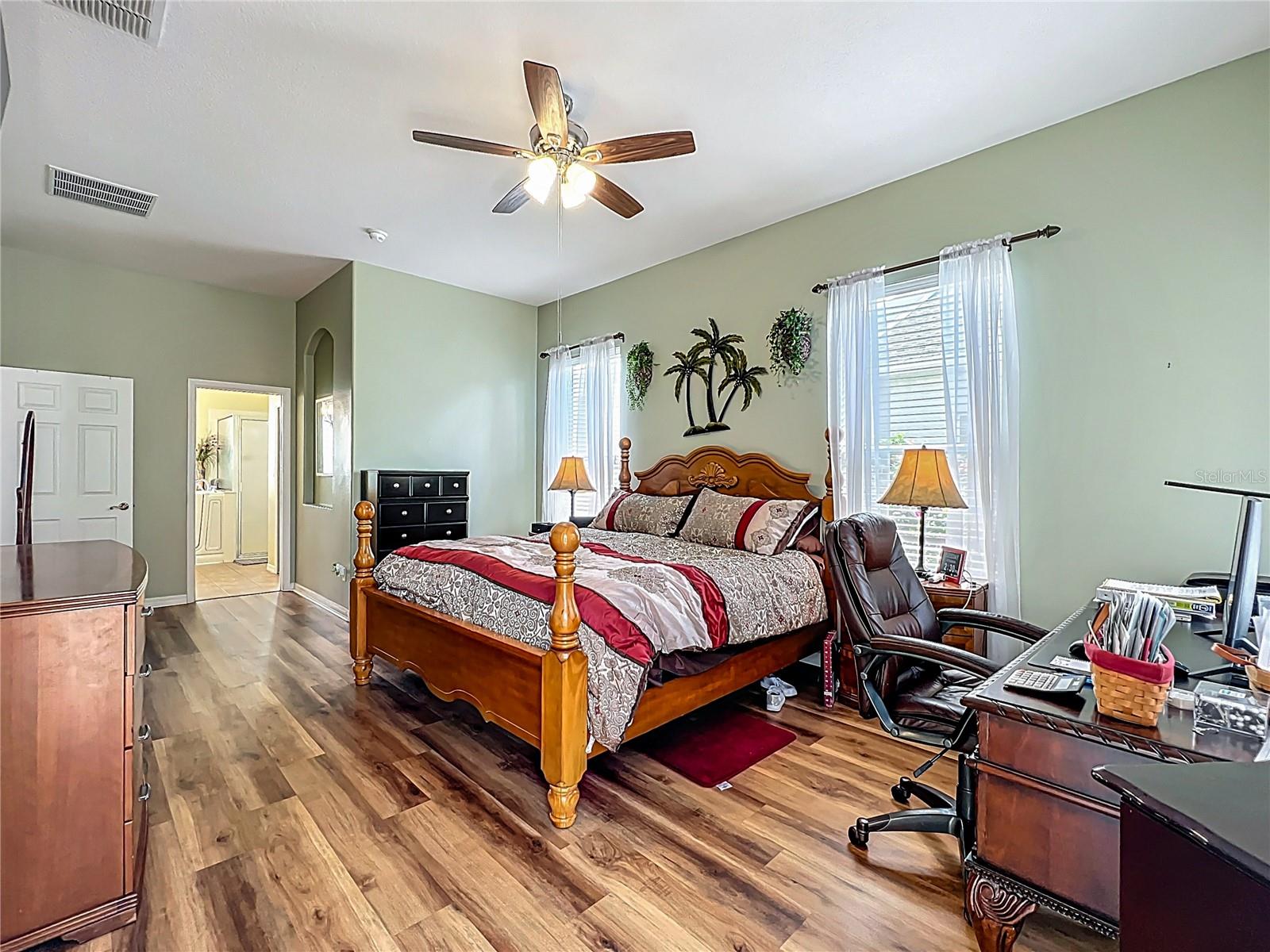 Private & Executive 2 Bedroom Home , Den/Office with Stunning Florida Sunsets.This elegant and spacious 2-bedroom, 2-bath home with a 2.5-car garage is designed for comfort and style, making it the perfect retreat for your golden years. The split floor plan offers privacy and openness, with high ceilings and ceramic tile flooring throughout most of the home.Enjoy breathtaking Florida sunsets from your expansive 28x29 screened patio and spacious lanai—ideal for relaxing or entertaining. The well-manicured landscaping enhances the home’s fantastic curb appeal. Interior Highlights:Gourmet Kitchen – Features an abundance of 42-inch cabinets and expansive Corian countertops, perfect for cooking and entertaining. Primary Suite – Boasts private lanai access, a large walk-in closet, and an upgraded spa-like en-suite bath with a jetted tub, walk-in shower, and dual vanities.Guest Suite – The second bedroom is privately situated on the opposite side of the home, with direct access to the second bath.Office/Den – With elegant French doors, this versatile space can be used as a home office or craft room. Indoor Laundry Room – Equipped with built-in cabinets for extra storage and convenience.Dream Garage & Recent Upgrades: Accommodates two cars plus a golf cart and features a large storage closet.New Roof (2022), New HVAC with UV Light (2022),Newer Water Heater. This beautifully designed home combines elegance, comfort, and functionality—ready for you to move in and enjoy! Enjoy leisurely rounds of golf on two 18-hole courses, stay active with lighted tennis courts, or relax by one of the three sparkling pools and Jacuzzis.For those who love staying fit, the world-class fitness centers and Volleyball & Pickleball courts will keep you engaged. With over 100 planned activities each week, you’ll always have something fun to look forward to. The scenic, landscaped boulevards and serene lakes a peaceful backdrop, perfect for fishing or simply unwinding. Plus, with three expansive clubhouses and a delicious on-site restaurant, everything you need is right at your doorstep.