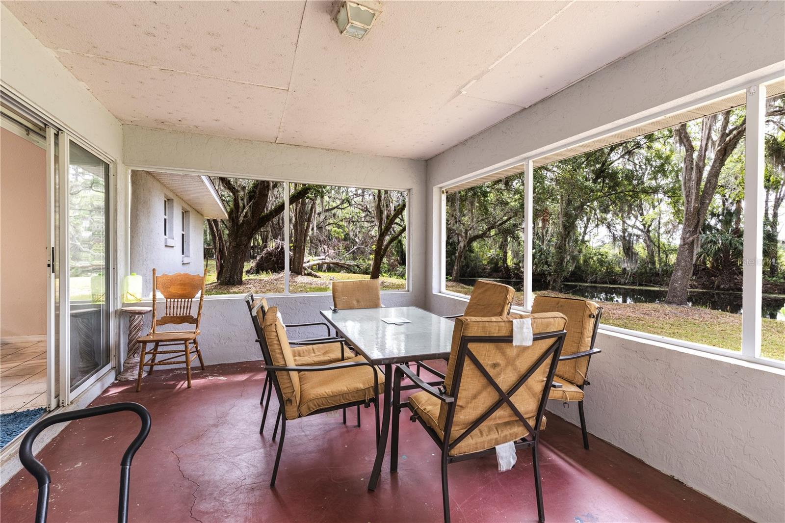 Welcome to 7938 Jacksons River Road in Leesburg, FL. This unique canal front retreat is situated on 2.3(+/-) acres of stunning Florida landscape zoned Residential Agriculture. New Roof to be installed prior to closing. The 1,628 square foot home offers 3 bedrooms and 2 bathrooms with spacious, light-filled rooms, perfect for those looking to add personal touches and upgrades to make it truly their own. The property is embraced by mature, aged oak trees, providing both charm and natural privacy. Enjoy 272 feet of water frontage along the canal that feeds into Lake Griffin, one of seven lakes that make up the famous Harris Chain of Lakes. Ideally situated in a hidden neighborhood, this home offers a rare combination of peaceful natural beauty and convenient access to nearby state parks, seasonal farmers markets, local events and the vibrant energy of downtown communities. Whether you’re seeking an outdoor enthusiast’s paradise or a tranquil space to relax and create your perfect home, this property is must see. Schedule your private tour today and experience the best of Central Florida living! All information recorded in the MLS is intended to be accurate however, it should be independently verified by buyer and their agent