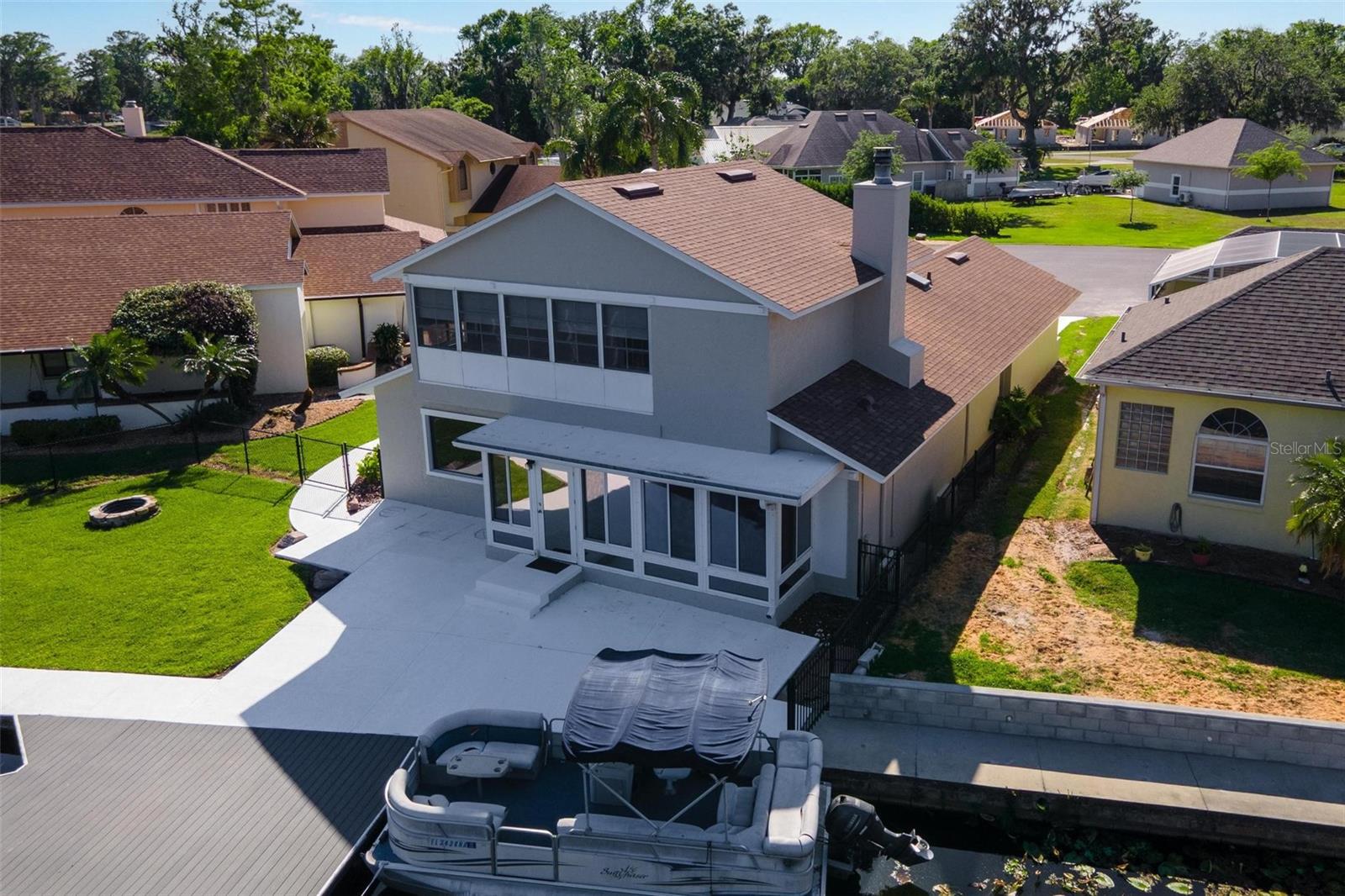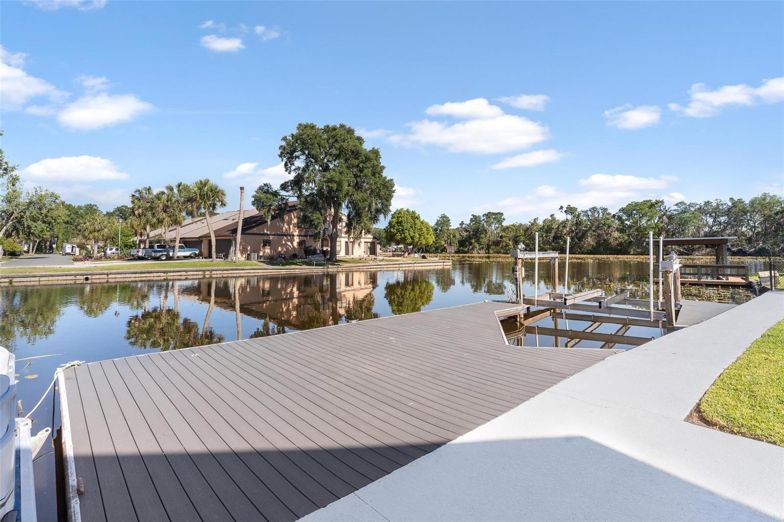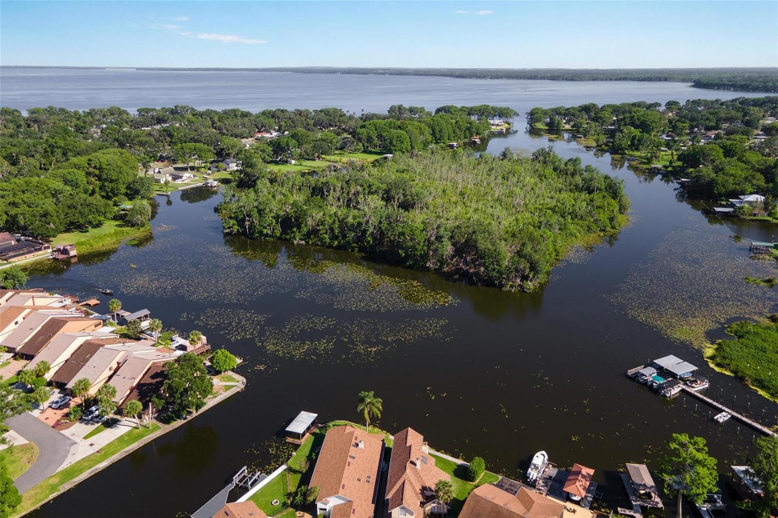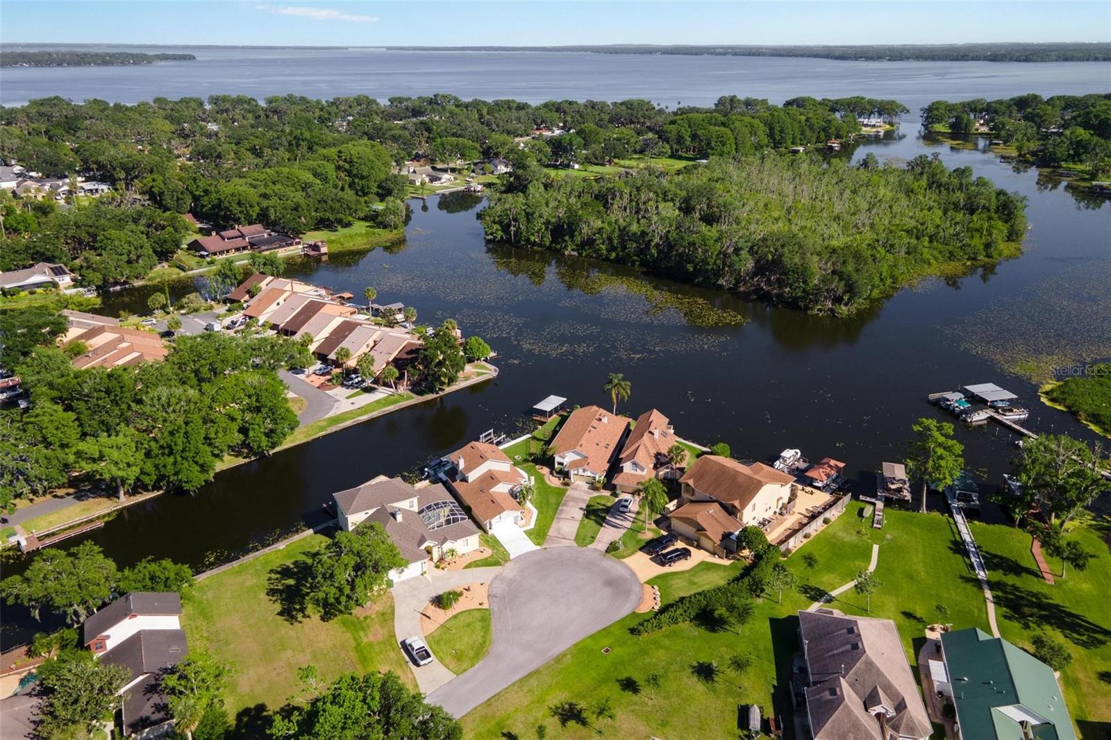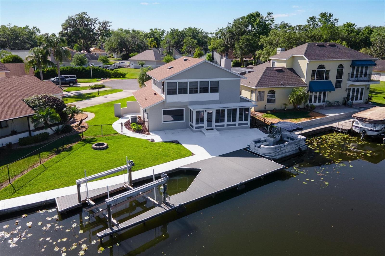 Motivated Seller! Bring all Offers!! Rare Waterfront Opportunity with Access to Lake Harris. Don’t miss this beautifully updated, move-in-ready home on a peaceful lagoon leading to Lake Harris—homes in this sought-after neighborhood rarely hit the market! Enjoy an open floor plan with luxury laminate flooring, a brick wood-burning fireplace, built-ins, and French doors leading to a bright Florida room with water views. The kitchen features wood cabinetry, granite countertops, stainless steel appliances, and two eat-in bars—perfect for entertaining. The upstairs master suite offers a walk-in closet, sun tunnel, and French doors to a private balcony overlooking the water. The en-suite bath features double vanities, granite counters, and a large walk-in shower with dual and rain shower heads. The second bedroom has a private entrance, and both bedrooms include custom wood closet doors. The second full bath includes a tub/shower combo and skylight. Outside, enjoy a 20x10 Florida room, 33x19 concrete patio, double garage, and a 45x16 dock with seawall and a 12,000-lb boat lift. Waterfront views like this sell themselves—schedule your showing today!