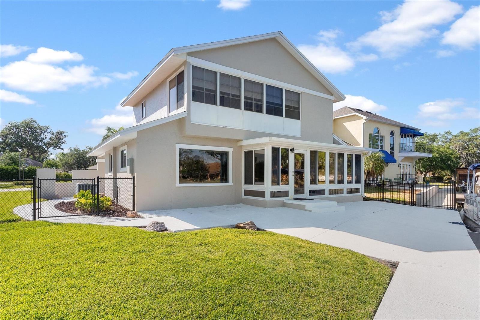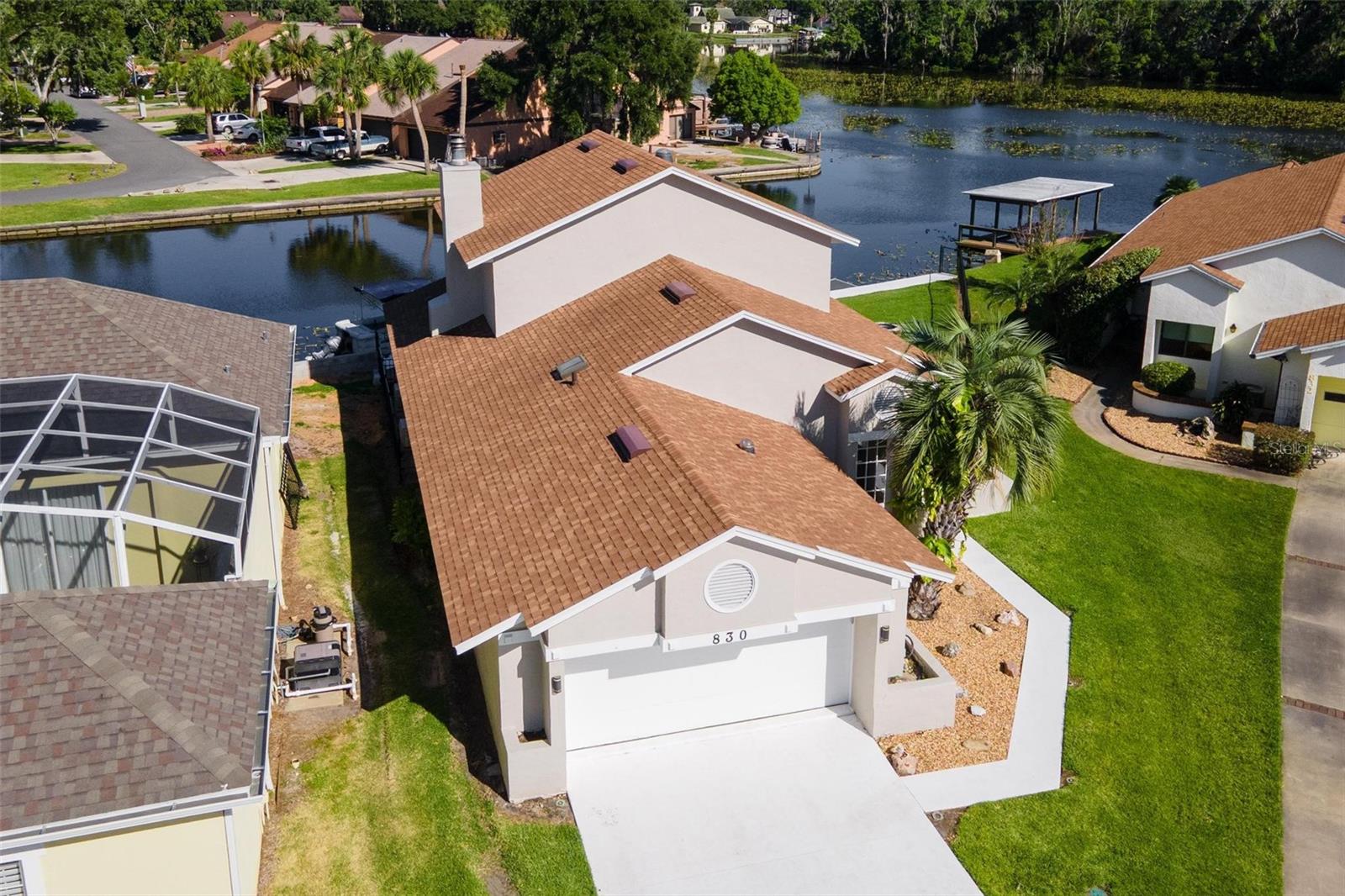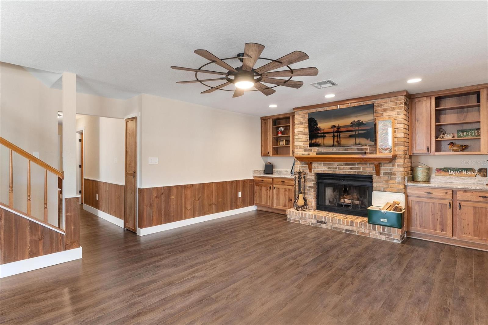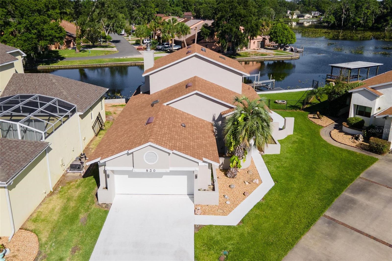 Motivated Seller! Bring all Offers!! Rare Waterfront Opportunity with Access to Lake Harris. Don’t miss this beautifully updated, move-in-ready home on a peaceful lagoon leading to Lake Harris—homes in this sought-after neighborhood rarely hit the market! Enjoy an open floor plan with luxury laminate flooring, a brick wood-burning fireplace, built-ins, and French doors leading to a bright Florida room with water views. The kitchen features wood cabinetry, granite countertops, stainless steel appliances, and two eat-in bars—perfect for entertaining. The upstairs master suite offers a walk-in closet, sun tunnel, and French doors to a private balcony overlooking the water. The en-suite bath features double vanities, granite counters, and a large walk-in shower with dual and rain shower heads. The second bedroom has a private entrance, and both bedrooms include custom wood closet doors. The second full bath includes a tub/shower combo and skylight. Outside, enjoy a 20x10 Florida room, 33x19 concrete patio, double garage, and a 45x16 dock with seawall and a 12,000-lb boat lift. Waterfront views like this sell themselves—schedule your showing today!