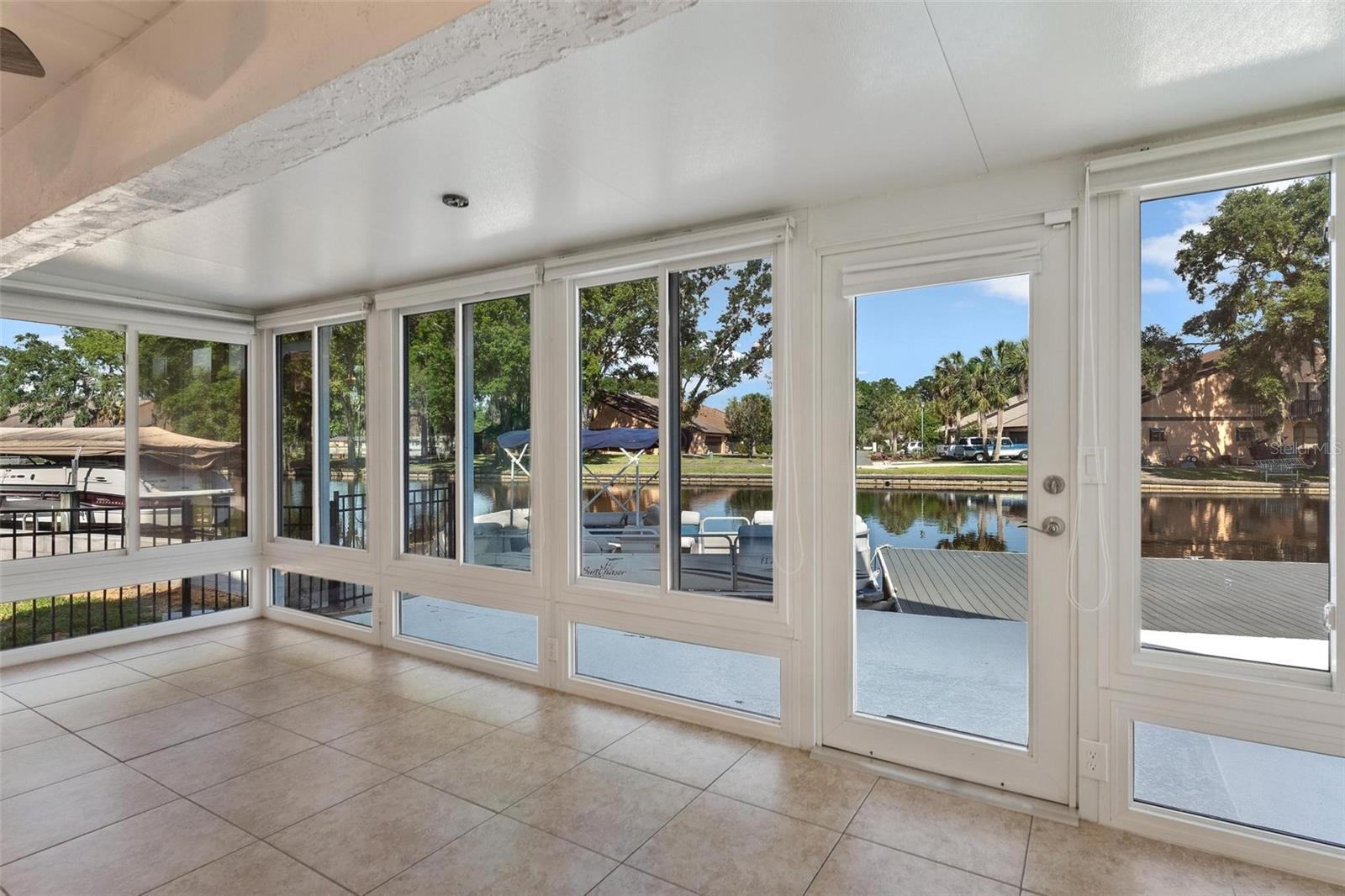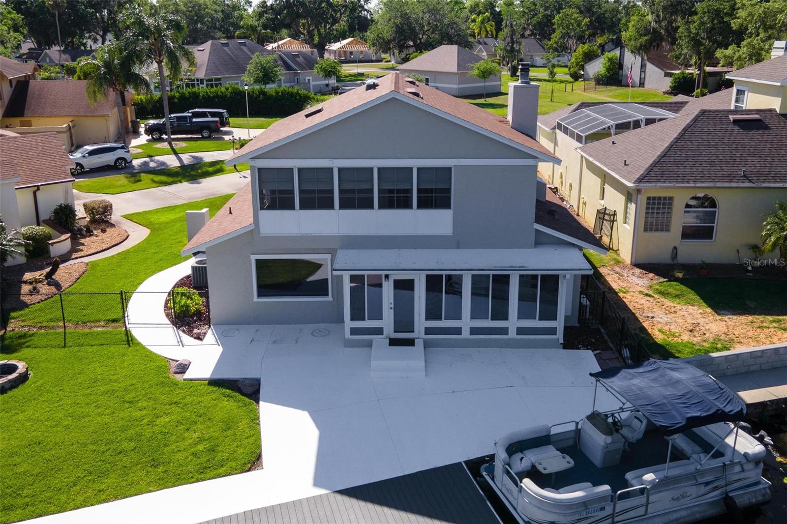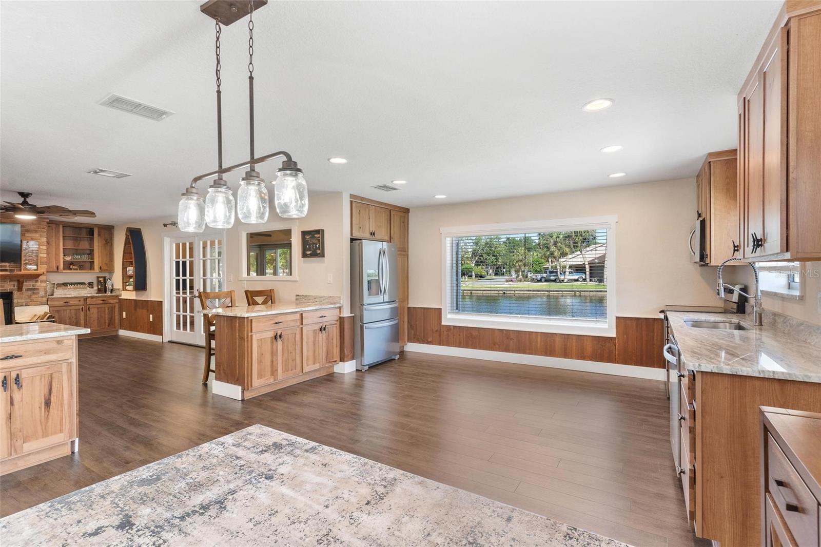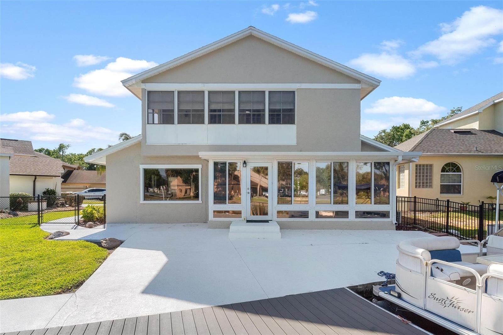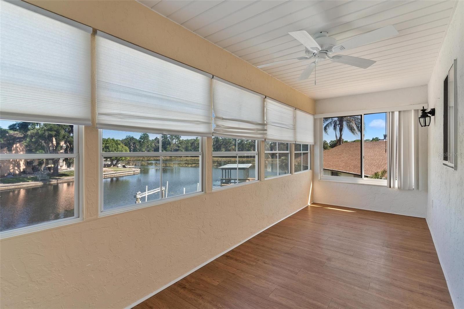 Motivated Seller! Bring all Offers!! Rare Waterfront Opportunity with Access to Lake Harris. Don’t miss this beautifully updated, move-in-ready home on a peaceful lagoon leading to Lake Harris—homes in this sought-after neighborhood rarely hit the market! Enjoy an open floor plan with luxury laminate flooring, a brick wood-burning fireplace, built-ins, and French doors leading to a bright Florida room with water views. The kitchen features wood cabinetry, granite countertops, stainless steel appliances, and two eat-in bars—perfect for entertaining. The upstairs master suite offers a walk-in closet, sun tunnel, and French doors to a private balcony overlooking the water. The en-suite bath features double vanities, granite counters, and a large walk-in shower with dual and rain shower heads. The second bedroom has a private entrance, and both bedrooms include custom wood closet doors. The second full bath includes a tub/shower combo and skylight. Outside, enjoy a 20x10 Florida room, 33x19 concrete patio, double garage, and a 45x16 dock with seawall and a 12,000-lb boat lift. Waterfront views like this sell themselves—schedule your showing today!