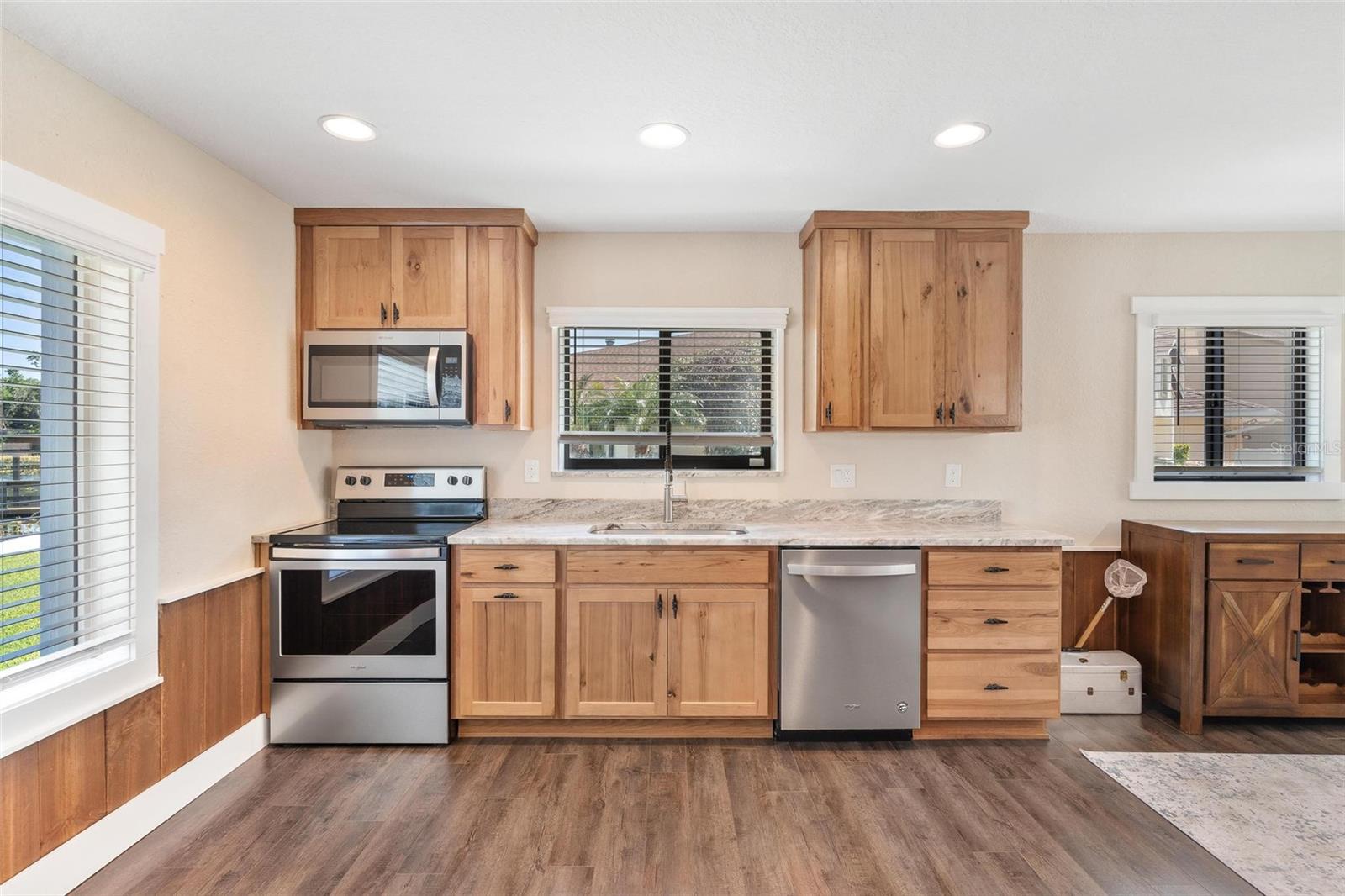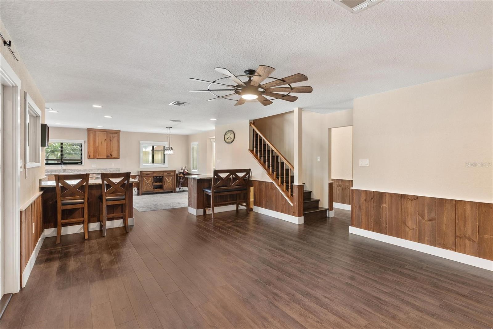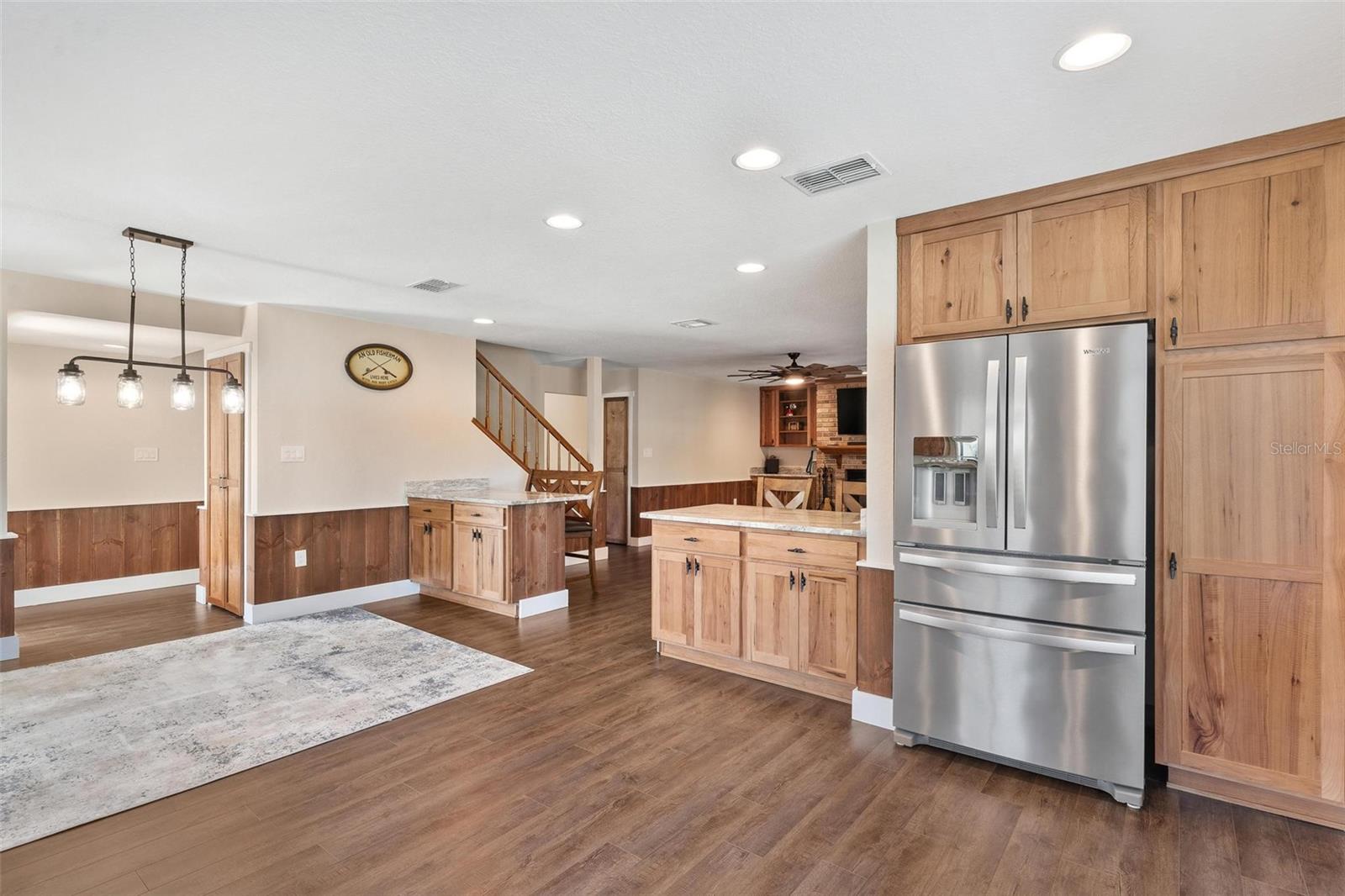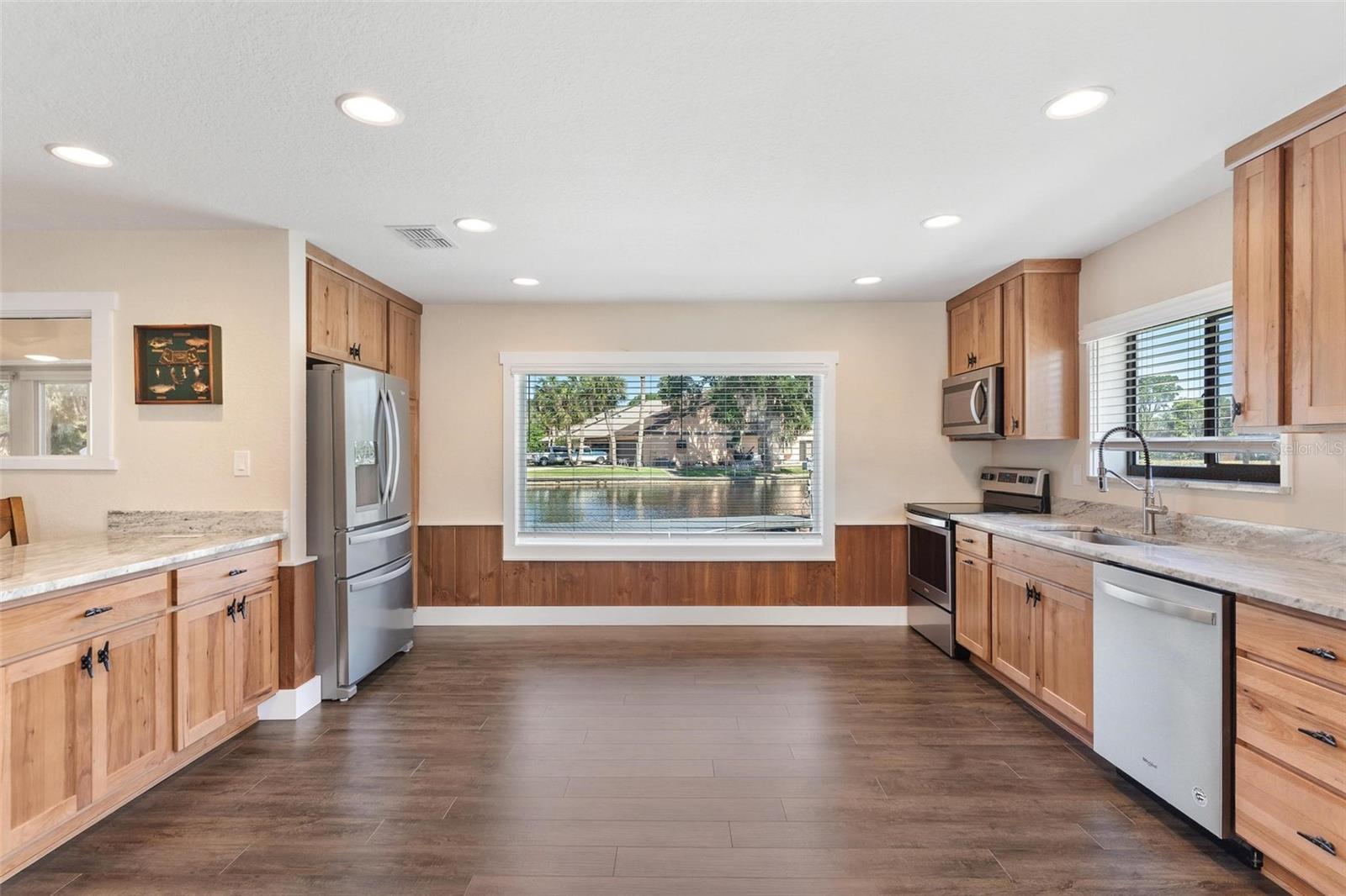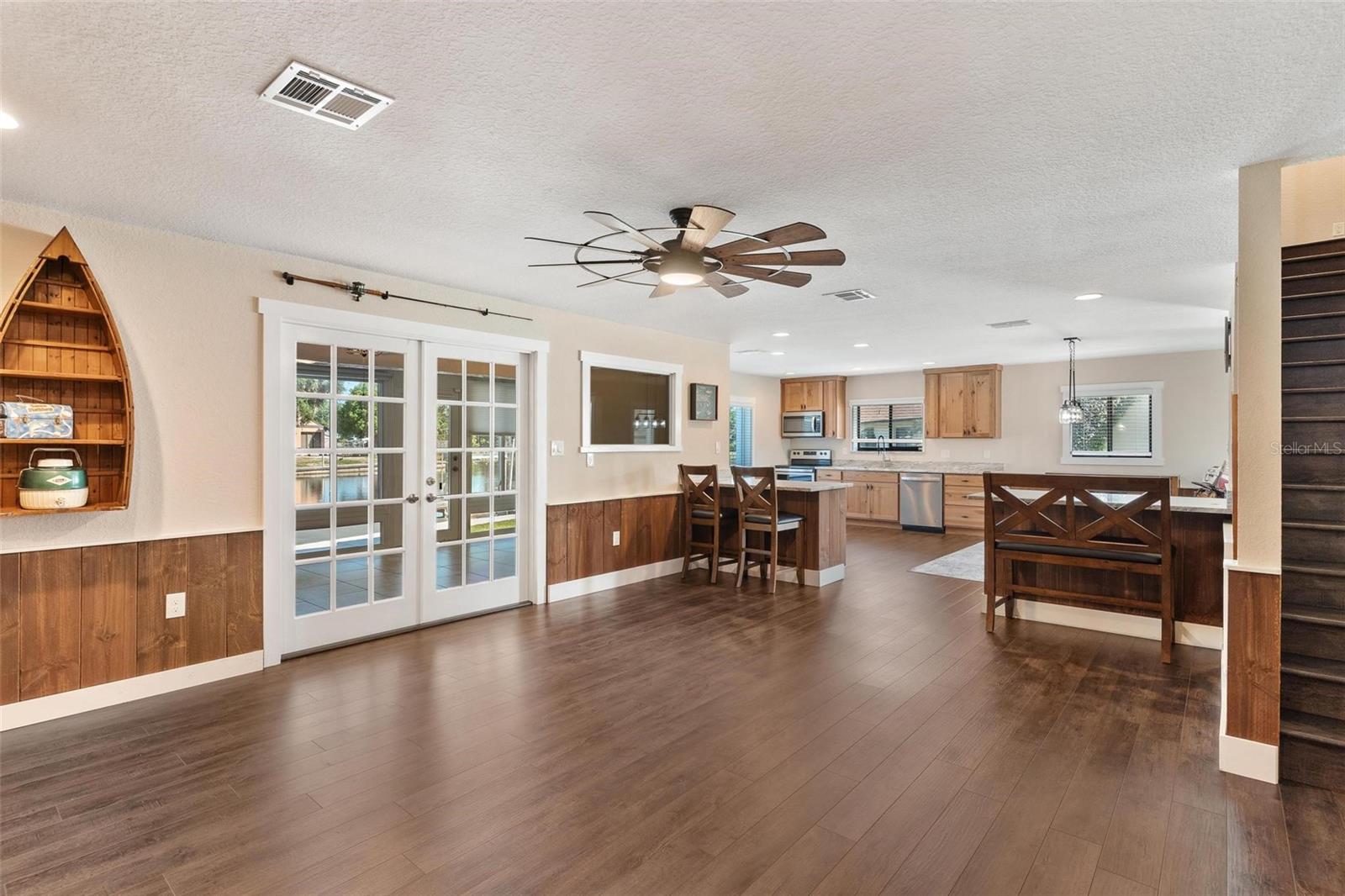 Motivated Seller! Bring all Offers!! Rare Waterfront Opportunity with Access to Lake Harris. Don’t miss this beautifully updated, move-in-ready home on a peaceful lagoon leading to Lake Harris—homes in this sought-after neighborhood rarely hit the market! Enjoy an open floor plan with luxury laminate flooring, a brick wood-burning fireplace, built-ins, and French doors leading to a bright Florida room with water views. The kitchen features wood cabinetry, granite countertops, stainless steel appliances, and two eat-in bars—perfect for entertaining. The upstairs master suite offers a walk-in closet, sun tunnel, and French doors to a private balcony overlooking the water. The en-suite bath features double vanities, granite counters, and a large walk-in shower with dual and rain shower heads. The second bedroom has a private entrance, and both bedrooms include custom wood closet doors. The second full bath includes a tub/shower combo and skylight. Outside, enjoy a 20x10 Florida room, 33x19 concrete patio, double garage, and a 45x16 dock with seawall and a 12,000-lb boat lift. Waterfront views like this sell themselves—schedule your showing today!