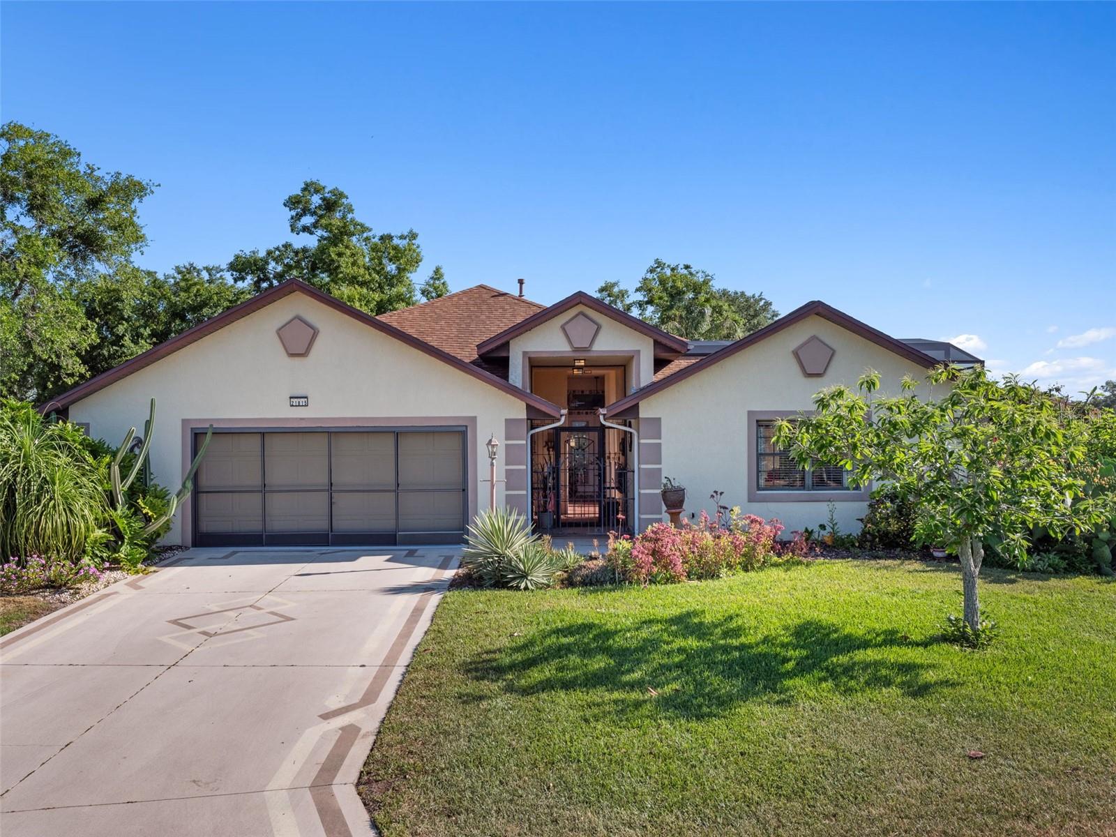 PRICE REDUCED $25k! NEW ROOF COMING SOON! This lovely DUKE MODEL with a SOUTHWESTERN FLAIR is situated on a POND where you have unobstructed VIEWS from the GREAT ROOM. The UPDATED KITCHEN has GRANITE COUNTERS, warm-tone WOOD CABINETS, AND newer STAINLESS-STEEL APPLIANCES that include an electric stove, a FRENCH-DOOR REFRIGERATOR, a hood/microwave combo plus a dishwasher. There is also a BREAKFAST BAR and an EAT-IN SPACE with a PICTURE WINDOW overlooking the COURTYARD. Solar tubes bring in lots of EXTRA NATURAL LIGHT. The LIVING SPACES have warm-toned, lustrous ENGINEERED HARDWOOD FLOORING, additional SOLAR TUBES and ceiling fans strategically placed throughout. The spacious PRIMARY BEDROOM has TWO WALK-IN CLOSETS, space for king size furniture, direct COURTYARD ACCESS through SLIDING GLASS DOORS and an EN SUITE BATH that features a LARGE WHIRLPOOL BATH, and a WALK-IN SHOWER. The GUEST BEDROOM features direct COURTYARD ACCESS and is in a separate hallway with a GUEST BATH giving guests (and you) ADDED PRIVACY. There is a BONUS ROOM off the Great Room that you can use for an office, a reading nook, a TV Room, or whatever you like. At the CENTER of this home is the SPACIOUS COURTYARD that features a lush garden and is IDEAL FOR ENTERTAINING. The SPECIAL FEATURE of the DUKE floorplan is the CASITA located on the other side of the courtyard from the main house. This SEPARATE SUITE is suitable for guests or a LIVE-IN and features a BUILT IN SHELVING unit that encases a MURPHY BED, a large WALK-IN CLOSET, and a three-piece EN SUITE. At the rear of the home is a large a BIRDCAGE COVERED PATIO overlooking a pond where you can do outdoor grilling, ENJOY THE FRESH AIR or just soak up the rays . OVERSIZED GARAGE. The ROOF was replaced in 2017 and there is a WHOLE-HOUSE GENERATOR. Located in the premier GOLF COURSE 55-plus community of ROYAL HIGHLANDS, residents enjoy a full range of amenities, including CABLE & HIGH-SPEED, FIBER OPTIC INTERNET, a GATED entrance with attendants, a GOLF COURSE, a RESTAURANT, tennis, pickleball, softball, INDOOR & OUTDOOR POOLS, secured RV STORAGE, bocce, shuffleboard, a FITNESS ROOM, a library, arts and crafts, billiards, catch-and-release fishing, and a variety of clubs. There truly is SOMETHING FOR EVERYONE in this vibrant community!