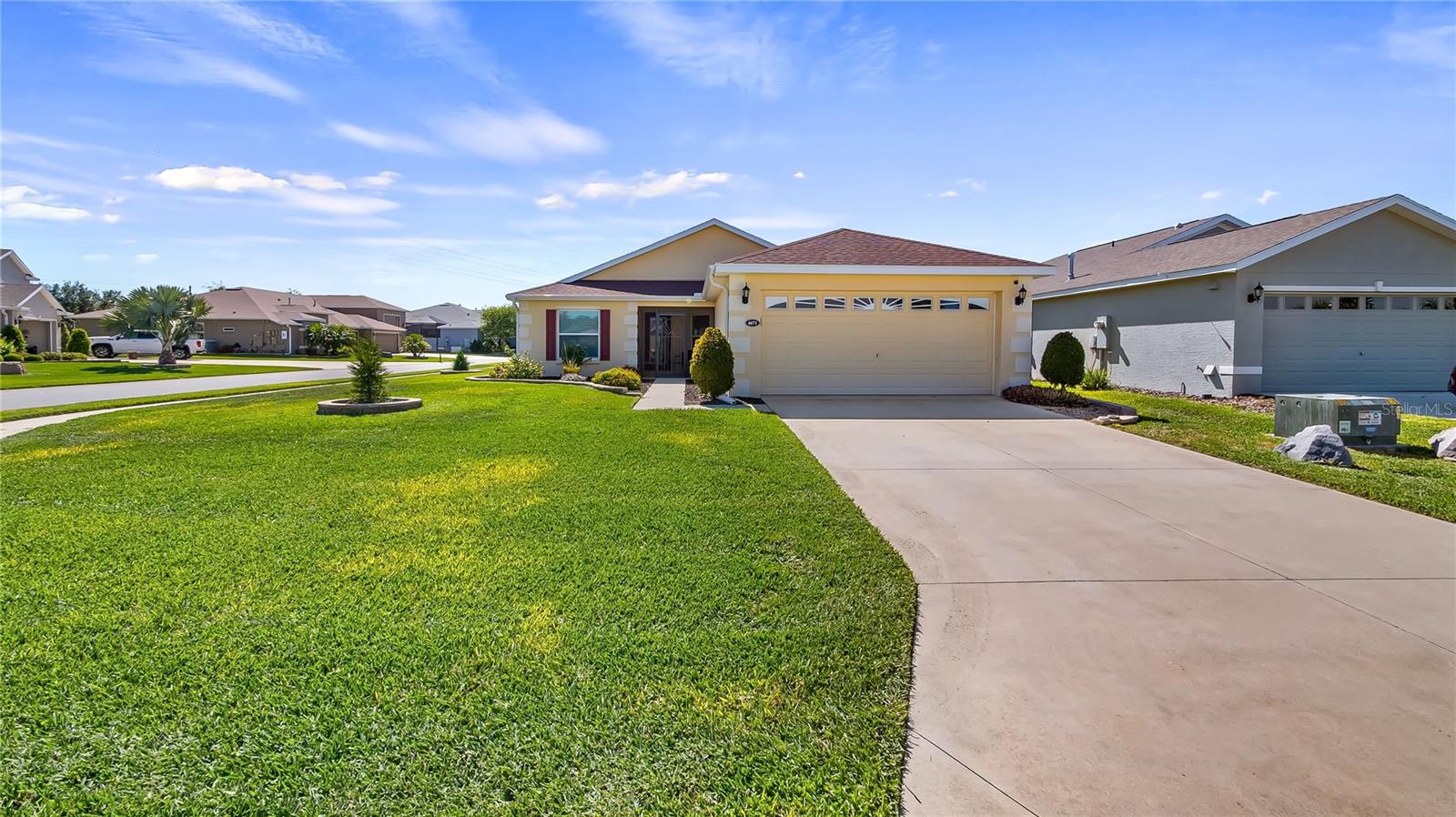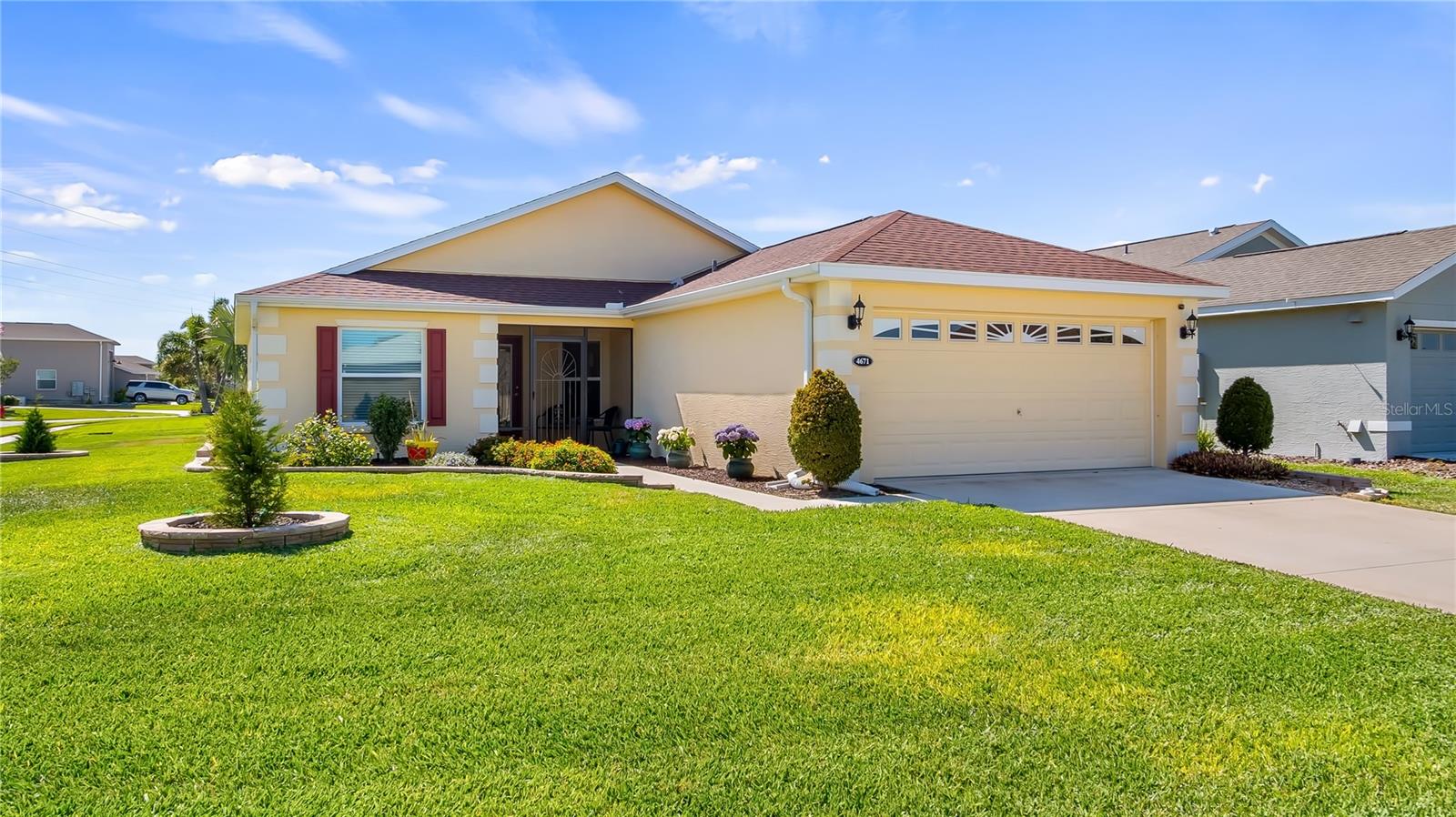 NEW LOW PRICE FOR QUICK SALE! Sellers are motivated to sell and be near to family. BEAUTIFULLY MAINTAINED HOME! Your Beautiful Home in the 55+ community at Arlington Ridge of Leesburg is Waiting! 2 Bedroom, 2 Bath with a flex room! Meticulously maintained and Move-in ready with all tile and Luxury Vinyl Plank flooring throughout. Ceiling Fans throughout, a "must have" for Florida tropical living! Enter this home through the screened front porch and walk into the spacious living room with beautiful LVP flooring and a view through the back glass enclosed patio and beautiful greenery outside. To the right of the front entry, you will find a large dining area that is open to the kitchen with beautifully maintained wood cabinets, granite counters and gas range for the chef in the family. Just off the kitchen is a good-sized laundry room and a hall door to the garage. To the left of the foyer area, you will see a large flex room with LVP floors, perfect for your media room, den, office or hobbies! Also, to the left, is the Guest bath with wood cabinetry and quartz counters, and the Guest bedroom with LVP flooring. To the rear right of the living room, you'll find an oversized primary bedroom that sports a large walk-in closet with built-in organizers and the primary ensuite bathroom with a tile walk-in shower, wood cabinets and quartz counters. From the Living Room to the back of the home is the glass eclosed Lania adding to your indoor living area. Perfect for another office or sitting area to enjoy the outdoor views! Arlington Ridge is a beautiful Golf Community with the active lifestyle features of swimming pools, tennis, fitness, pro-shop, library, theater, restaurant, tavern & grill, ice cream shop, and an array of social clubs to join, such as crafts/hobbies, and special interest groups. What a better place to spend your days with so much to do, and all inside the community where you can ride your golf cart to everything! Call today for your tour of this beautiful home! - - - Equal Housing Opportunity