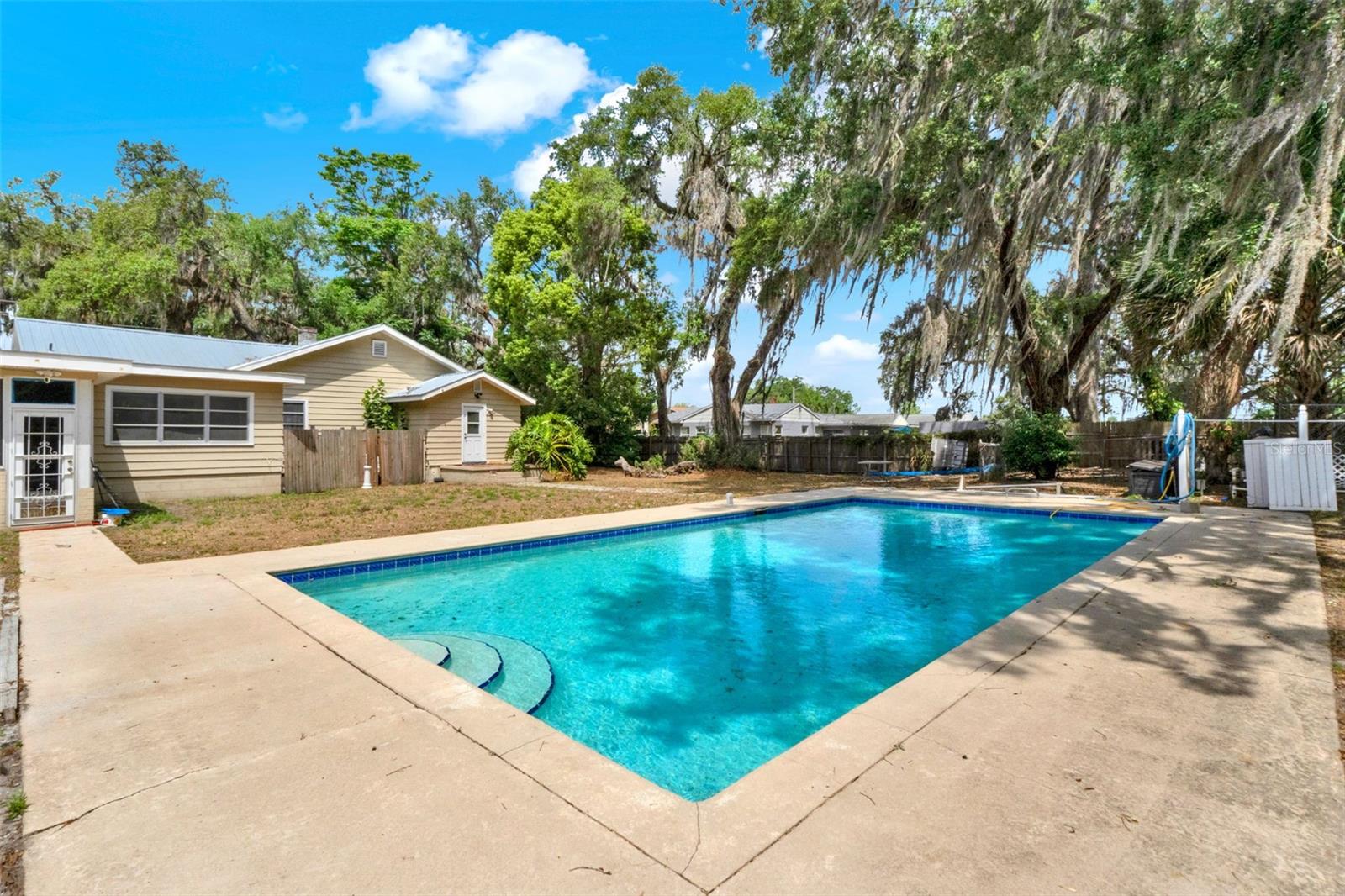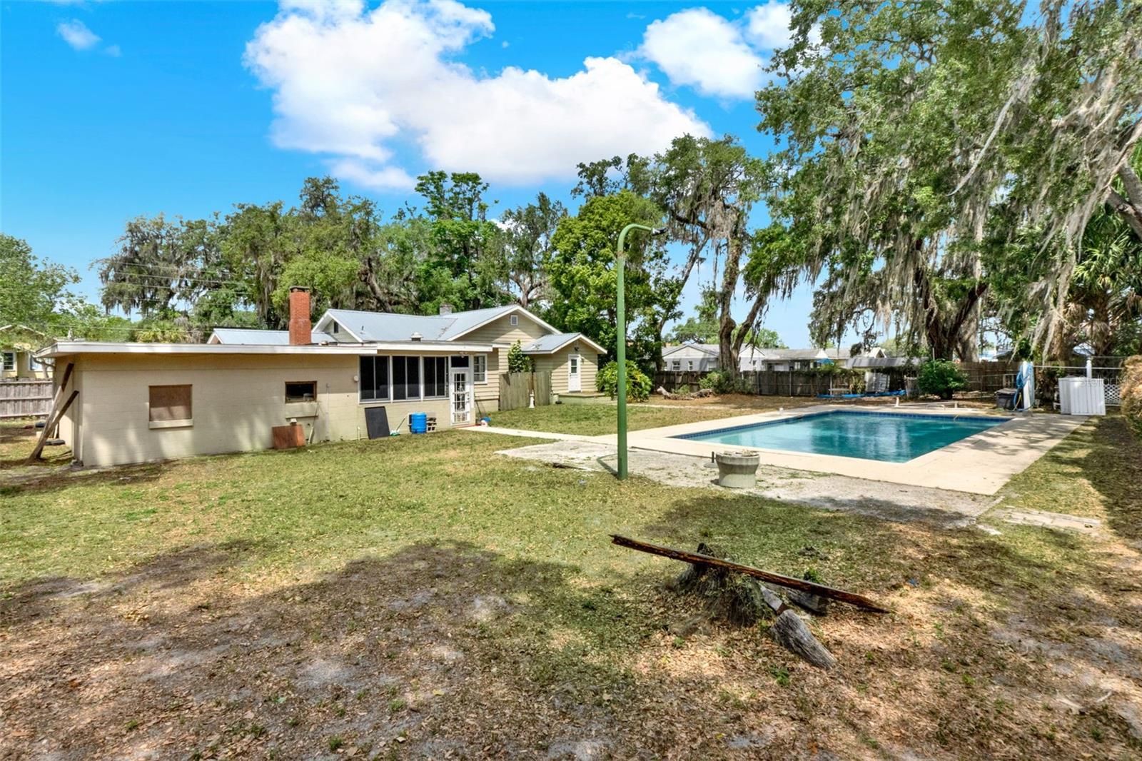 Welcome to your own private oasis just minutes from downtown Leesburg! This inviting and comfortable home sits on over half an acre, offering the perfect blend of space, character, and convenience. Step inside to discover a generously sized layout ideal for both everyday living and entertaining. The cozy den features a beautiful wood-burning fireplace perfect for relaxing evenings. Outdoors, enjoy the Florida sunshine in your private in-ground pool surrounded by lush greenery and ample yard space. The home also boasts a durable metal roof that's only 8 years old, offering peace of mind for years to come. With its welcoming atmosphere, prime location close to shopping, dining, and entertainment, and standout features like the pool and fireplace, this is a property you won't want to miss!