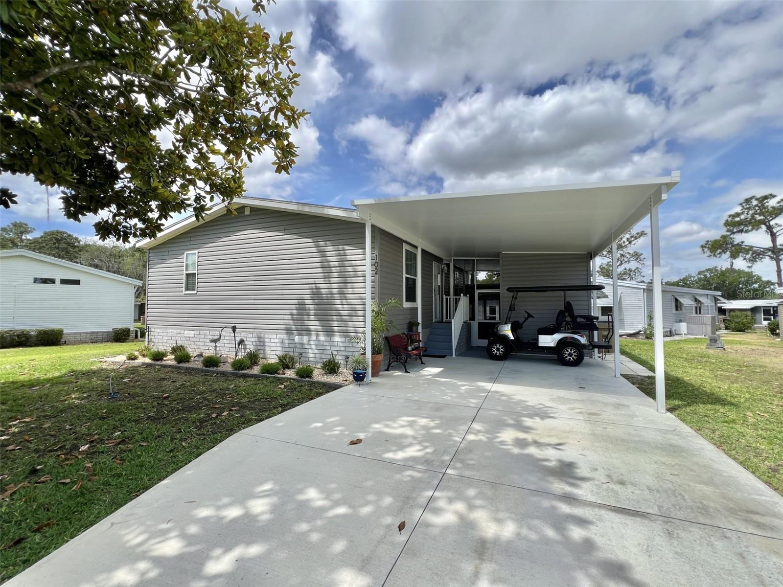 Don’t miss this 2023 Built 3 bedroom, 2 bath home located in the highly desirable Hawthorne at Leesburg! This charming home features a spacious open floor plan with tile flooring in the main living areas and plush carpeting in the bedrooms. The kitchen boasts rich wood cabinetry, updated countertops and stainless-steel appliances, perfect for meal prep or entertaining. The adjacent living room and dining space flow seamlessly, creating a warm and inviting atmosphere. The primary suite offers a walk-in closet and private bath with a shower/tub combo and elegant cabinetry. Two guest bedrooms are generously sized and can be used for visitors, a home office, or hobby space. The second full bath is conveniently located and features matching finishes. Highlights include: • Contemporary kitchen • Stainless steel appliances • Master suite with walk-in closet • Tile floors in main areas; carpet in bedrooms • Indoor laundry access • Fresh interior paint • Long driveway • Low-maintenance yard ............Hawthorne at Leesburg is an active, resident owned, 55+ cooperative, waterfront, gated community, with beautifully landscaped grounds, lakes with illuminated fountains and a relaxing and comfortable gazebo. The affordable monthly maintenance fee of $346 includes water, sewer, lawn mowing, private emergency services and storage space for recreational vehicles, boats, trailers and much more! The beautiful clubhouse is complete with a full-time program coordinator, more than 100 different activities and seating for 550. It has a hospitality lounge, card rooms, craft rooms, billiard room, fitness center, library, fine arts room and many more. There is excellent fishing, outdoor geo-thermally heated pool and two enclosed therapeutic pools. Hawthorne boasts a private marina monitored by an electronic security system with over 120 boat slips and access to the Harris Chain of Lakes and beyond.