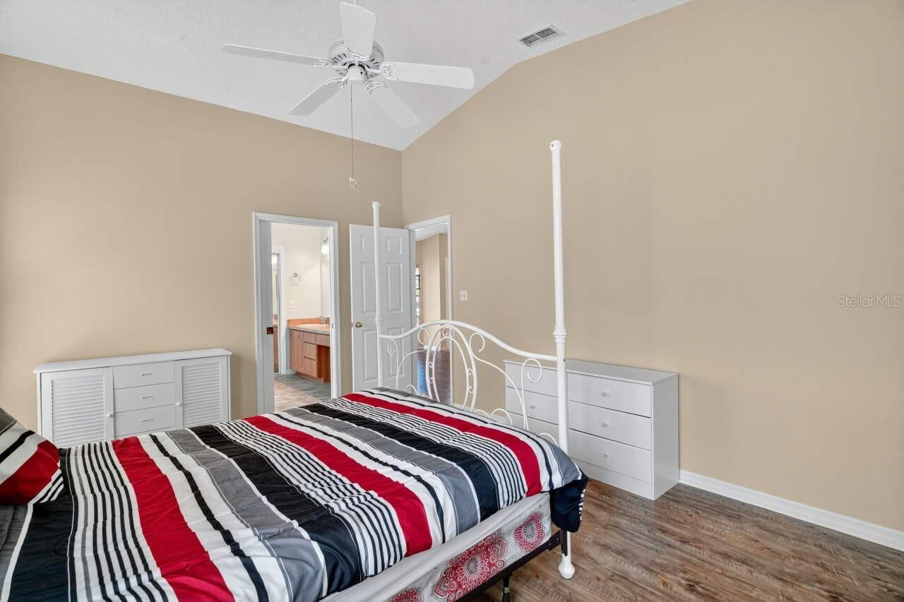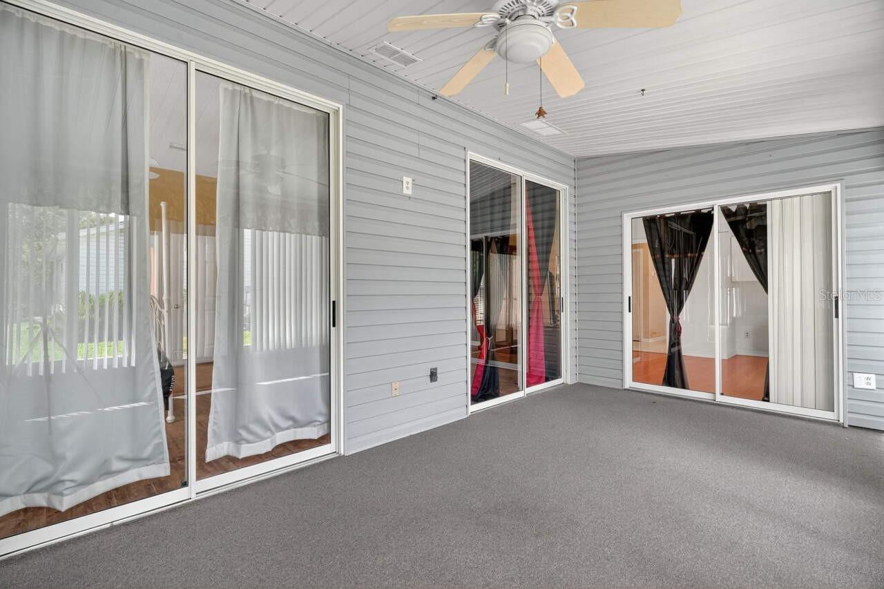 This home sits on a Large Corner Lot in The Plantation a stunning 55 and over golf community in beautiful Leesburg, Florida! Set on a corner lot, this 3-bedroom, 2-bath home with an enclosed and air-conditioned sunroom offers the perfect blend of comfort and style. Home offers a spacious, open layout, high ceilings, and formal dining and living areas. The kitchen features a walk-in pantry, a cozy breakfast nook, and a large snack bar that opens to the main living areas. Natural light pours in through a solar tube in the living room, enhancing the bright and airy ambiance. Modern light fixtures and a new ceiling fan add a stylish touch, while wood-look plank flooring continues throughout the master suite. The primary bedroom features direct access to the sunroom via sliding glass doors as does the the den/study. The enclosed sunroom is a great bonus space. Additional highlights include a dedicated laundry room and a spacious 2 car garage with built-in cabinets, a utility sink, attic access via pull-down stairs, and a workbench area. Located within The Plantation at Leesburg, a premier 55+ gated community boasting two championship golf courses, three clubhouses with heated pools and spas, fitness centers, pickleball, tennis, archery, and over 100 weekly activities—this home offers not just a place to live, but a lifestyle to love. Only 30–45 minutes to Orlando’s world-famous attractions and the international airport.