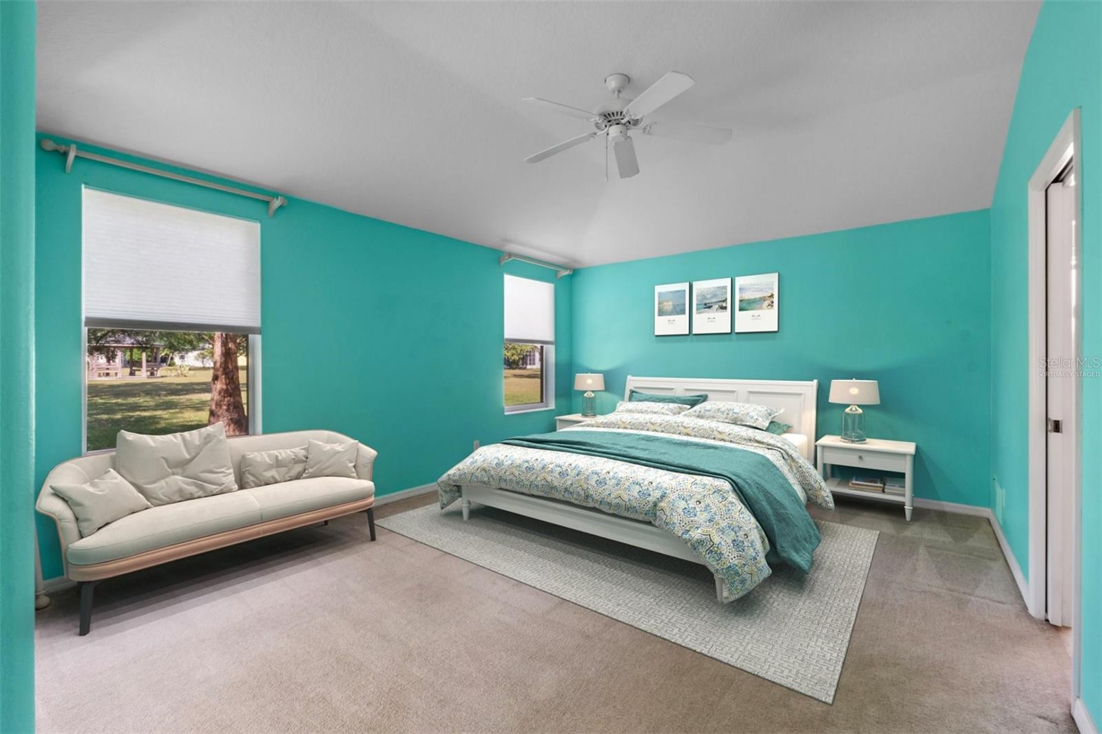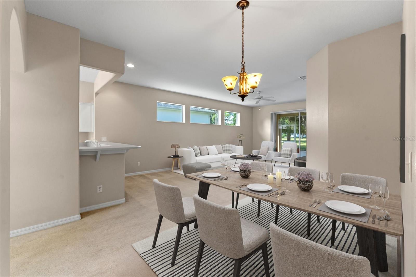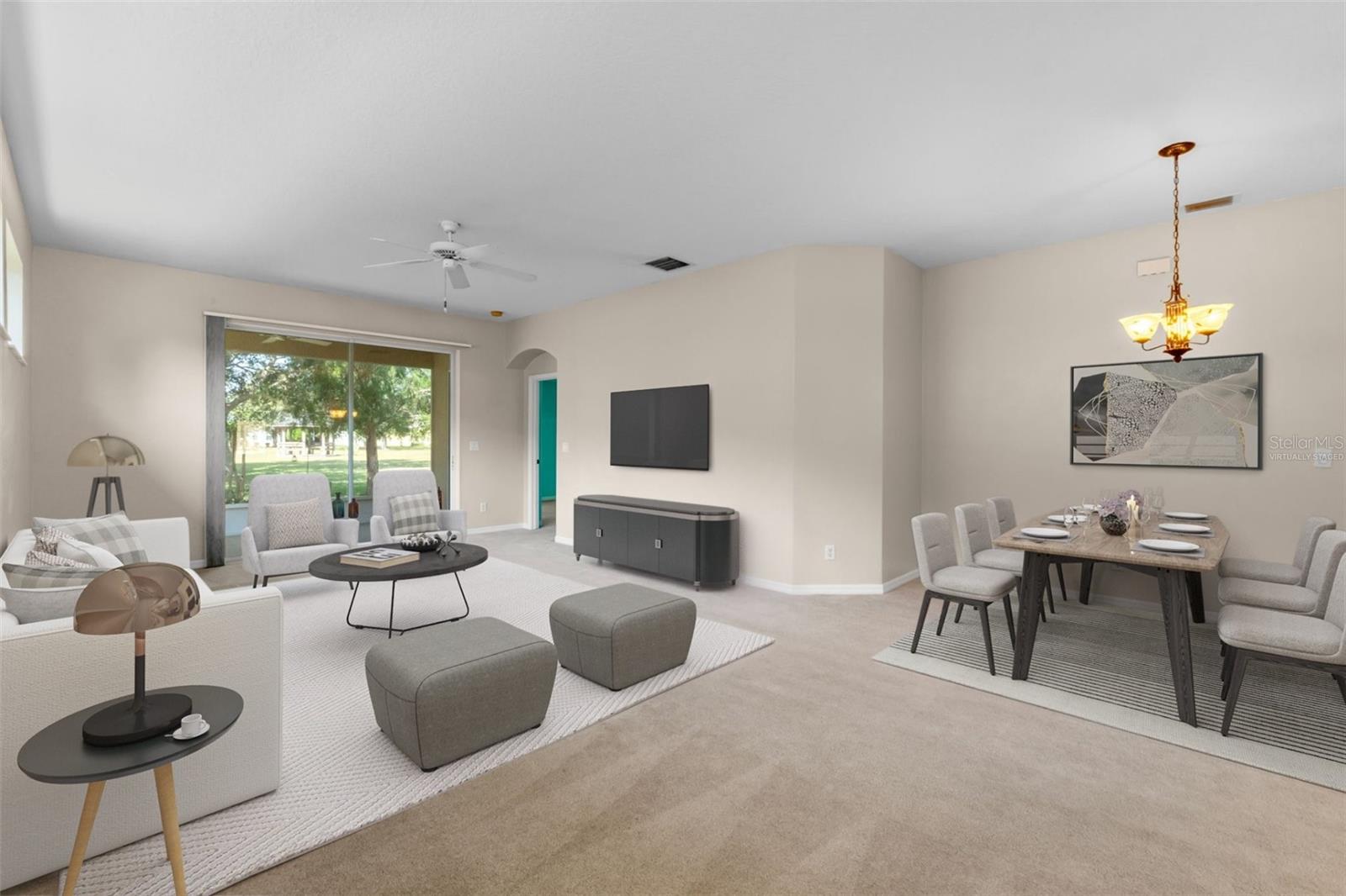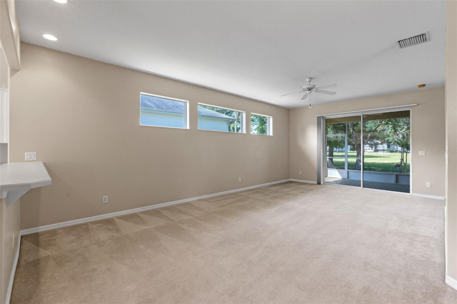 One or more photo(s) has been virtually staged. PRICED TO SELL ~ SELLER MOTIVATED. BRAND NEW ROOF with NEW GUTTERS & GUTTER GUARDS JULY 2025! You’ll love the curb appeal of this WELL-MAINTAINED CARLISLE model that offers just the right amount of space for active adults. When you enter through the LEADED GLASS FRONT DOOR, you can see the lovely “PARK AREA” in the rear of the home. The GREAT ROOM COMBINES LIVING AND DINING SPACES and the KITCHEN has an EAT-IN SPACE in a cozy bay of windows with plantation shutters. The MAIN BEDROOM has a spacious WALK-IN CLOSET, and an EN SUITE BATHROOM with DUAL SINKS, a SHOWER and a WINDOW. There are TWO GUEST BEDROOMS, or use one for an office. The guest bath includes a TUB/ SHOWER COMBO, and a window. Enjoy “PARK” VIEWS from the screened-in LANAI. The 2-CAR GARAGE has SLIDING SCREENS, a pull-down for ATTIC ACCESS, and PEGBOARD. Original upgrades include CUSTOM EXTERIOR ELEVATION, BULLNOSE CORNERS, CEILING FANS and KNOCKDOWN finish on the ceilings. A new HVAC SYSTEM was installed in 2018. Located in the premier GOLF COURSE, 55-plus community of ROYAL HIGHLANDS, residents enjoy a full range of amenities, including cable and high-speed fiber optic internet, a gated entrance with attendants, a golf course, a restaurant, tennis, pickleball, softball, indoor and outdoor pools, secured RV storage, bocce, shuffleboard, a fitness room, a library, arts and crafts, billiards, catch-and-release fishing, and a variety of clubs. There truly is something for everyone in this vibrant community! Make an appointment today to see this lovely cottage home.