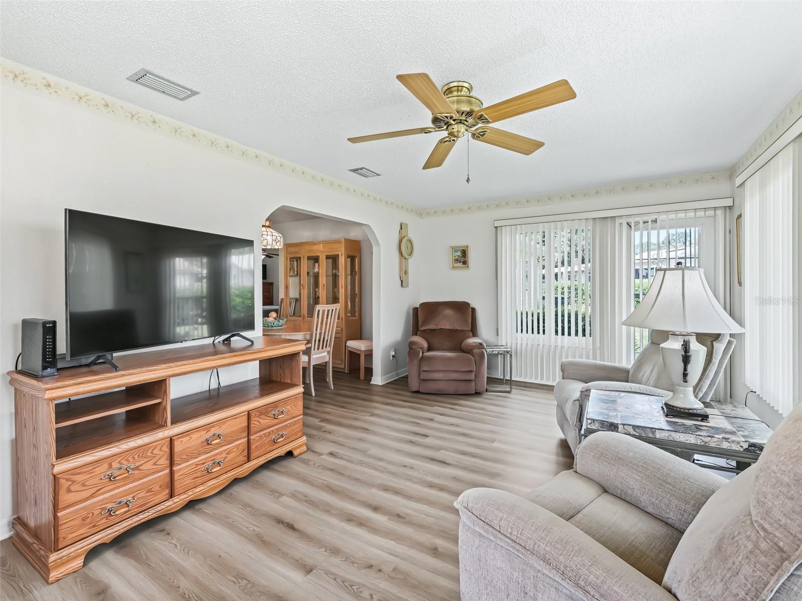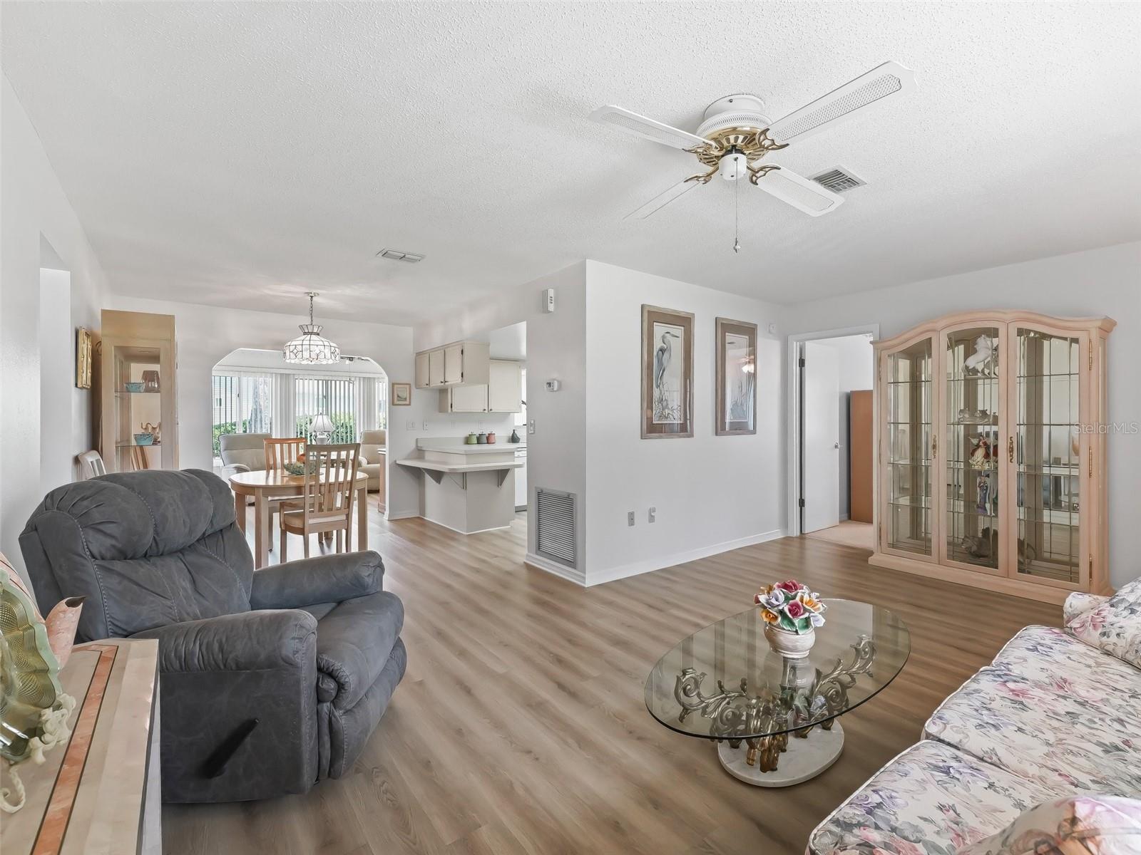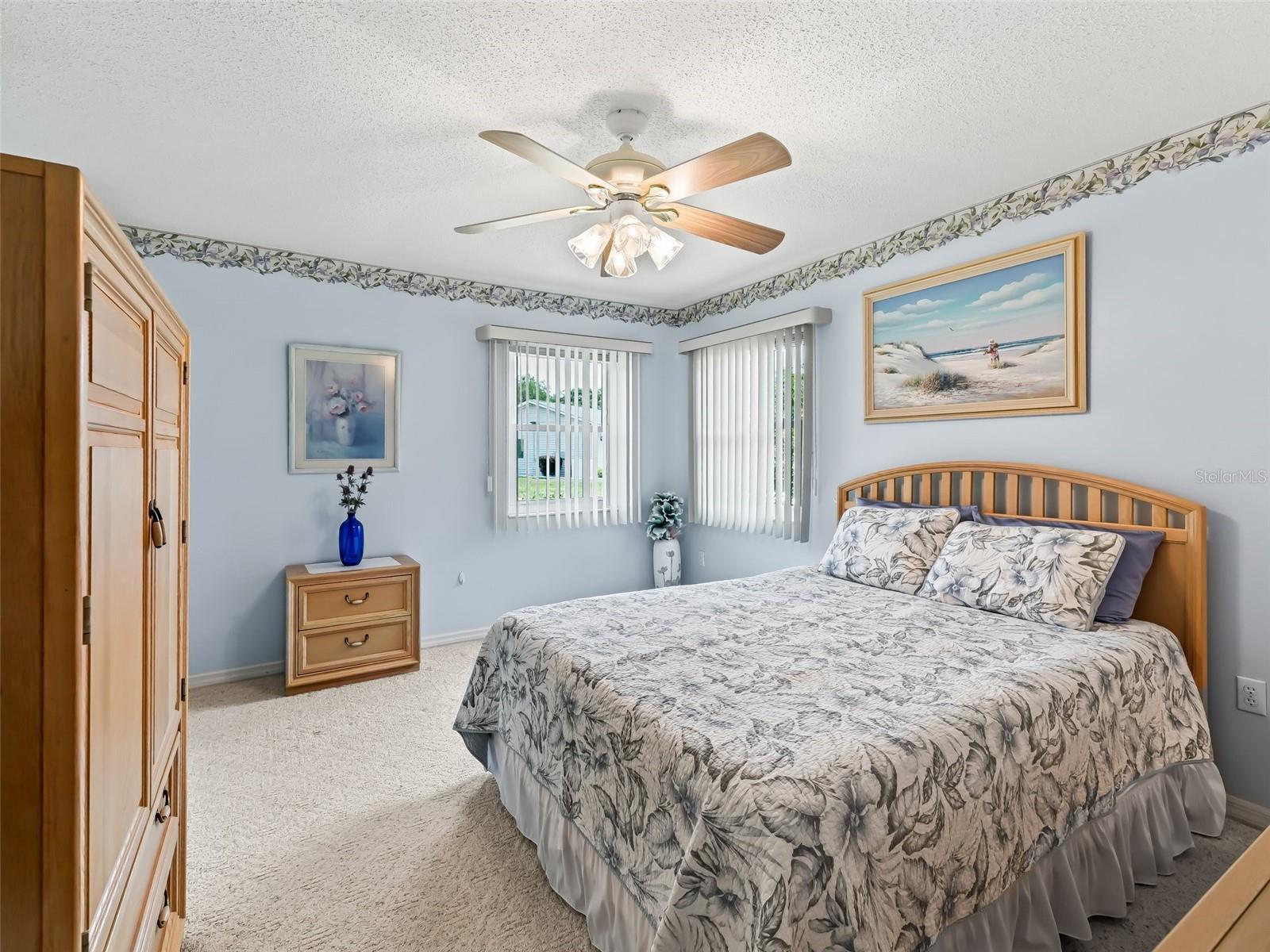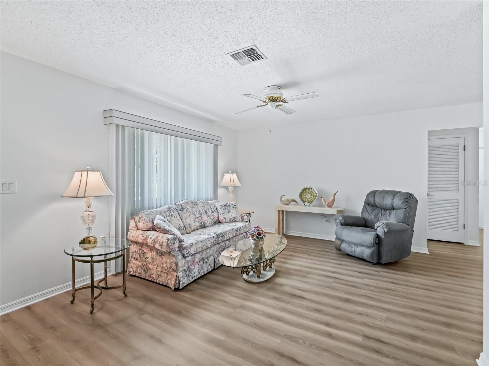 PRICE IMPROVEMENT - SCOTTISH HIGHLANDS CUSTOM BUILT ONE OWNER SPLIT PLAN HOME *** IRRIGATION WELL ** INTERIOR LAUNDRY ROOM WITH STORAGE CLOSET AND DOOR TO BACKYARD. LOCATED ON AN OVERSIZED CUL-DE-SAC LOT. THIS HOME IS IMMACULATE AND READY TO MOVE IN. **BRAND NEW BREAKER BOX 5/2025!**NEW HOT WATER HEATER 2025. ** NEW NEW ROOF IN 2017,** NEW AC/HVAC IN 2016, **FLOORS IN 2021, **NEW WASHER 2024, DEEP WELL FOR IRRIGATION 2012 WITH NEW PUMP IN 2021, GAS WATER HEATER IN 2011, TRIPLE PANE INSULATED WINDOWS 2001, NEWER GARAGE DOOR OPENER, CUSTOM PAINTED DRIVEWAY. OVERSIZED GARAGE 29 X 18. LUXURY VINYL PLANK FLOORING FLOWS THRU HOME FROM LIVING ROOM, DINING ROOM, KITCHEN,LAUNDRY ROOM AND BACK INTO THE FAMILY ROOM WITH NO STEP DOWN. As you approach you will see the gorgeous front yard graced with flowing flowery bushes with white picket fence. Enter into the large living room with view to dining area. Kitchen has breakfast bar, pantry, gas stove and pass thru to family room. Laundry room with swinging doors, additional pantry/storage and back entry. Primary bedroom on right side of home features 6’5” walk-in closet and tub/shower combo with updated countertop. Guest side of home has one bedroom with wall closet and has guest bath with wainscoting, updated countertop and large walk-in shower. Large family room in rear of home with view to expansive backyard with hedges for privacy. Termite bond, generator, screened garage door, gutters. ** Furniture as viewed in home all stay with house. You will see the pride of ownership the minute you arrive at this lovely home. Scottish Highlands has indoor Olympic size pool, spa, outdoor pool, recreation and clubhouse, tennis, pickleball and loads of activities to keep you busy. Convenient location close to shopping, restaurants, medical and worship facilities. View today and you will not be disappointed.