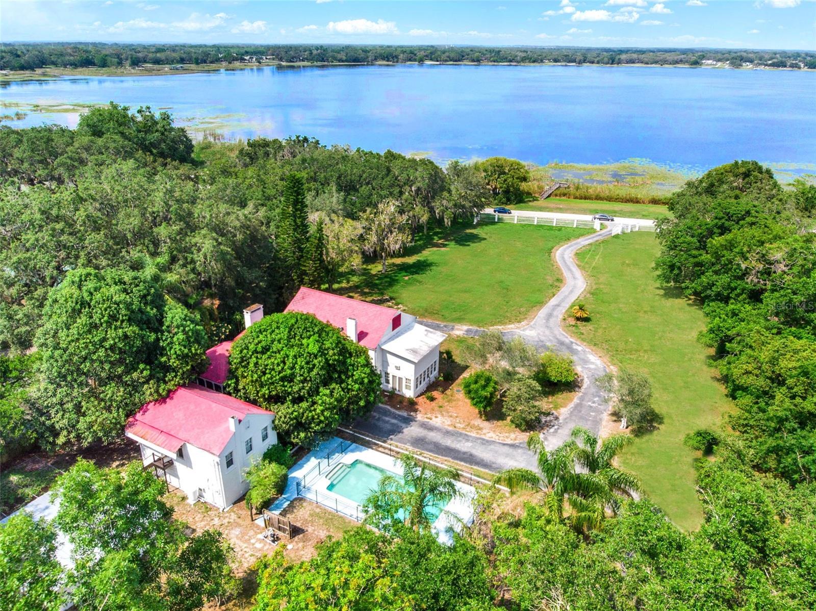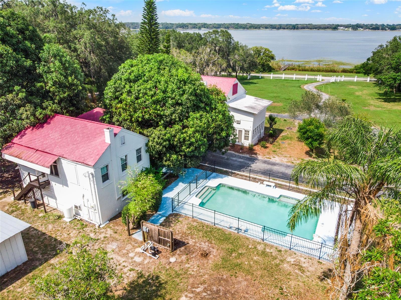 Welcome to a timeless and peaceful treasure nestled on the serene shores of Silver Lake in Central Florida. This stately Colonial-style residence sits on 2 lush acres and offers a rare blend of architectural grace, rich history, and modern comfort, with unobstructed lake views, an in-ground pool, and a private boat dock for your waterfront lifestyle. Step inside the main home, boasting over 3,000 square feet of living space, and be transported to another era. While the exterior reflects classic Georgian Colonial symmetry, the interior exudes Victorian elegance, with intricate details, original hardwood floors, and two stunning fireplaces anchoring the living spaces. The home offers 3 spacious bedrooms and 3 full bathrooms, each room echoing stories of the past and possibilities for the future. Adding to its allure is a detached two-story guesthouse featuring 2 bedrooms and 2.5 bathrooms—ideal for extended family, guests, or rental potential. Outdoors, the magic continues - Take a swim in the lake-facing pool, surrounded by mature landscaping. Enjoy sunsets on your private dock or pick from your own fruit trees, including mango, avocado, papaya, lemon, passionfruit, banana, neem and moringa. Conveniently located just a short drive from Disney theme parks, Orlando International Airport, and a short road trip to both the Atlantic and Gulf Coast beaches, this home is truly at the heart of everything—yet feels worlds away. According to local folklore, this guesthouse once hosted the iconic actress Elizabeth Taylor, during a visit to her daughter and the son of the original owners. They don't make 'em like this anymore. In a world of "cookie-cutter" homes, don’t miss the opportunity to own this one-of-a-kind Central Florida gem steeped in character. Will you be the next owner of this exceptional lakeside estate? Schedule your private showing today. Sellers will consider all offers.