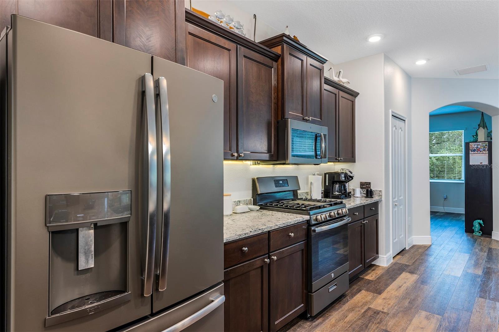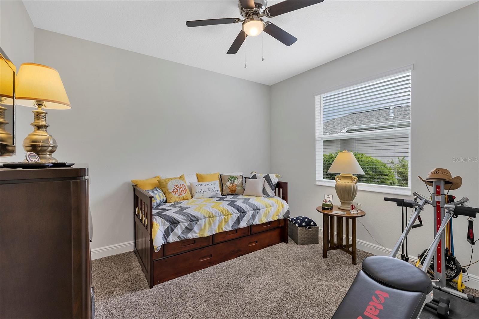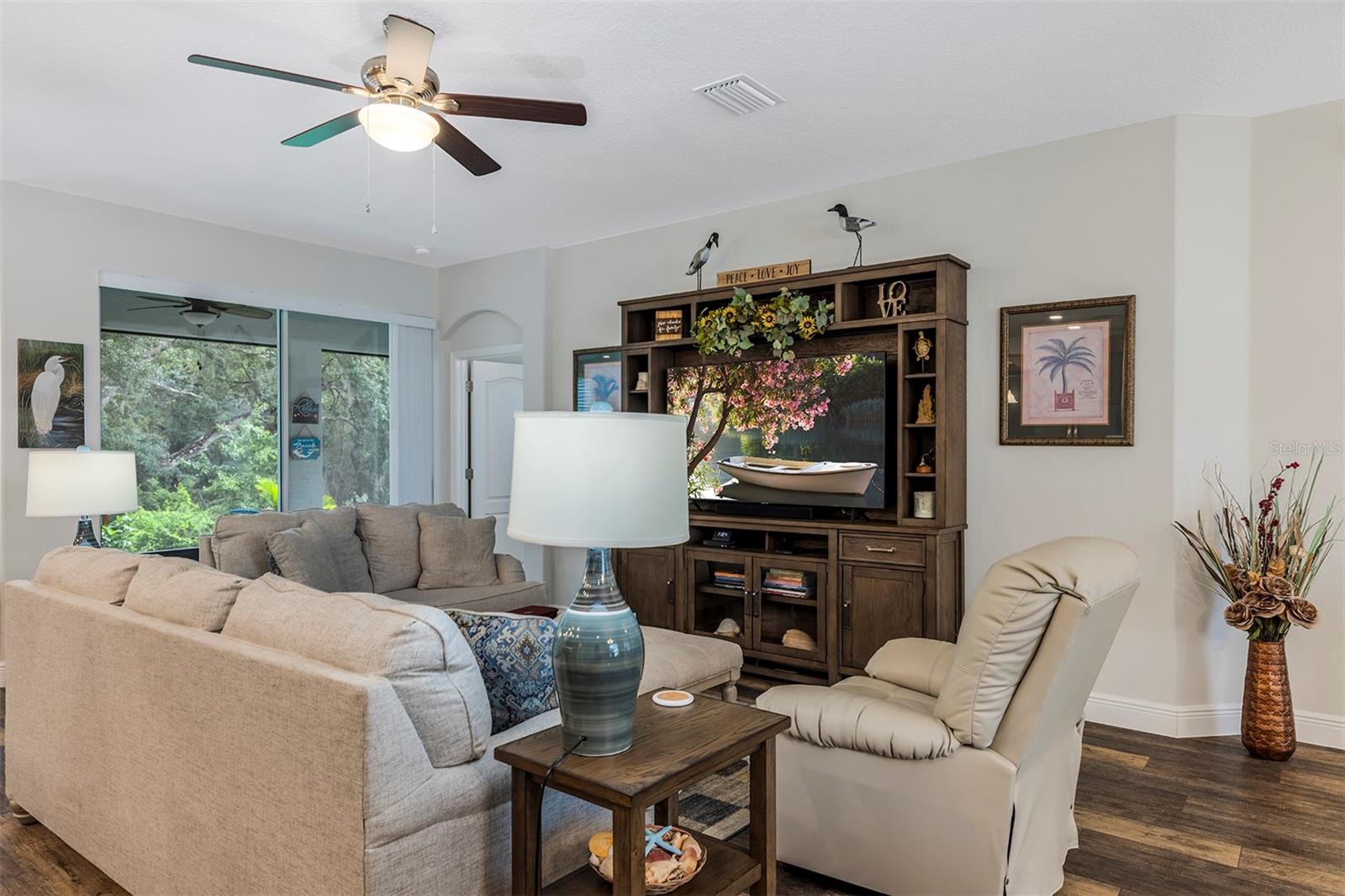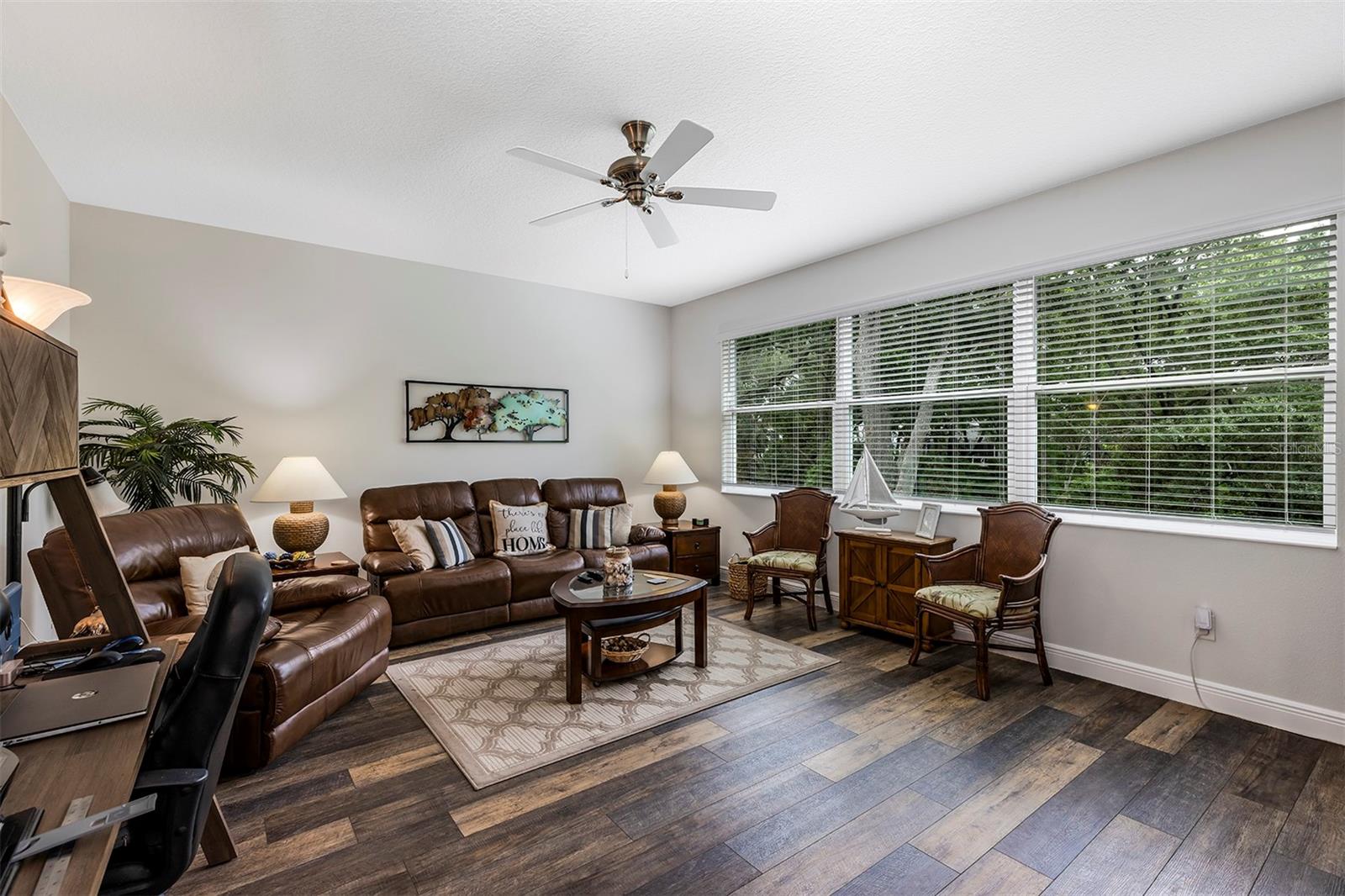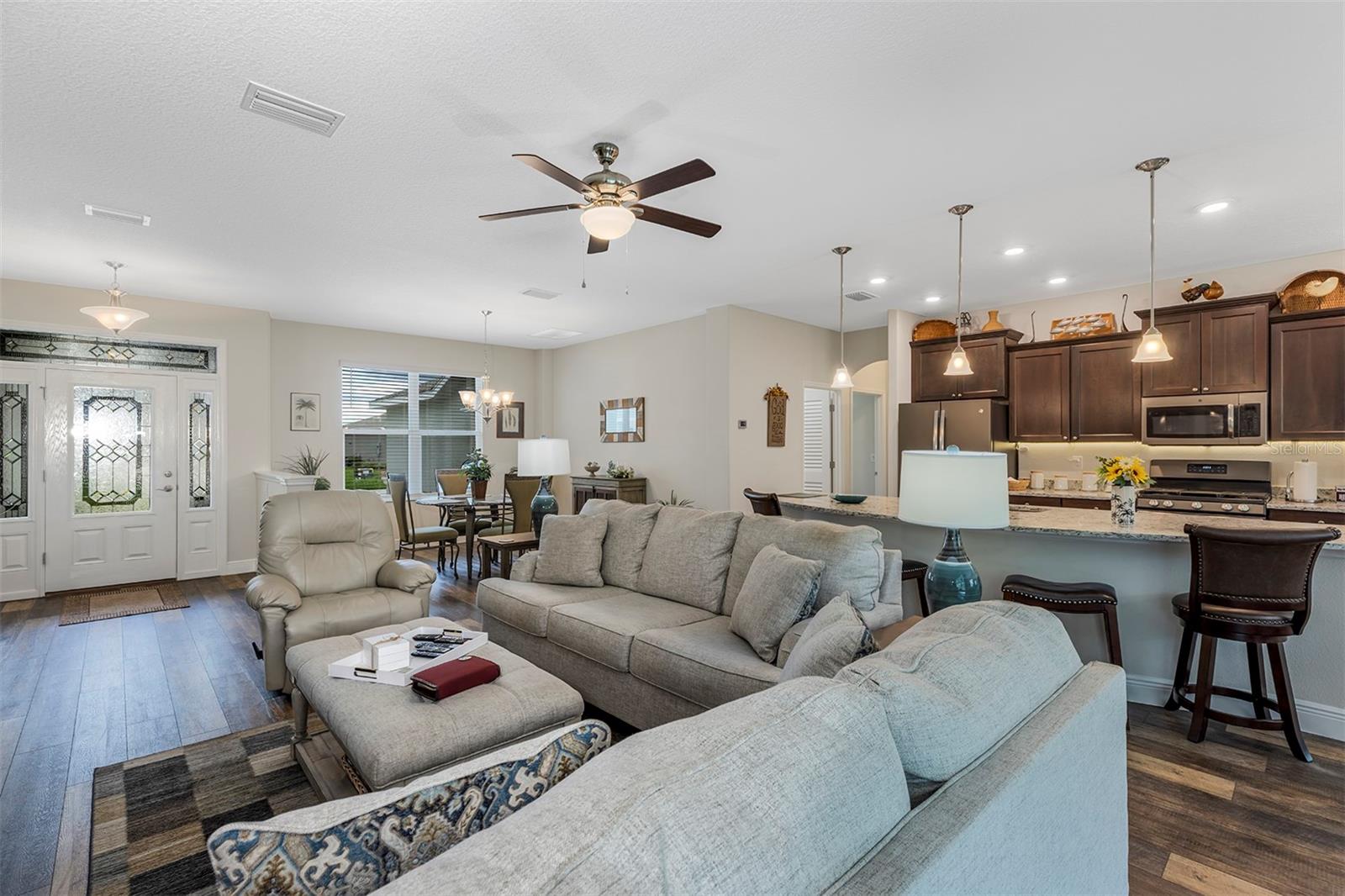 RARE OFFERING ON ONE OF THE MOST VALUABLE LOTS IN THE COMMUNITY $90,000 Premium Lot! (GREENBELT/CONSERVATION VIEW) BOND PAID OFF, AFFORDABLE GATED GOLF ACTIVE-ADULT COMMUNITY LIVING, Low-Maintenance Block & Stucco 3 Bedroom 2 bath home with 2 car garage plus separate golf cart garage built in 2020 garage has pull-down stairs to attic with floored area for extra storage, Huge 18x15 Family Room and living room both overlooking the greenbelt view, A mature upgraded landscape package welcomes you to this Custom Home built in 2020 Located in Highly sought after Arlington Ridge , A Guard Gated & Active Adult Golf Community. Discover a lifestyle of comfort and leisure you've waited for your whole life for, Very Low HOA of $124 per month includes, mowing, trimming & blowing of lawn Wi-Fi router for signal coverage throughout the home, 200+ cable TV channels, and 250-megabyte high-speed internet. Two DVRs are also included for recording your favorite shows which is all included, Low-maintenance stucco construction. situated on golf course, sidewalks and underground utilities for more luxurious feel . Living room boast open-concept floor plan and main areas rooms have low-maintenance luxury vinyl and high ceilings enhancing the sense of space and inviting atmosphere. The modern design has rounded corners on sheetrock, Kitchen features abundant wood cabinets w/pull-outs, granite counter-tops with long bar-top dining & closet pantry. The stainless-steel 5 burner natural gas range and double door stainless fridge are included, a breakfast nook and separate dining room. The master bedroom features an en-suite bath with dual vanities w/ granite tops, a walk-in Roman shower, for added safety, private water closet, Extra Large walk-in closet . Split Plan for guest bedrooms provides ultimate privacy. ALL ROOMS HAVE 9 FOOT CEILINGS FOR EXTRA SENSE OF SPACE, Indoor laundry room with large extra pantry. 220+ s.f. covered & screened lanai with a conservation view. home is located in low wind zone being in the center of the state. Benefit from huge discounts on homeowner's insurance due to the home's high construction standards being built to wind code, high & dry elevation for flood protection, and a low wind zone, also qualifying for additional insurance discounts. The low HOA of $125/month makes this community even more affordable than nearby communities This coveted community offers a wide range of amenities, including an 18-hole golf course where you can get a tee time year round, driving range, putting greens, YOU DO NOT HAVE TO PURCHASE A SOCIAL OR GOLF MEMBERSHIP TO LIVE IN COMMUNITY OR PLAY GOLF, lighted tennis and pickleball courts, heated swimming pools, hot tub, fitness facilities, billiards, a restaurant, tavern, and a free movie theater. The community is golf cart-friendly, with sidewalks for strolls and low-speed limit streets perfect for bicycling. Enjoy the convenience to grocery stores, restaurants, banks, and pharmacies within a 5-minute drive. Emergency services are just 10 minutes away, and a free boat ramp and fishing pier on a 15,000-acre lake are nearby. Community is 20 minutes from malls, restaurants, and a 12-screen movie theater, 45 minutes from Orlando, Major theme parks, and the airport, 90 minutes to Daytona Beach & Atlantic Ocean and Gulf of Mexico Clearwater. Home is not homesteaded, Living in home year round and homesteading will reduce property tax bill SJS 2025©