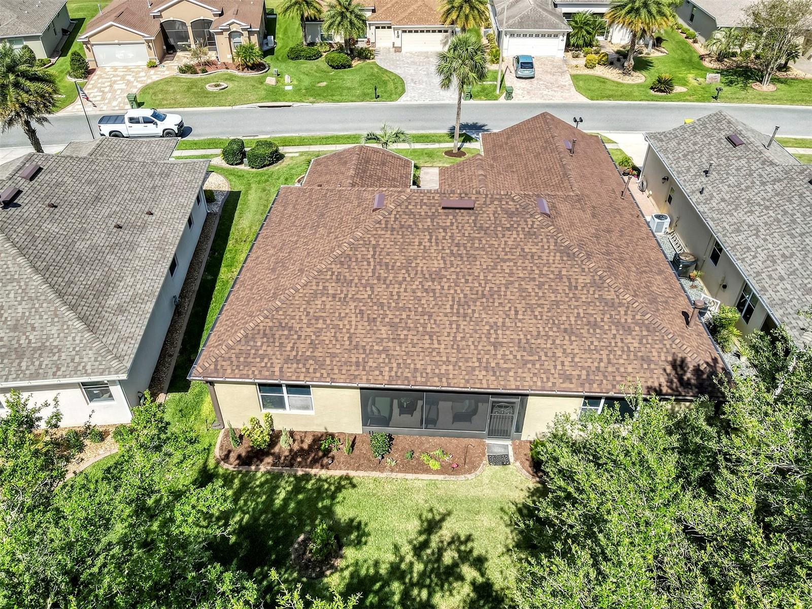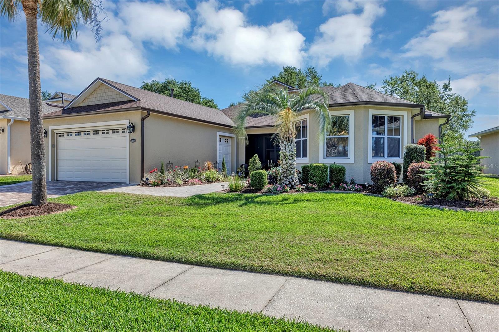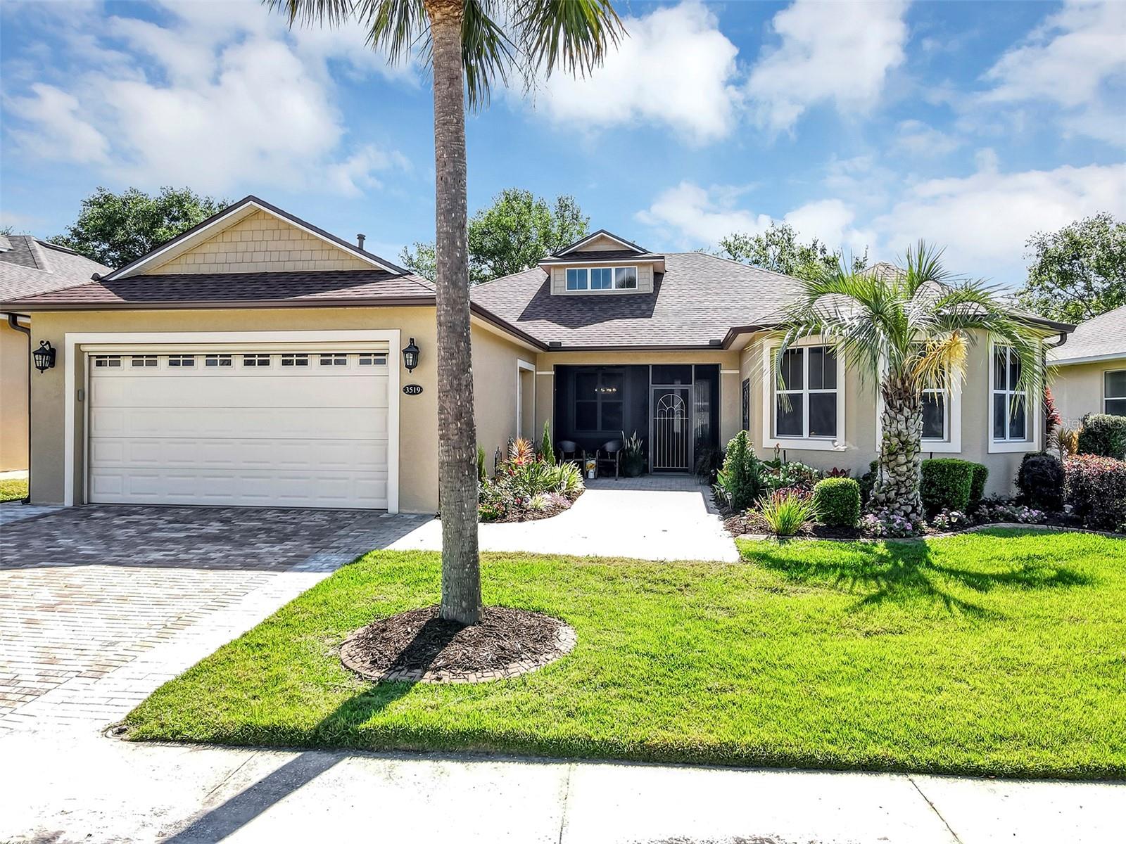 Like New With A Personality One of the top 10 nicest homes in the community after the massive recent renovations in 2024 Inside & Out, New from top to bottom, Flooring to Roof and nearly everything in between, Affordable Low-Maintenance Stucco Home in Guard Gated, Active Adult Golf Community. Discover a lifestyle of comfort and leisure you've waited for your whole life for in this charming home You're welcomed by extra wide paver driveway and sidewalk, outdoor sitting area and covered and screen front porch Located in the popular, high-demand Arlington Ridge Guard Gated Golf Community With a low HOA of $126 per month that includes basic lawn care, cable tv and internet , this 2 bedroom 2 bath with Office and a separate den with fireplace with OVER-SIZED 2 CAR GARAGE WITH SIDE ENTRY GOLF CART GARAGE FOR BETTER CURB APPEAL. home boasts exquisite design and decoration. Located only a short walk of only 1 block to amenities or take your golf cart in this golf cart friendly community. Living room boast open-concept floor plan and high ceiling to enhance the sense of space and inviting atmosphere and overlooks the golf course and pond through sliding doors providing a view of private backyard. This modern design has (NO CARPET!) Only low-maintenance luxury vinyl plank and tile flooring and 9 foot ceilings throughout, Kitchen features pantry, new top of the line wood cabinetry with pull-outs, $10,000+ in new quartz counter-tops in kitchen & baths. The stainless steel range and fridge are included. The large master bedroom offers scenic view of golf course and features an en-suite bath with dual vanities w/ granite tops, a walk-in Roman shower for added safety and Garden Tub is ready for a hot bubble bath, private water closet and his & hers walk-in closets, Indoor laundry room with cabinets and sink, Washer & Dryer are included. Outdoor space includes 19 foot long covered & screened lanai over-looking the golf course is perfect for entertaining or simply relaxing. If you're looking for paradise, You've found it. Benefit from huge discounts on homeowner's insurance due to the home's high construction standards being built to wind code, high elevation for flood protection, and a low wind zone, also qualifying for additional insurance discounts. Renovations include New Roof & Gutters, New A/C, Water heater, LVP flooring & 5 inch baseboards, new cabinets, back-splash & granite counter-tops, newly painted in & out, new gas fireplace, light fixtures & ceiling fans on front and back porches. The low HOA of $126/month making this community even more affordable than nearby communities This sought-after community offers a range of amenities, including an 18-hole golf course where you can get a tee time year round, driving range, putting greens, lighted tennis & pickleball courts, heated swimming pools, hot tub, fitness facilities, billiards, a restaurant, tavern, and a free movie theater. The community is golf cart-friendly, with sidewalks for strolls and low-speed limit streets perfect for bicycling. Enjoy the convenience to grocery stores, restaurants, banks, and pharmacies within a 5-minute drive. Emergency services just 10 minutes away, Free boat ramp & fishing pier on a 15,000-acre lake are nearby. Community is 20 minutes from malls, restaurants, and a 12-screen movie theater, 45 minutes to Orlando, Major theme parks, and the airport, 90 minutes to Daytona Beach & Atlantic Ocean and Gulf of Mexico Clearwater