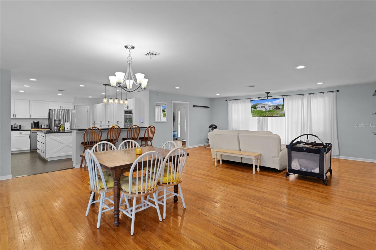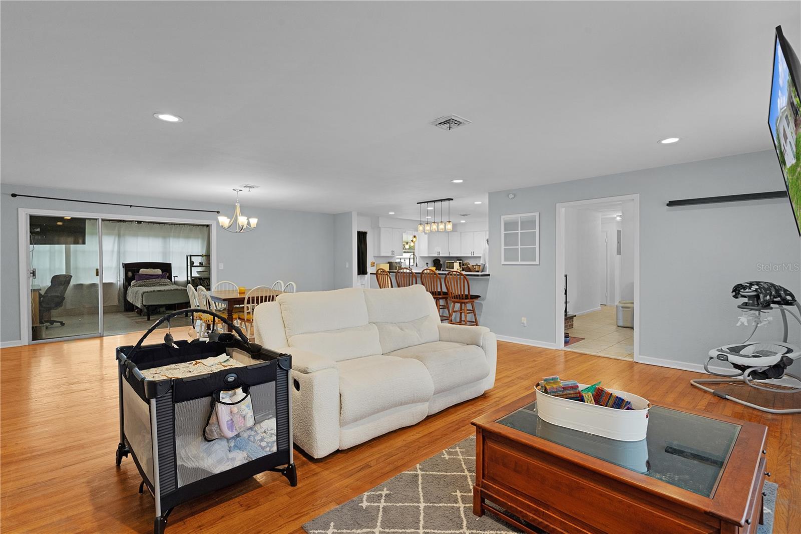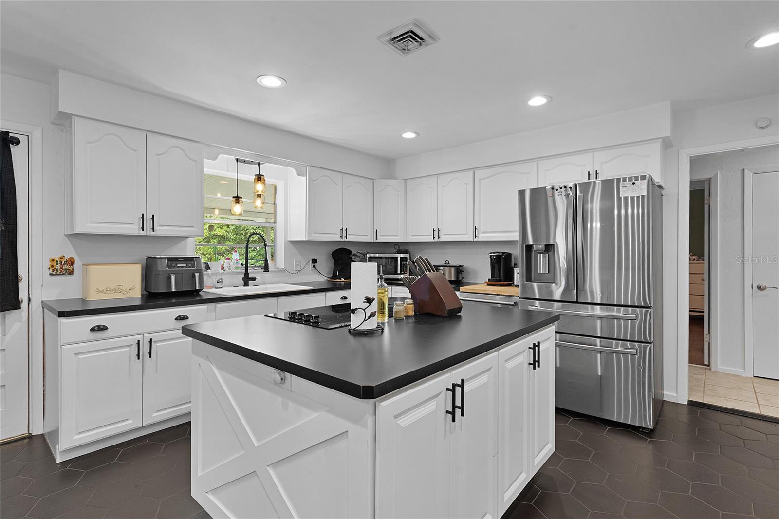 Welcome to this beautifully remodeled 3-bedroom, 3-bath block home offering the perfect blend of comfort, style, and convenience. With a spacious open-concept layout, this home is designed for both everyday living and entertaining. Step into a fully renovated kitchen! You’ll love the abundance of cabinetry, generous counter space, center island with built-in cooktop, and barstool seating – perfect for casual meals or hosting family and friends. The light-filled living and dining areas flow seamlessly, creating an inviting atmosphere throughout. Each of the three bedrooms offers ample space, and the three full bathrooms provide comfort and privacy for everyone. Enjoy Florida living at its best with both a charming front porch and a serene back porch – ideal for morning coffee or relaxing evenings outdoors. The tranquil yard and quiet surroundings offer a peaceful retreat while still being just minutes from major shopping, dining, and local amenities. Don’t miss your chance to own this beautifully updated home in a sought-after Leesburg location. Schedule your private tour today!
