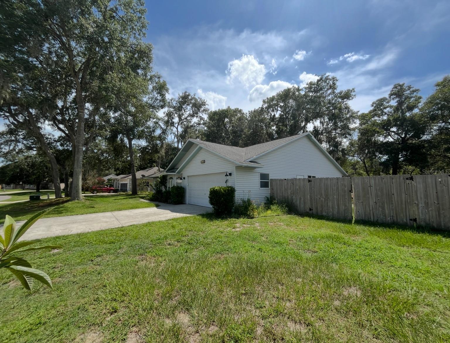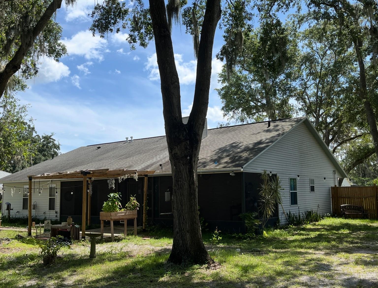 PRICE ADJUSTMENT! Welcome to Riverside Community. Your 3-bedroom, 2-bath home with a 2-car garage offering perfect blend of comfort, charm, and outdoor enjoyment. Situated in a peaceful neighborhood with community boat ramp onto Haines Creek, you'll enjoy direct access to the Harris Chain of Lakes—a boating paradise! The open-concept layout features stacking sliders leading to a spacious screened lanai, seamlessly blending indoor and outdoor living. The modern kitchen and charming breakfast nook with bay window and southeast exposure offer serene sunrise views. The split floor plan ensures privacy for both homeowners and guests. The Master Suite features private access to the lanai, along with a spa-like en-suite bath with dual sinks, a garden tub and a walk-in shower. Two additional bedrooms and a full guest bath with tub/ shower combo complete the layout. Outside, the large, privacy-fenced backyard is like a walk-through old Florida—perfect for pets, play, gardening, etc. Hang your bird feeders and enjoy. Make the call!