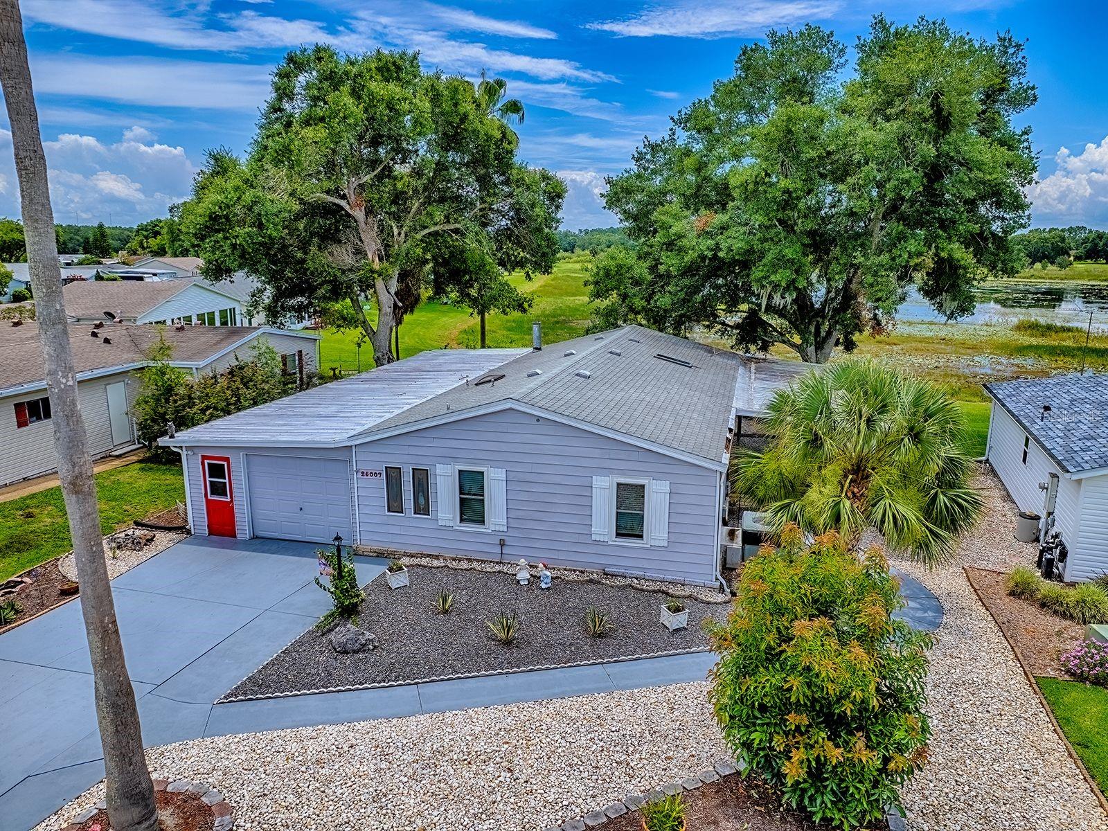 The perfect home for peace and tranquility! Enjoy beautiful views of Planters Pond from your back deck or tree swing. This home offers two spacious bedrooms, two upgraded bathrooms with new vanities and flooring and a spacious garage with extra storage. The lanai is extra large and made for comfort. The roof and windows were replaced in 2014, a/c replaced in 2007. The water heater and stove were converted to propane in 2014. Laminate flooring in the living room with a wood burning fireplace for those chilly winter nights and romantic evenings. This home is a nature lovers dream!! The Plantation at Leesburg is a desirable 55+ community with two 18 hole championship golf courts, along with a driving range and putting green. There are 3 heated pools, each with a jacuzzi, two fitness centers (one with a steam and sauna room), billiards room, tennis and pickleball courts, an on-site restaurant with pub area and full liquor bar, and over 100 activities scheduled every week. The Plantation is located in Central Florida, about 40 minutes from Orlando and 90 minutes from the beaches.