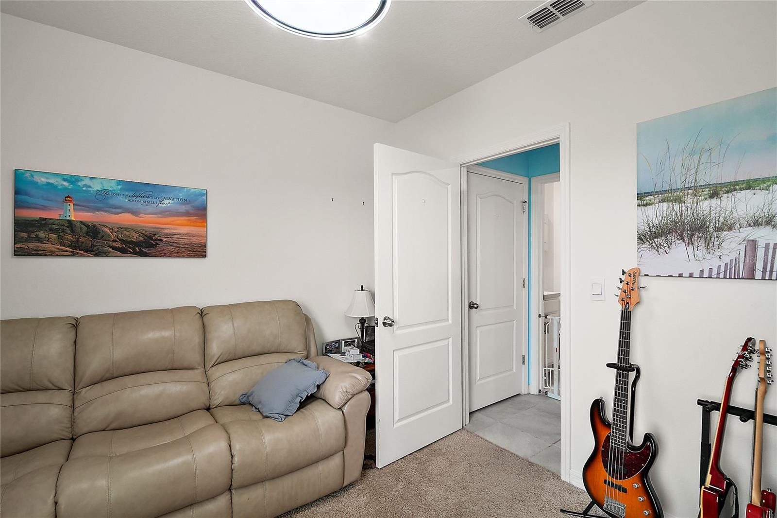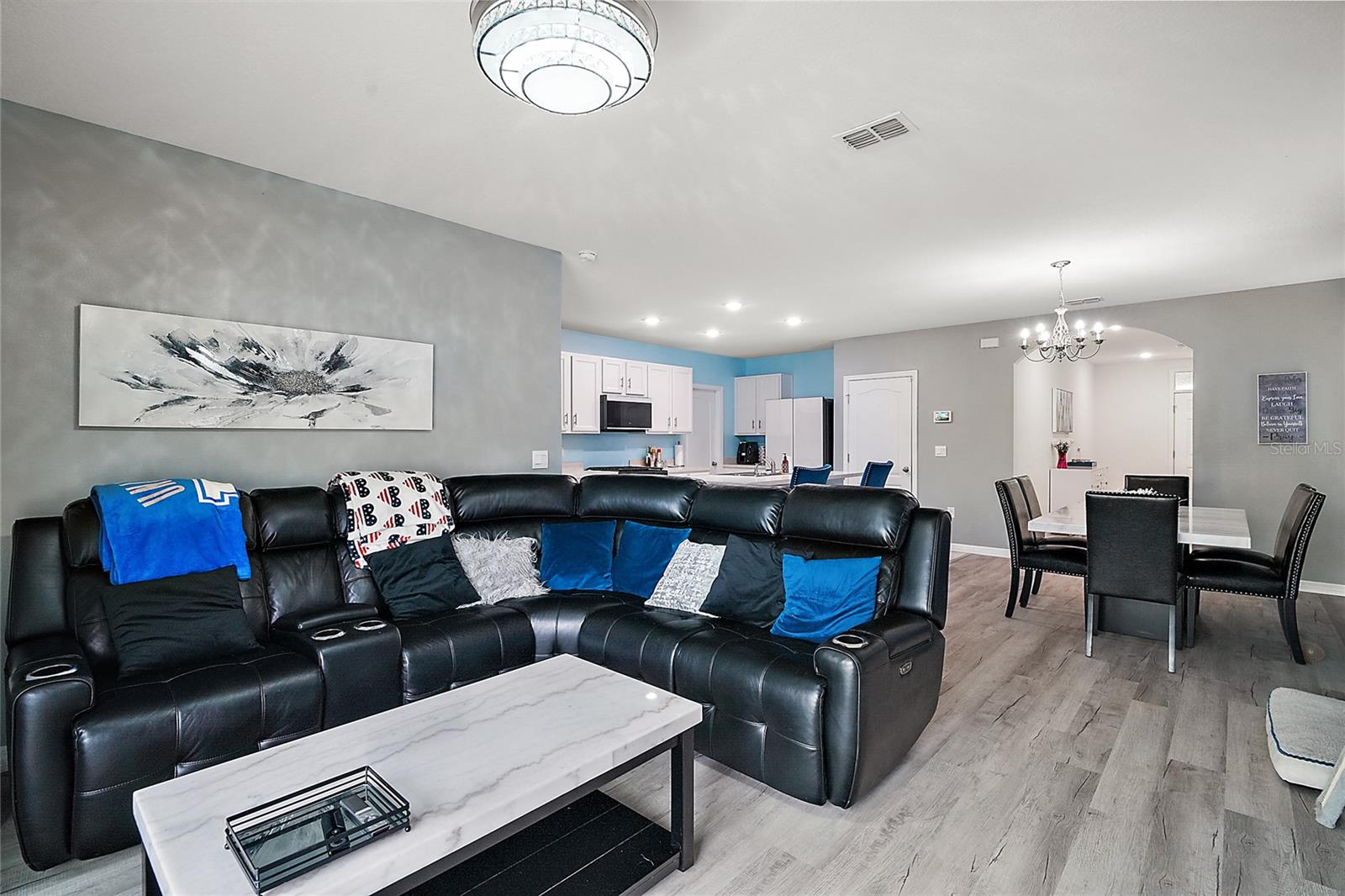 Welcome home to this 2021 Construction home in Lake Denham Estates in South Leesburg. Located just moments from the newest construction in The Villages and Lake Harris, this 5 bedroom 3 bath home is perfect for any couple or large family. Pulling up to your home you will notice everything is virtually brand new! Walking in you will be greeted with a large tiled foyer leading you in to upgraded Luxury Vinyl Plank throughout your open living area. An open kitchen with breakfast bar is accentuated by top of the line Samsung appliances (a $10,000 upgrade). A large walk in pantry is a plus along with a full bathroom downstairs, just off the guest bedroom. The dining area and Living room occupy the rest of the first floor and host a view of the vinyl fenced backyard through a set of sliding glass doors to the rear. Walking upstairs, you land in a 9x14 loft area, currently used as a reading room. The oversized Primary bedroom suite sits to your right and boasts an amazing custom walk in closet upgrade that is a must see. Three more bedrooms and a guest bath sit up stairs along with a dedicated laundry room. One bedroom is being used as a craft room, currently, and one as an office. Other bonuses are a finished 2 car garage, an ADT smart home security system, Gas on demand water heater and a resort style community pool. Located off of US 27 South about 25 minutes to Clermont, 45 to an hr from most all of Orlando including Disney, Universal and the Airport, moments to the I-75 exit leading you South to Tampa / St Pete / Sarasota, and a stones throw from the Harris Chain of Lakes. Come take a look today while this amazing home lasts!