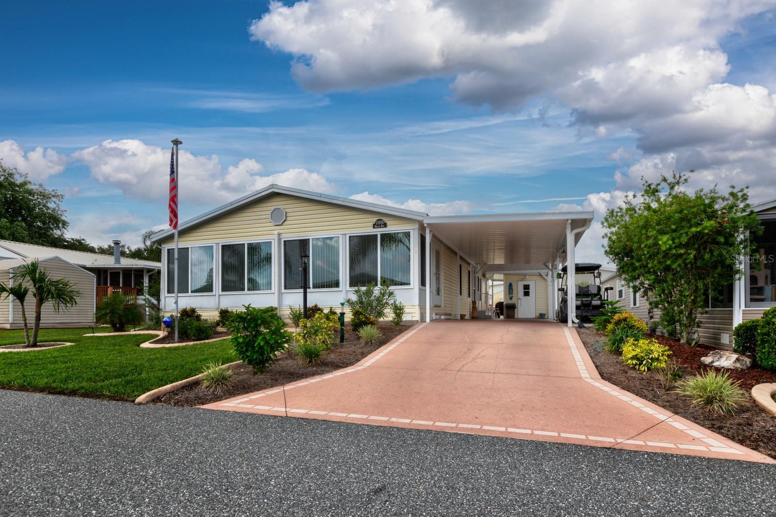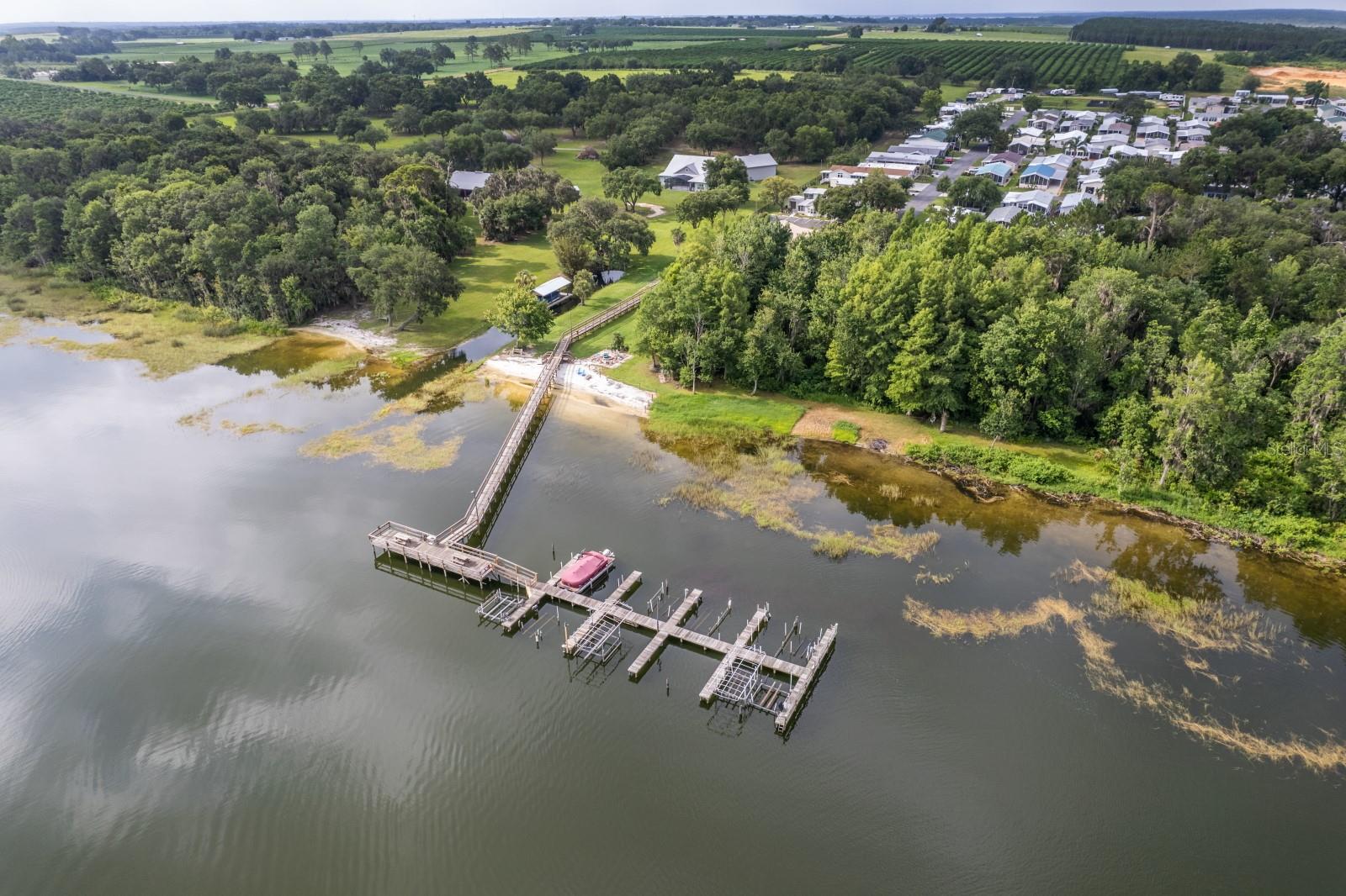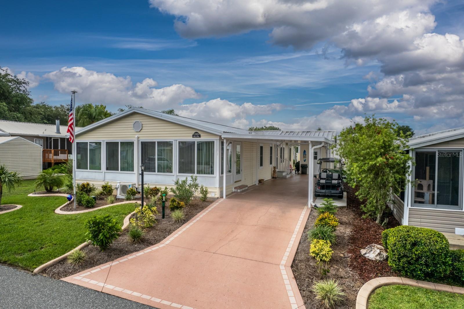 Nestled in the heart of Lake Yales premier 55+ resident-owned mobile home community, this exquisite 3 bedroom 2 bath, 1566 square-foot manufactured home offers an unparalleled lifestyle. Enjoy the elegance of a meticulously renovated residence, featuring; new windows, new doors, flooring, storm doors with screen and glass, new paint, custom closet shelving, and beautifully remodeled bathrooms with bespoke cabinet organizers. The property, surrounded by fresh landscaping, includes two versatile sheds—climate controlled eight-by-twelve under the carport and an eight-by-eight detached workshop—perfect for hobbies or storage. A pristine home including a painted driveway and a 2005 golf cart enhance convenience, while lawn maintenance is effortlessly handled by the community. Relish exclusive amenities like HOA-managed RV and boat storage, leasable boat slips, a private dock, a clubhouse, a heated pool, a soothing hot tub, a pool table, and a fire pit overlooking a serene sandy beach with direct lake access. Whether seeking a year-round sanctuary or a winter escape, this Lake County gem is close to vibrant outdoor recreation, dining, and entertainment. It beckons you to experience refined retirement living—schedule your visit today!