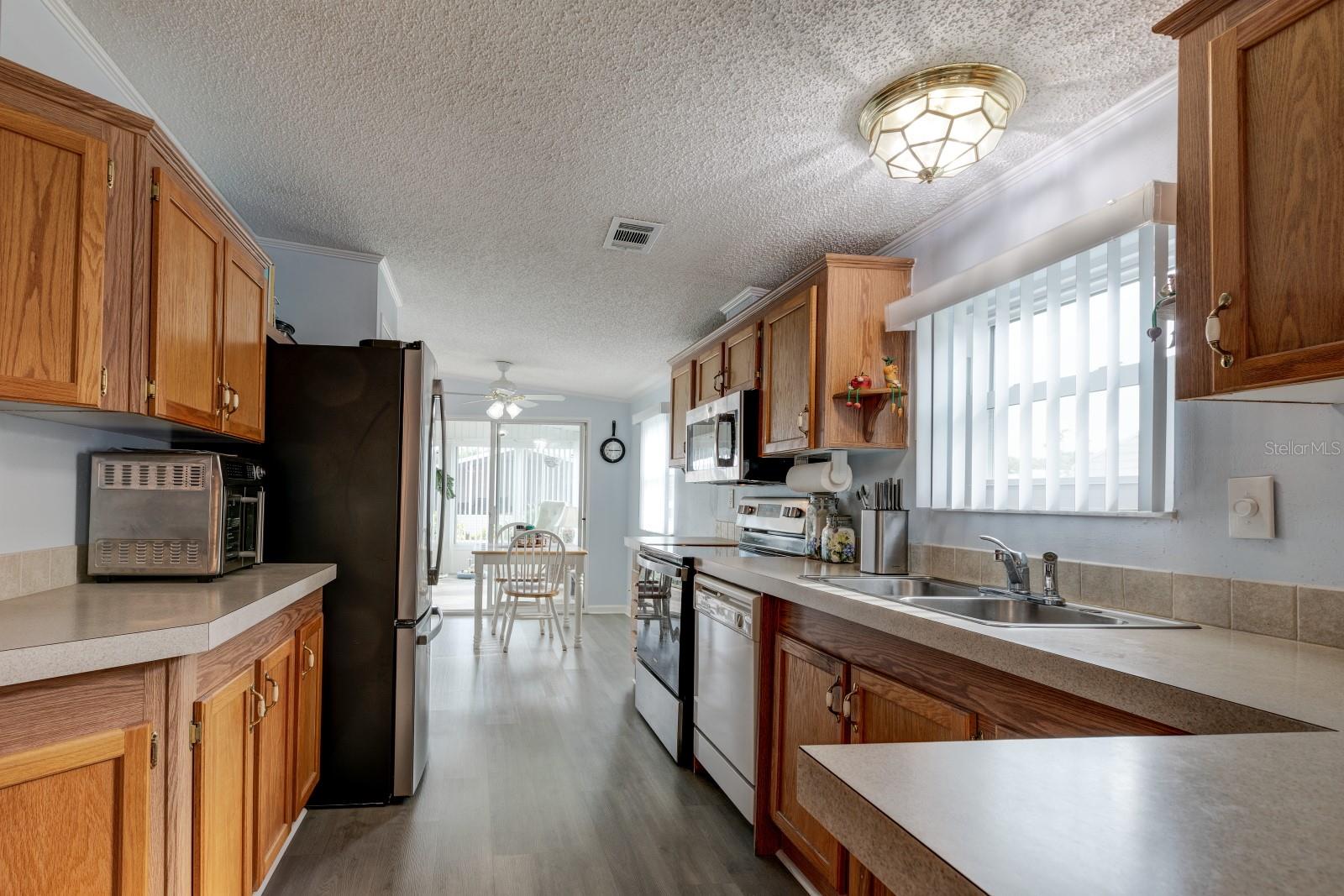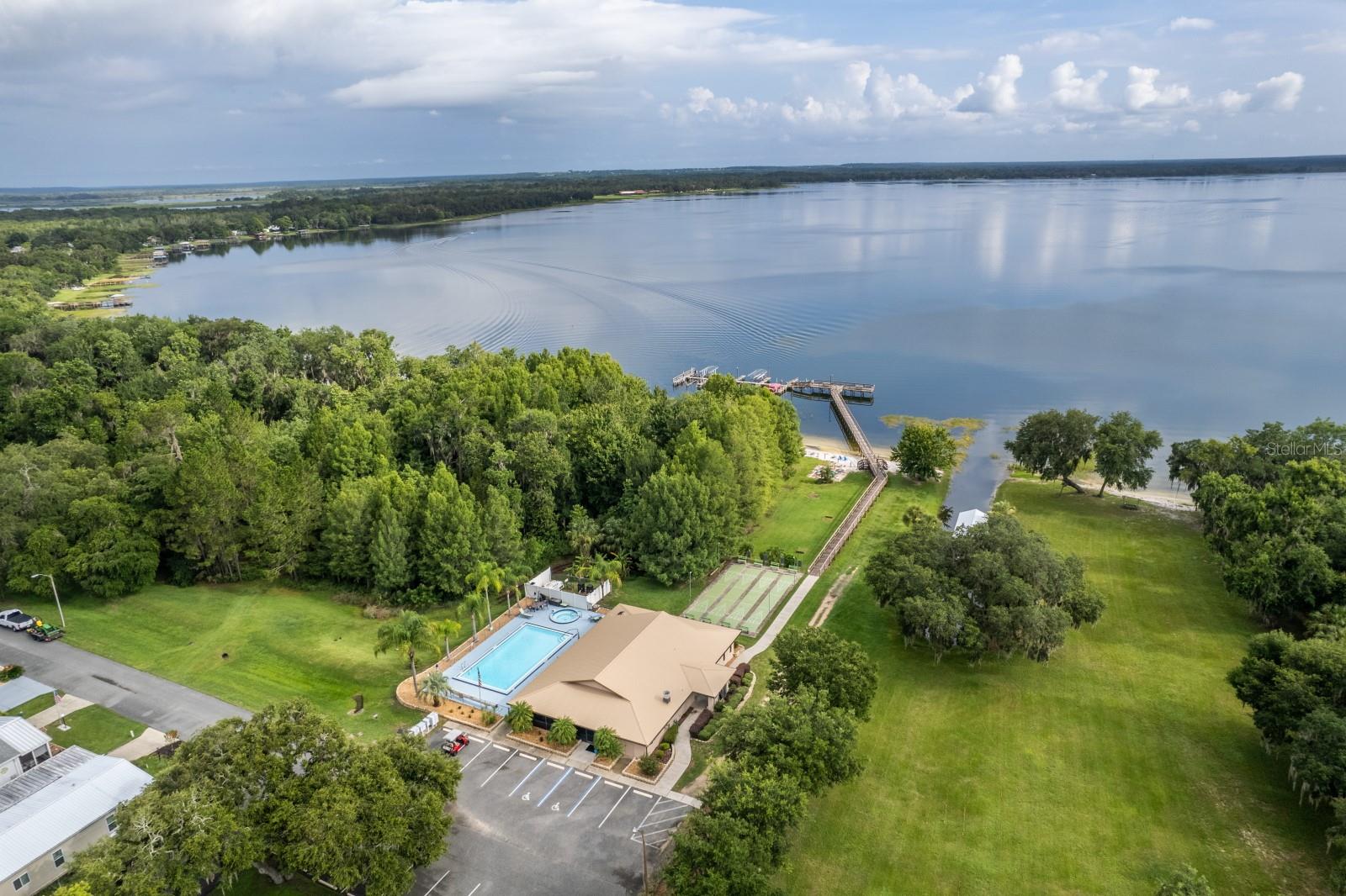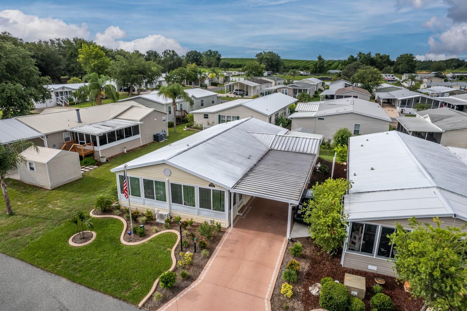 Nestled in the heart of Lake Yales premier 55+ resident-owned mobile home community, this exquisite 3 bedroom 2 bath, 1566 square-foot manufactured home offers an unparalleled lifestyle. Enjoy the elegance of a meticulously renovated residence, featuring; new windows, new doors, flooring, storm doors with screen and glass, new paint, custom closet shelving, and beautifully remodeled bathrooms with bespoke cabinet organizers. The property, surrounded by fresh landscaping, includes two versatile sheds—climate controlled eight-by-twelve under the carport and an eight-by-eight detached workshop—perfect for hobbies or storage. A pristine home including a painted driveway and a 2005 golf cart enhance convenience, while lawn maintenance is effortlessly handled by the community. Relish exclusive amenities like HOA-managed RV and boat storage, leasable boat slips, a private dock, a clubhouse, a heated pool, a soothing hot tub, a pool table, and a fire pit overlooking a serene sandy beach with direct lake access. Whether seeking a year-round sanctuary or a winter escape, this Lake County gem is close to vibrant outdoor recreation, dining, and entertainment. It beckons you to experience refined retirement living—schedule your visit today!